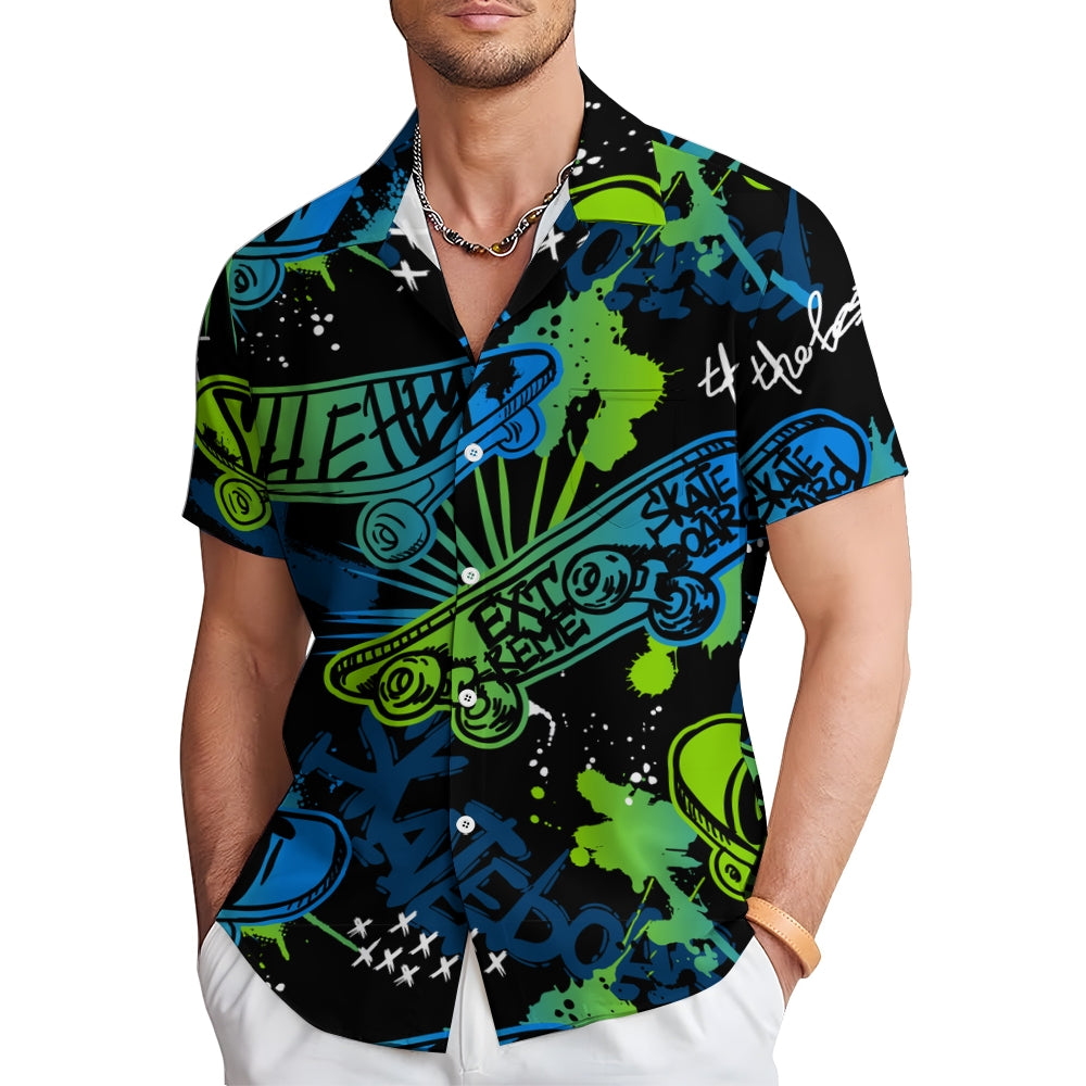 Skateboard Art Print Casual Oversized Short Sleeve Shirt 2406003433