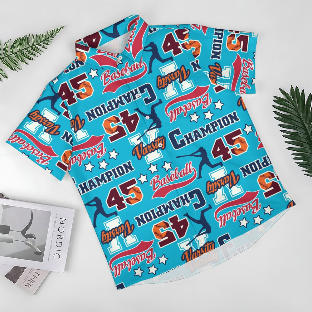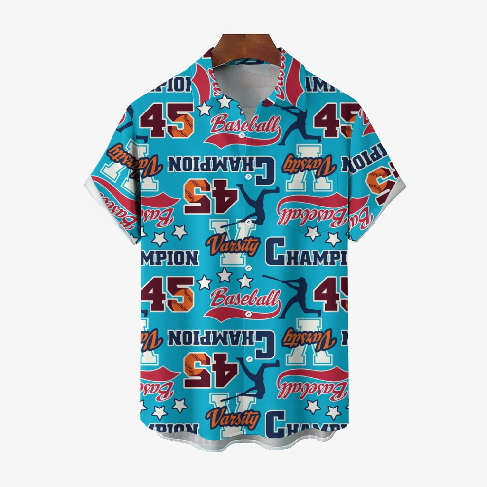 Baseball Print Casual Oversized Short Sleeve Shirt 2406003425