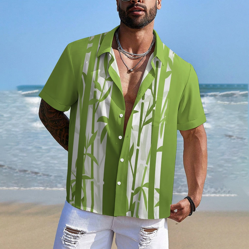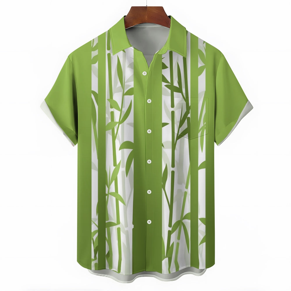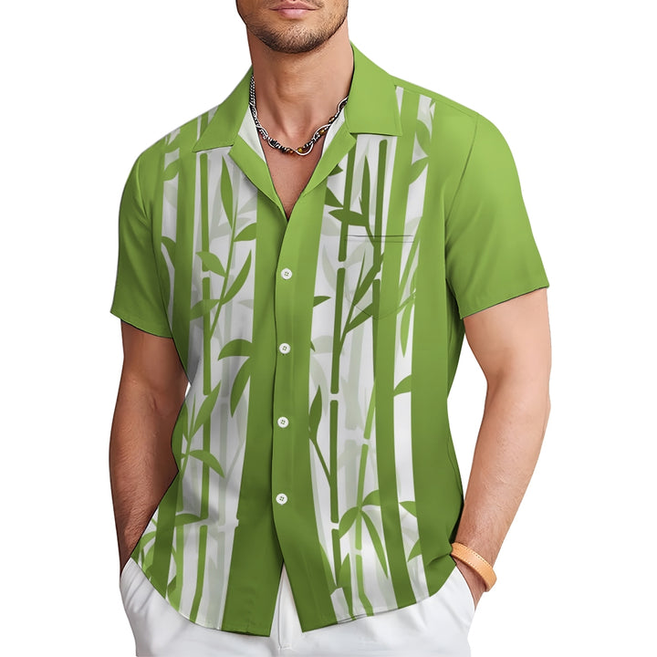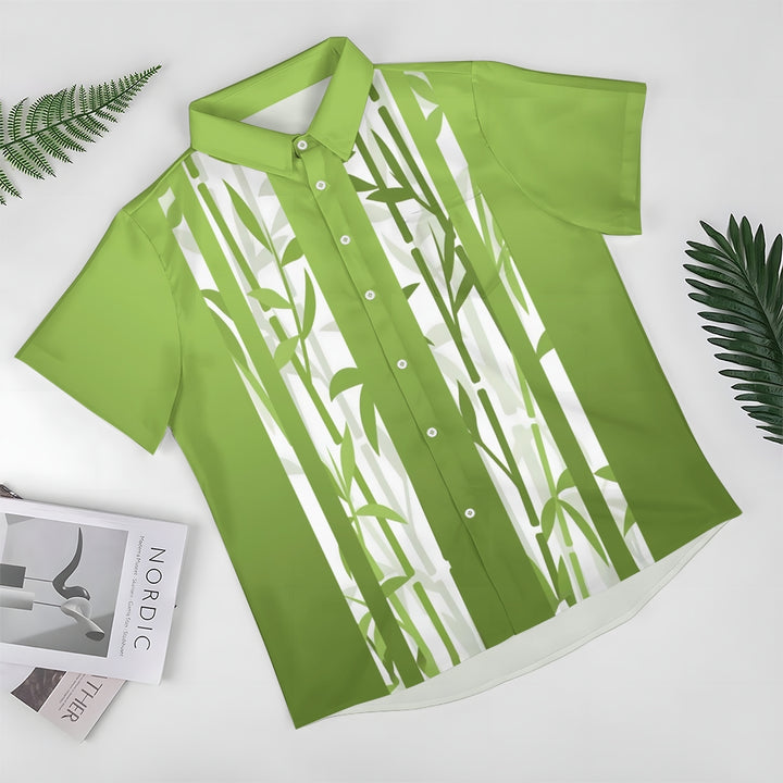 Bamboo Stripe Gradient Print Casual Short Sleeve Shirt 2410006357