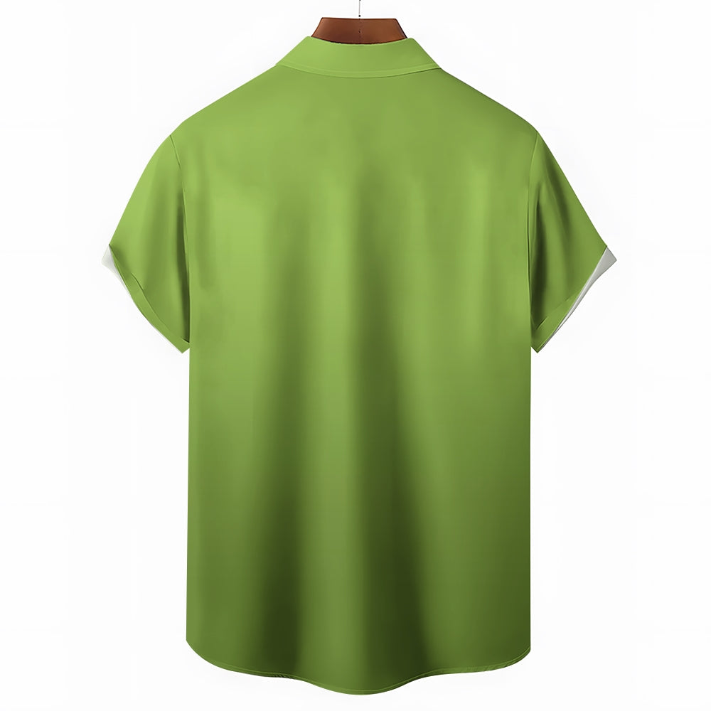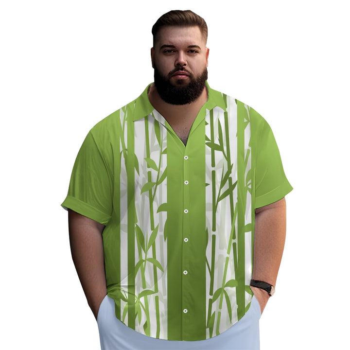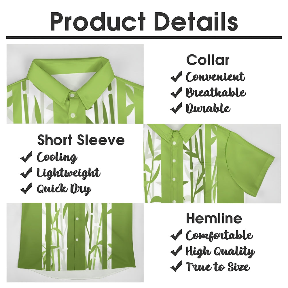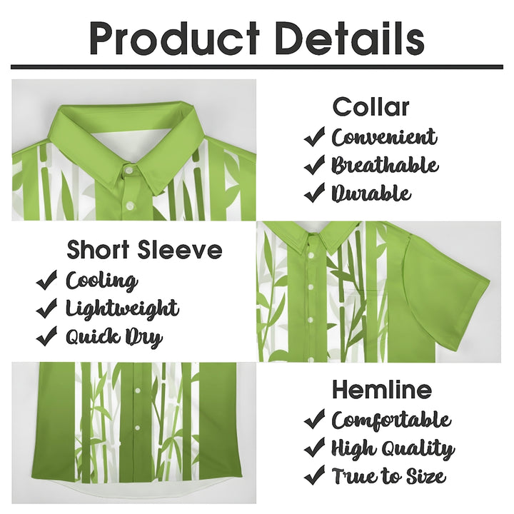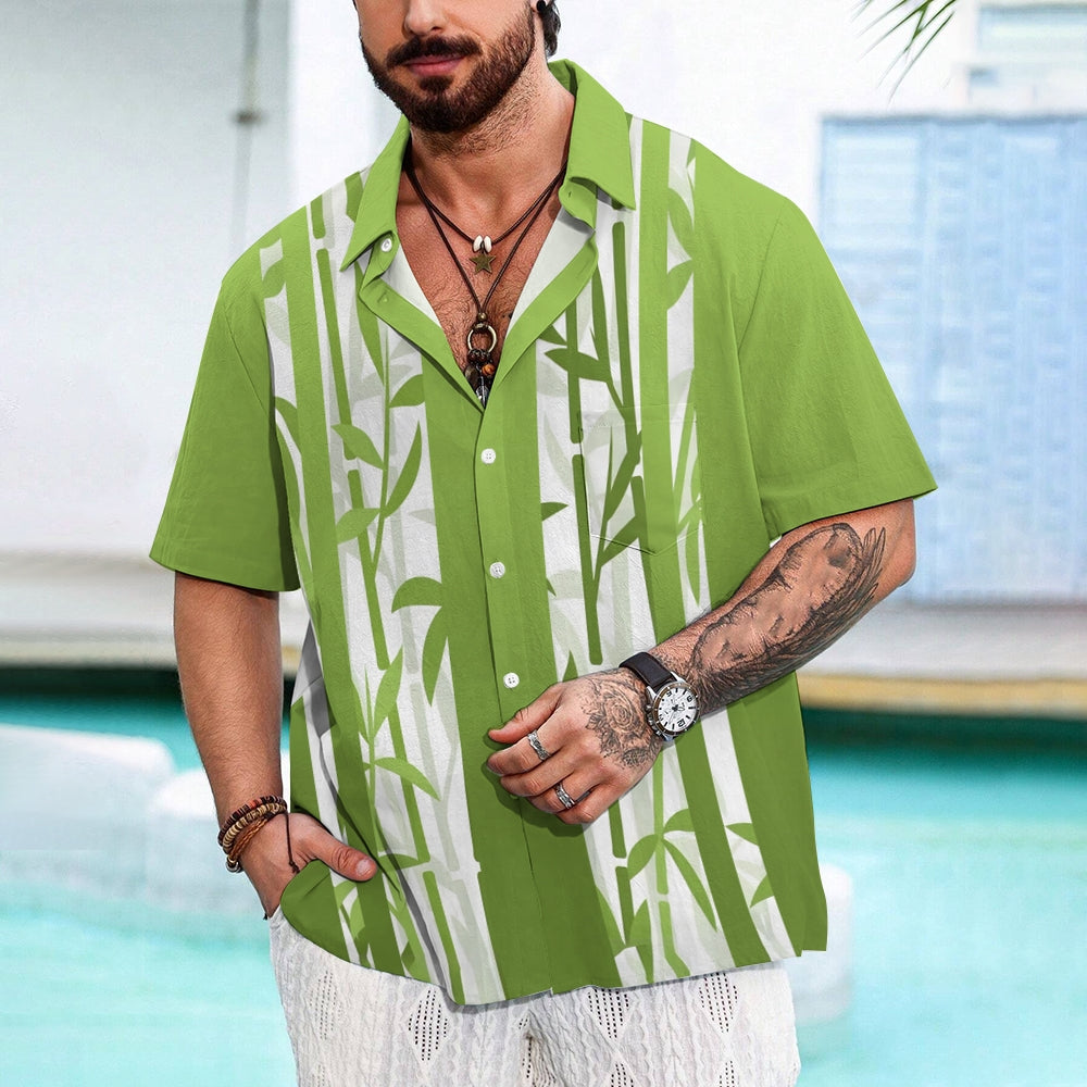 Bamboo Stripe Gradient Print Casual Short Sleeve Shirt 2410006357
