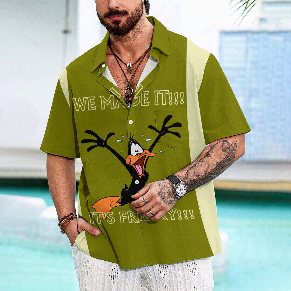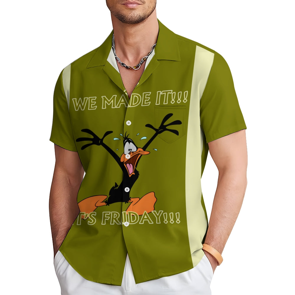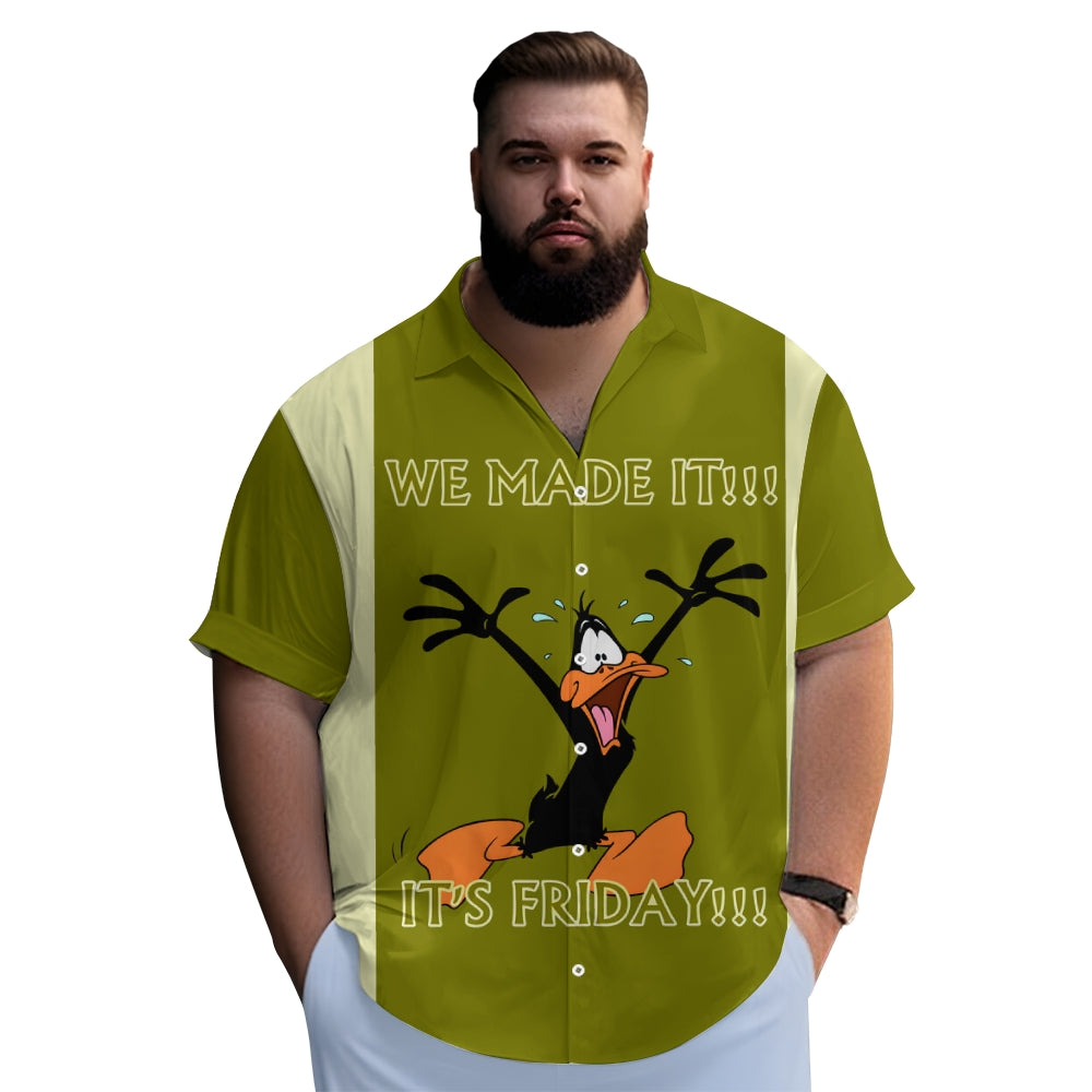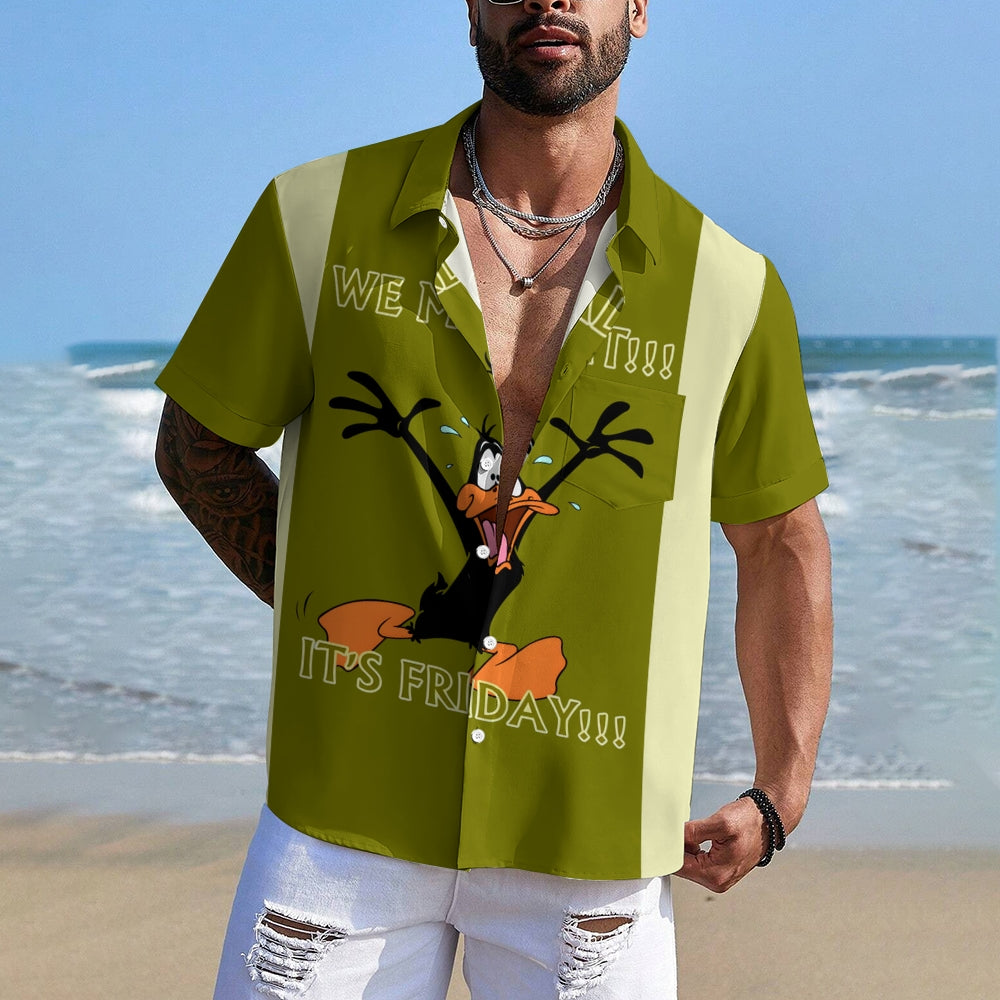 Men's Cartoon Character Print Large Bamboo Linen Short Sleeve Shirt 2406000556