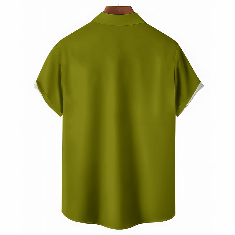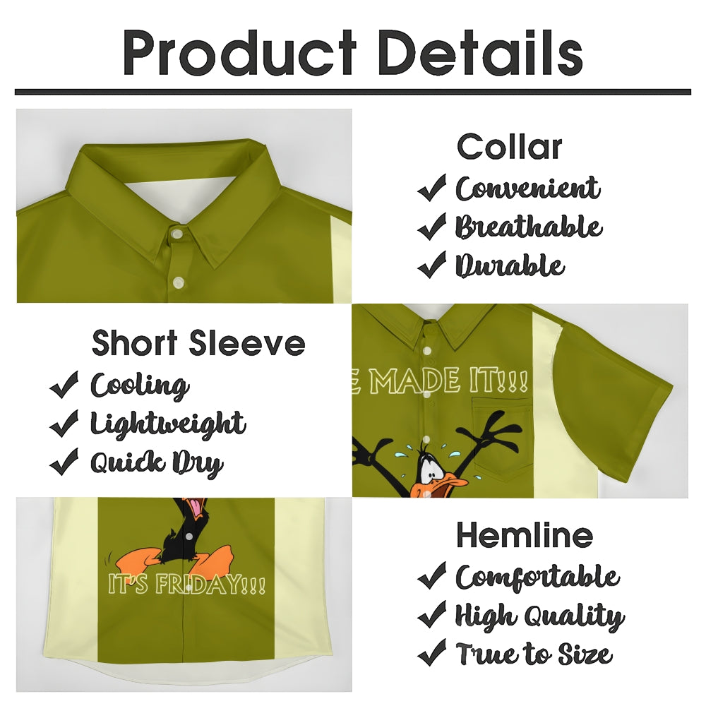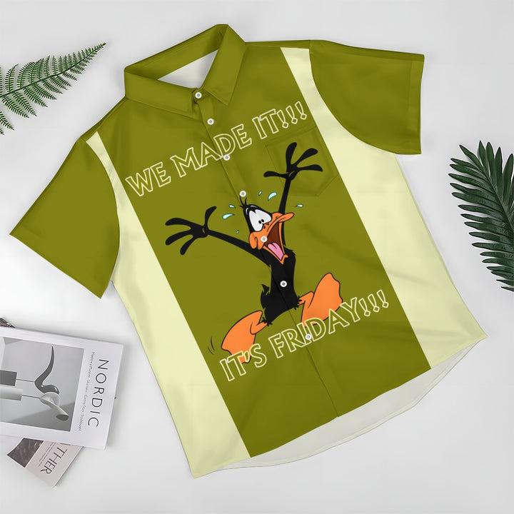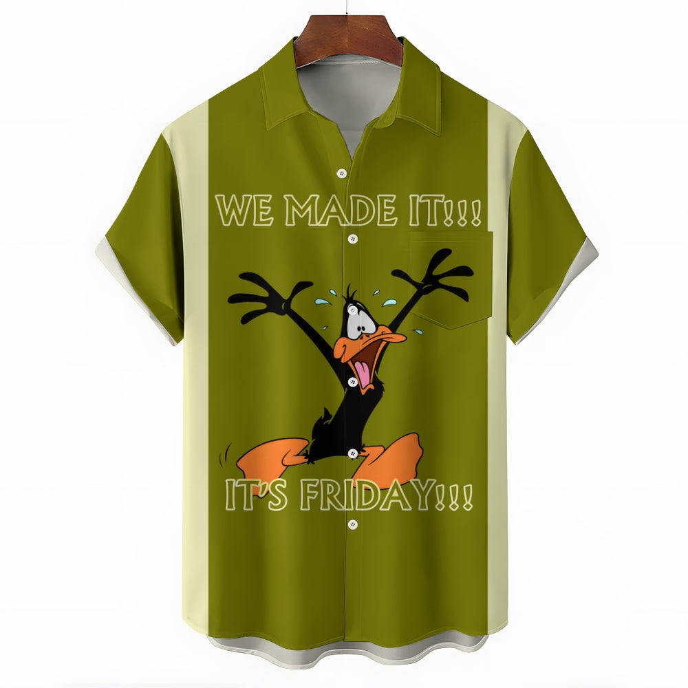 Men's Cartoon Character Print Large Bamboo Linen Short Sleeve Shirt 2406000556