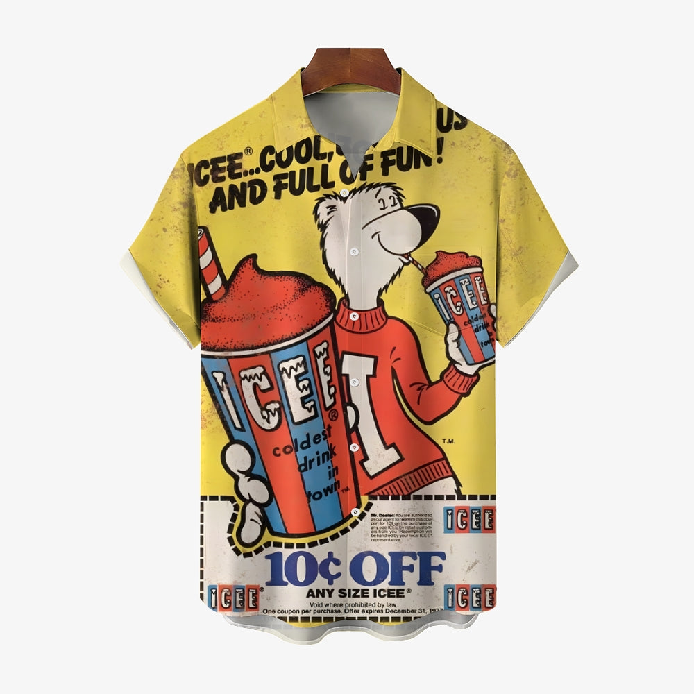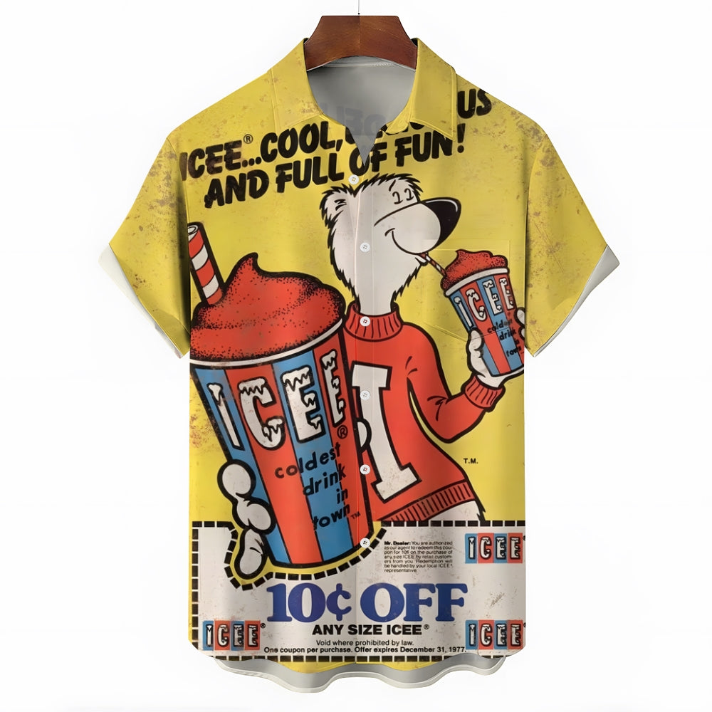 Men's Nostalgic Poster Art Print Shirt 2409009496