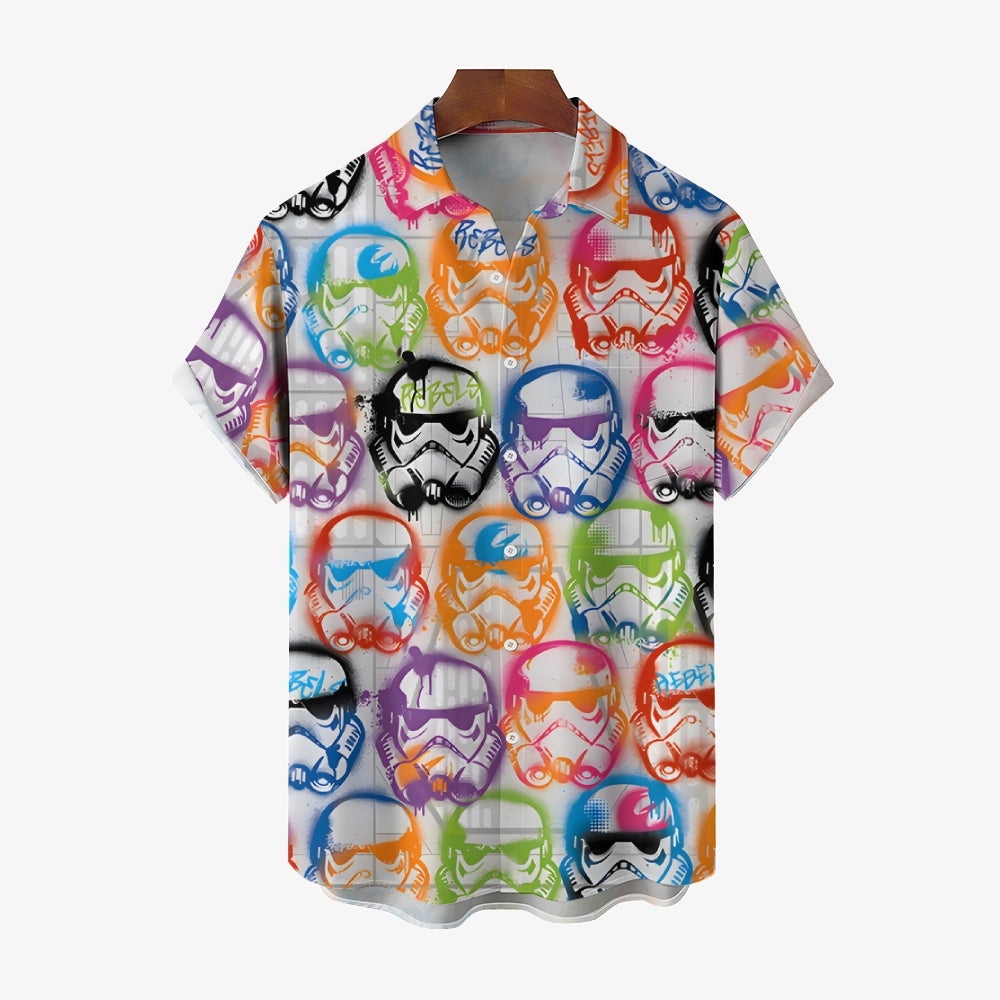 Retro Gradient Striped Spaceship Short-Sleeved Shirt 2409007344