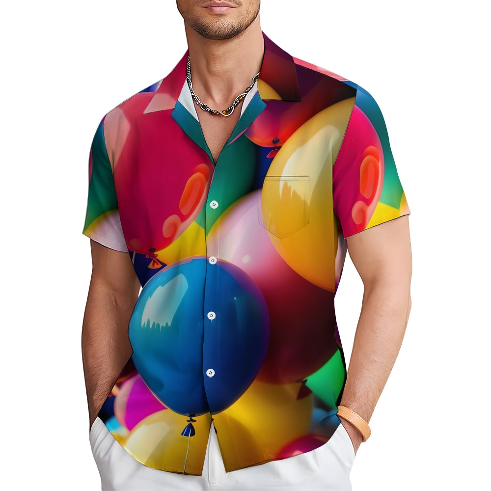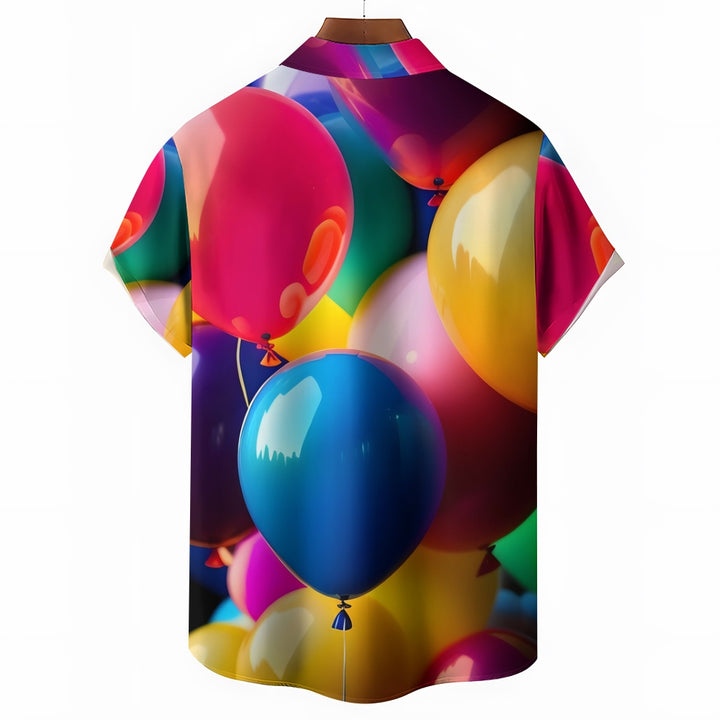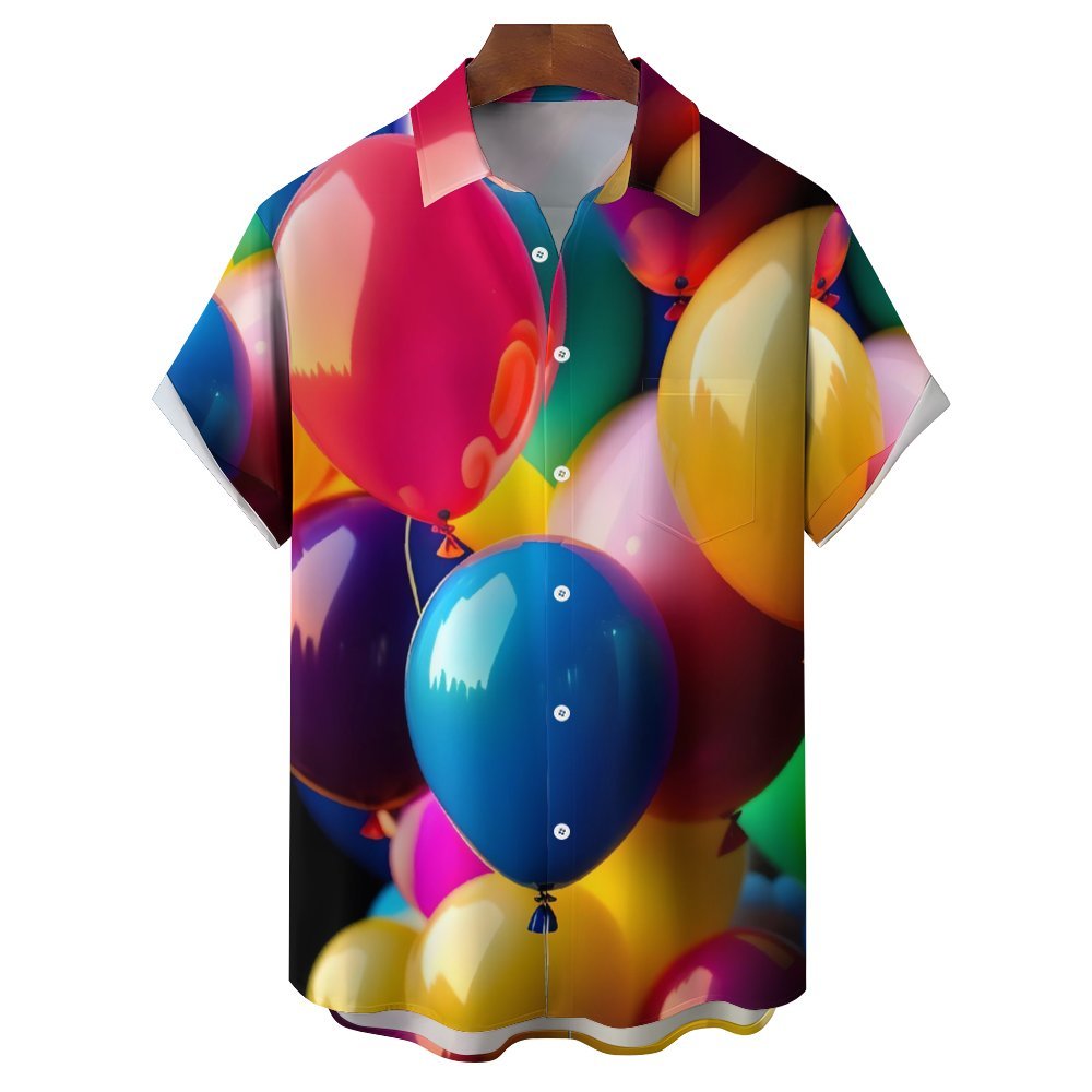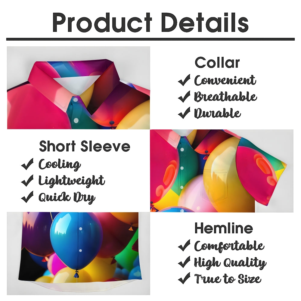 3D Colorful Balloons Casual Short Sleeve Shirt 2401000012