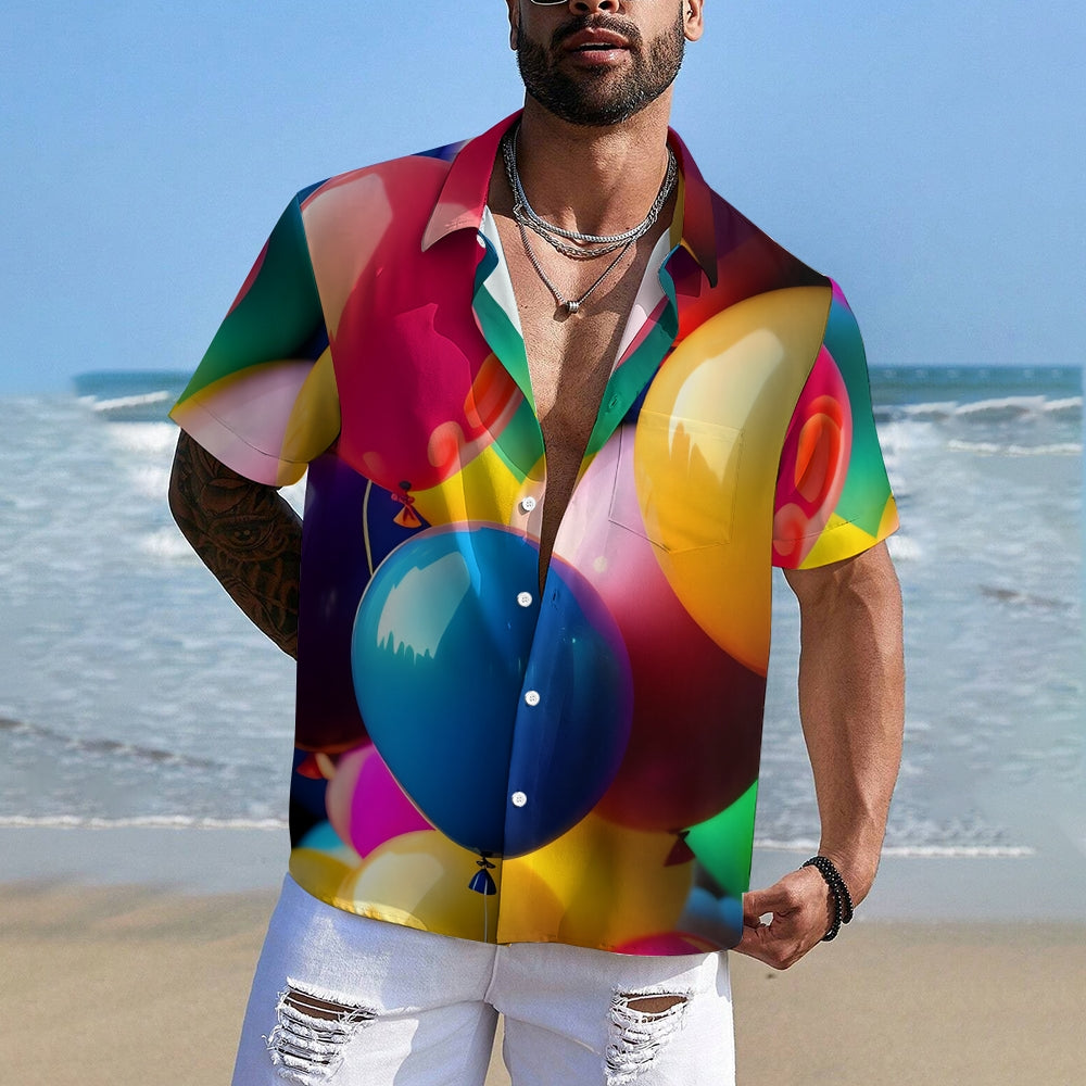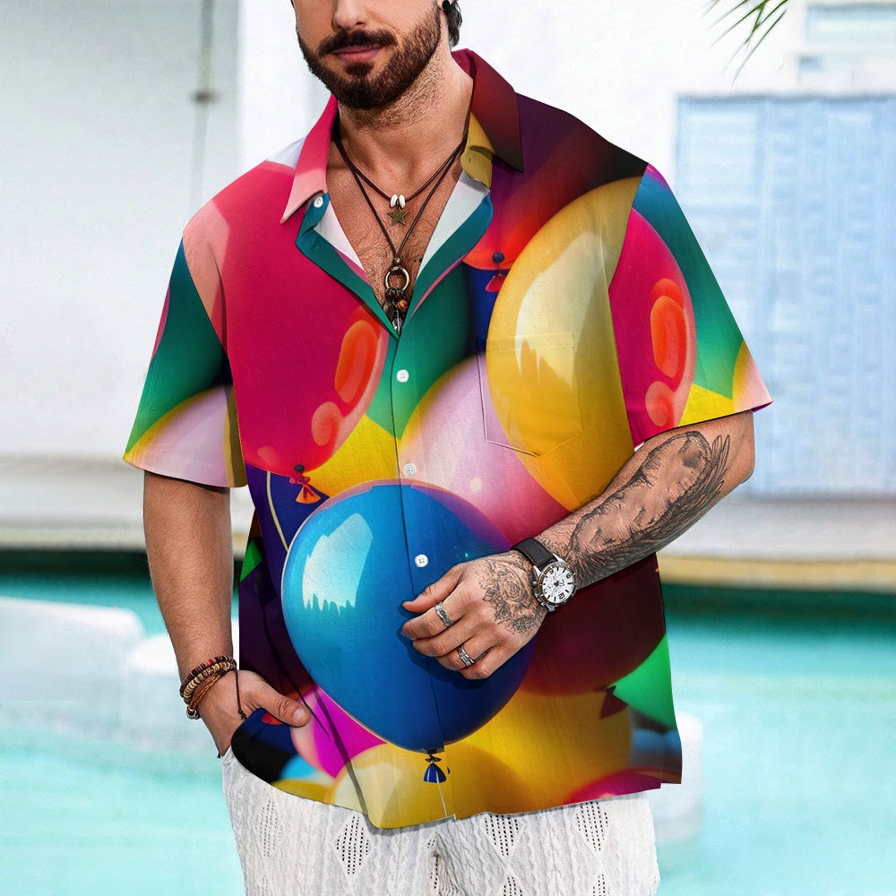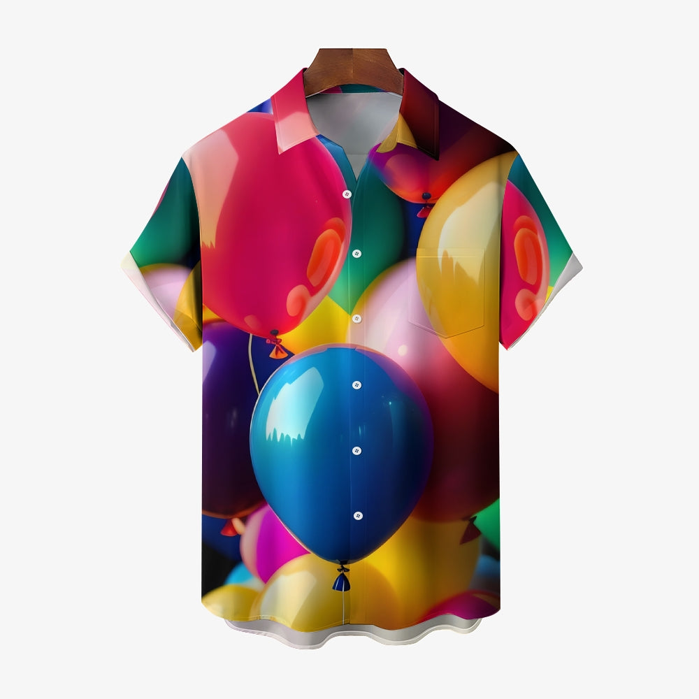 3D Colorful Balloons Casual Short Sleeve Shirt 2401000012