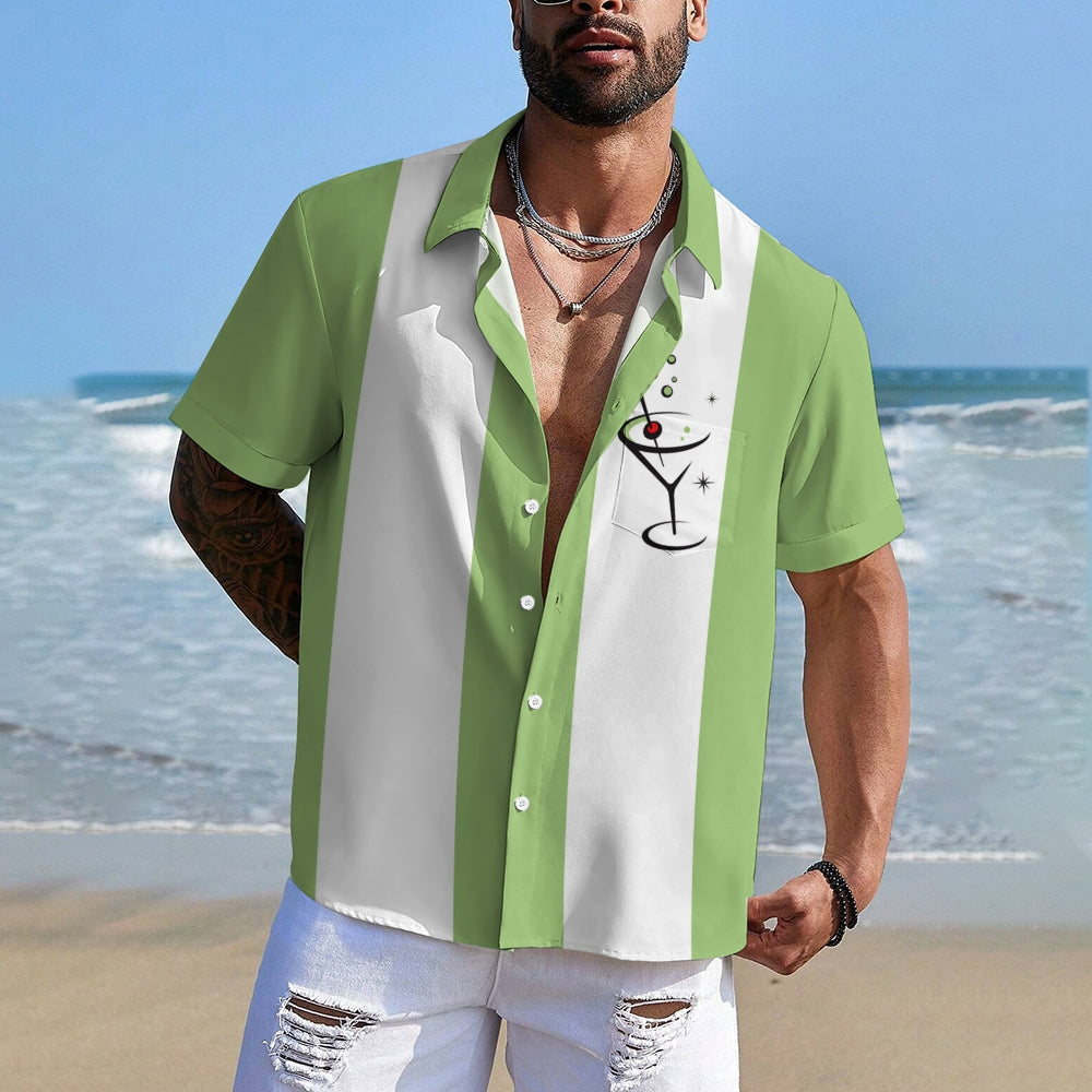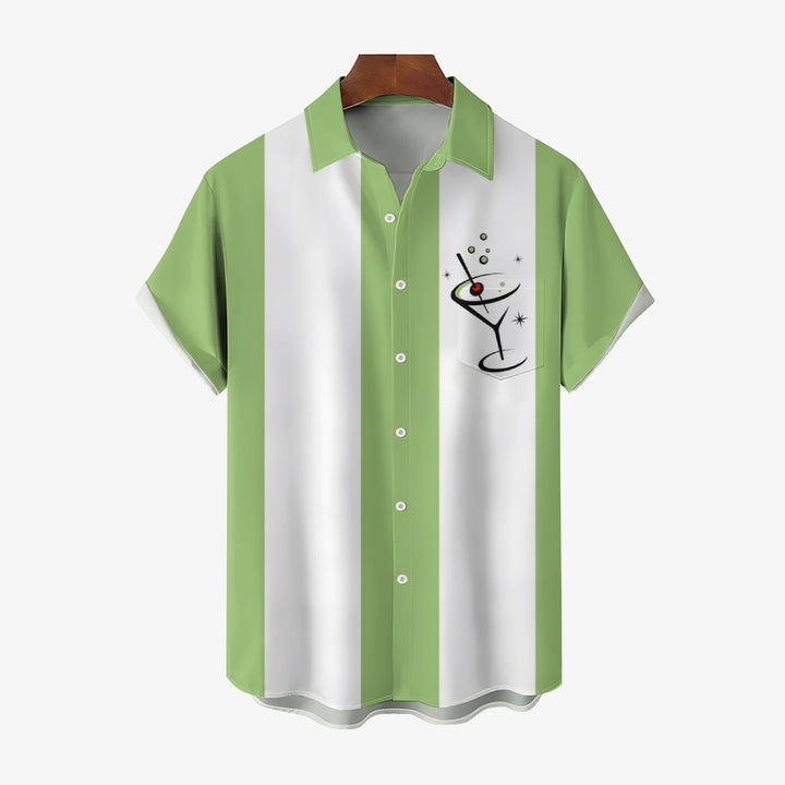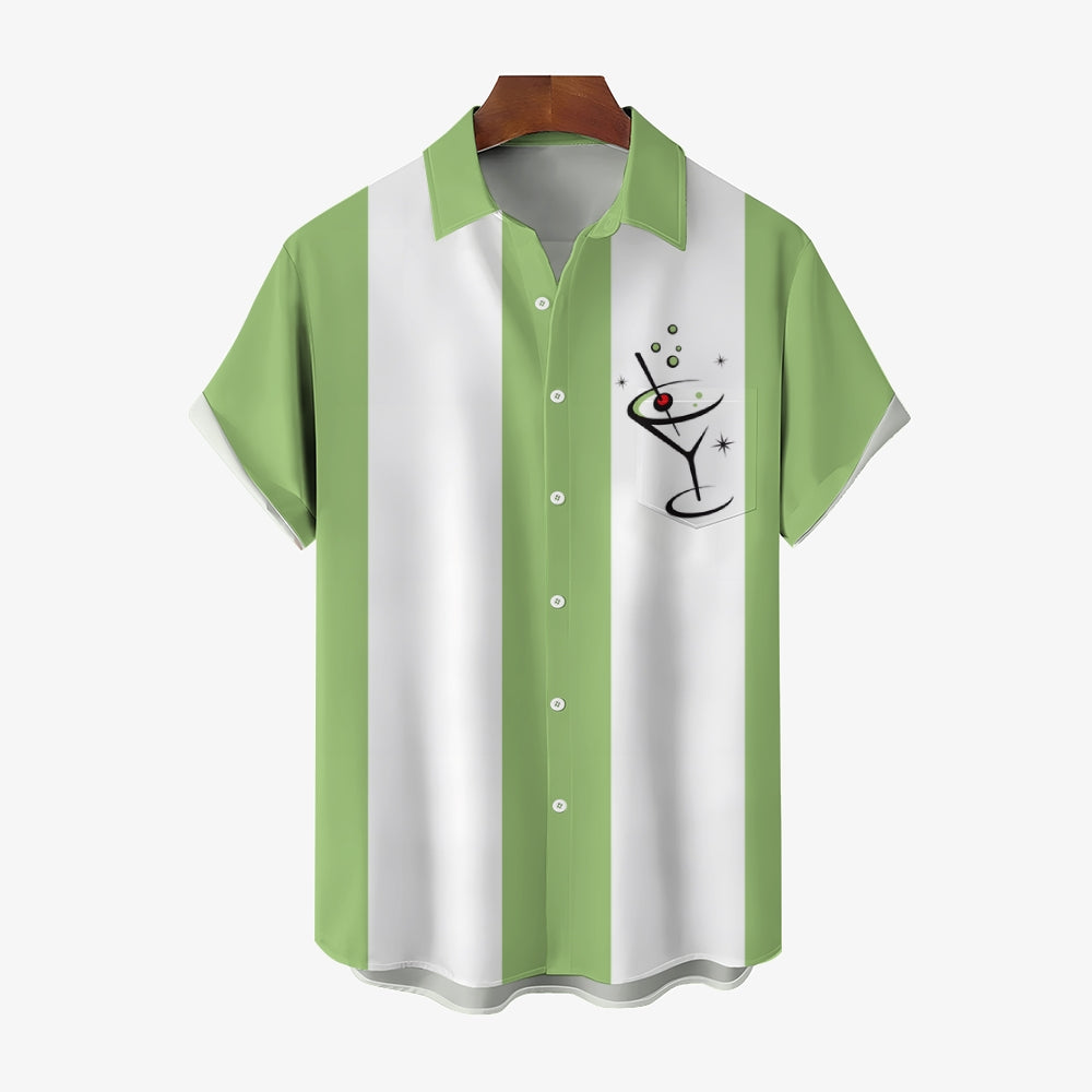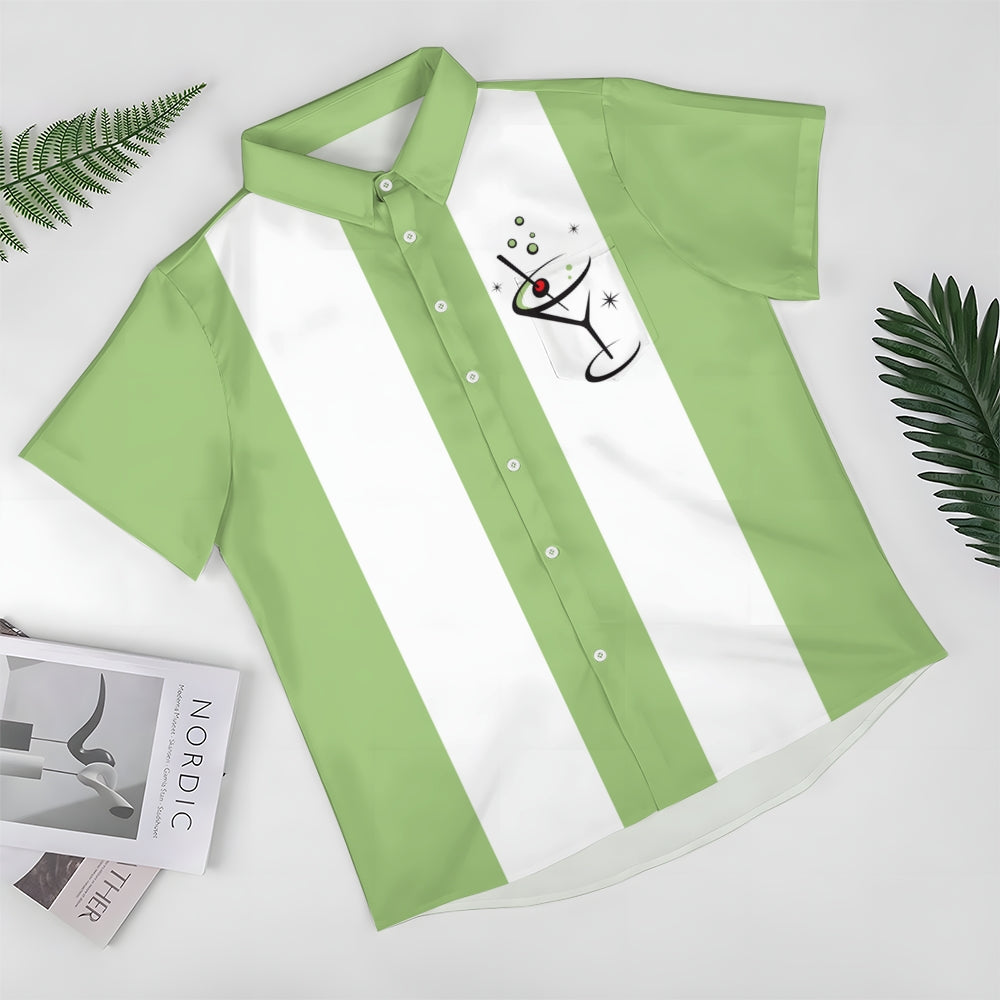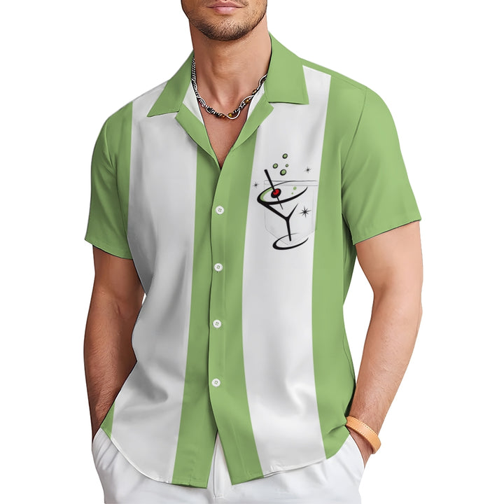 50s Vintage Cocktail Bowling Shirt Casual Short Sleeve Shirt 2403000030