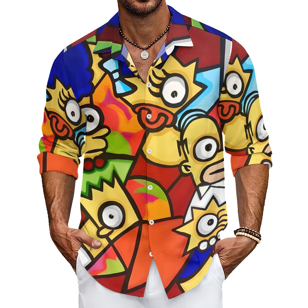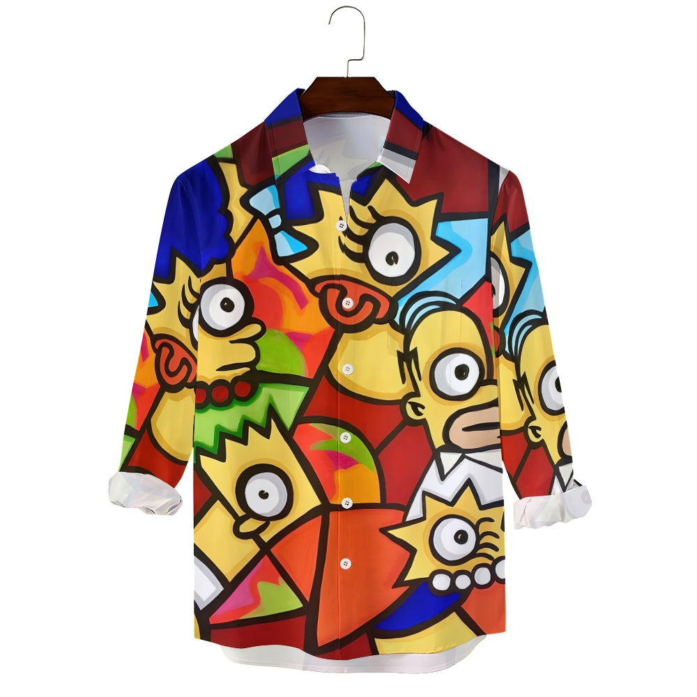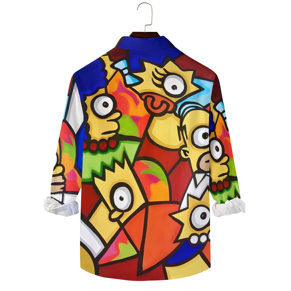 Art Abstract Painting Simp Chest Pocket Hawaiian Long Sleeve Shirt 2501001599