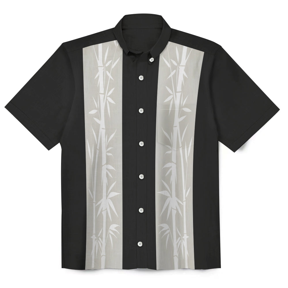 Bamboo Stripe Button-Down Linen Short Sleeve Shirt 2409011643