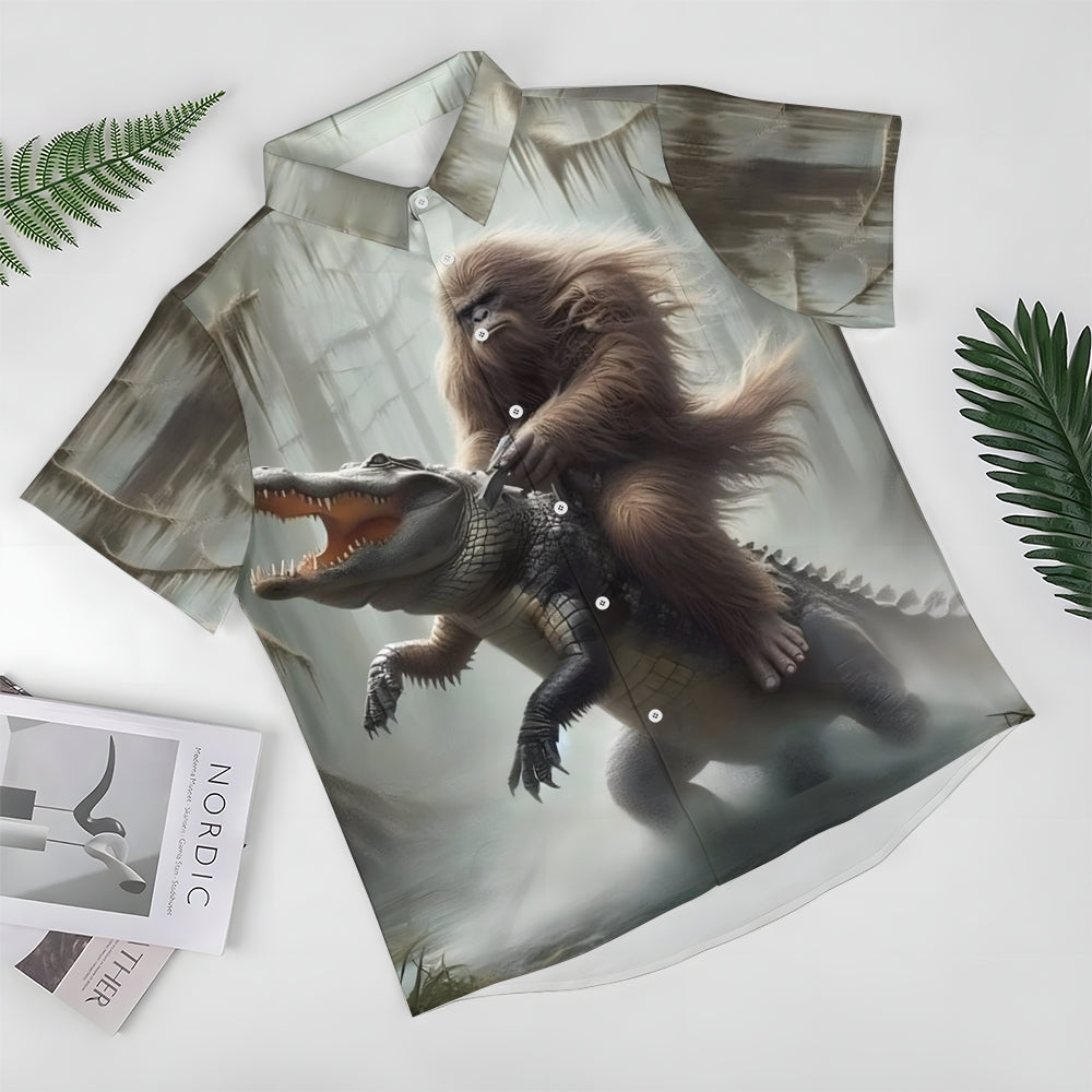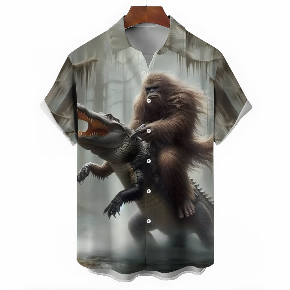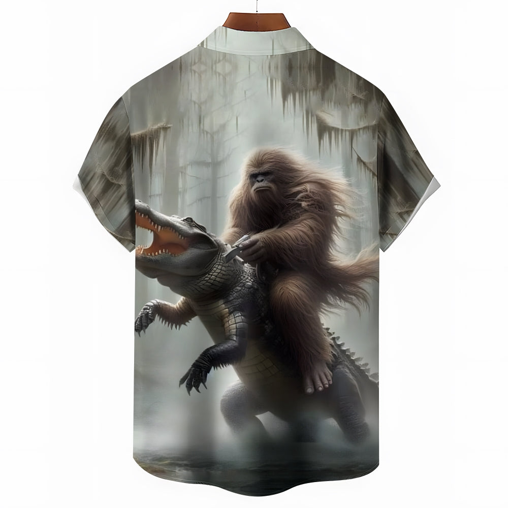 Bigfoot And Alligator Print Short Sleeve Shirt 2408002793
