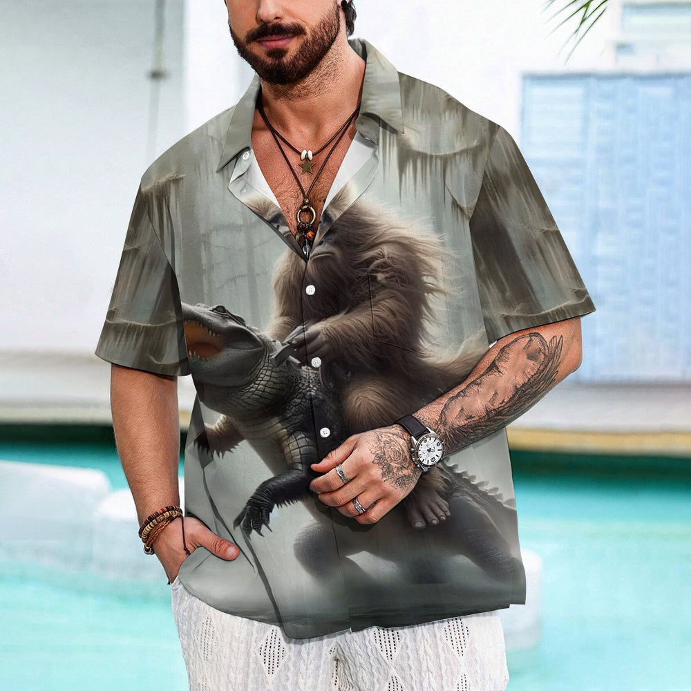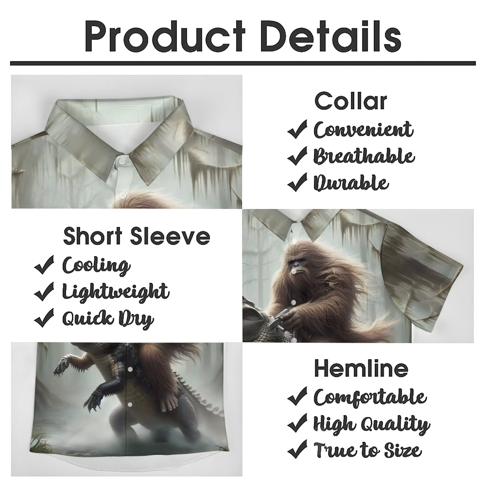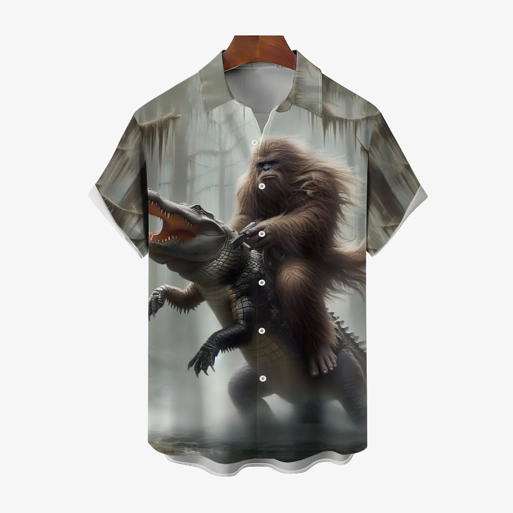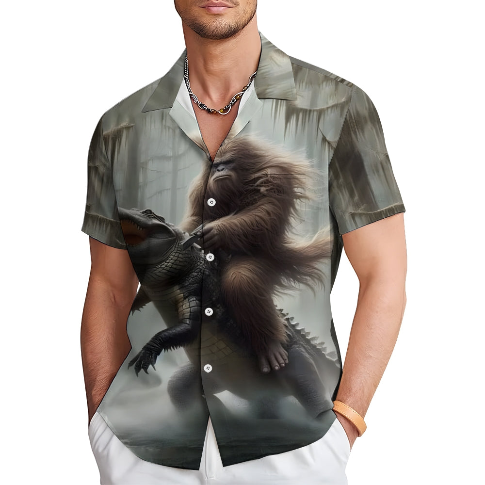 Bigfoot And Alligator Print Short Sleeve Shirt 2408002793