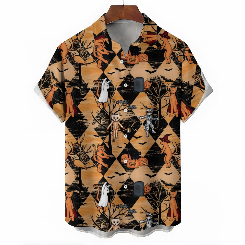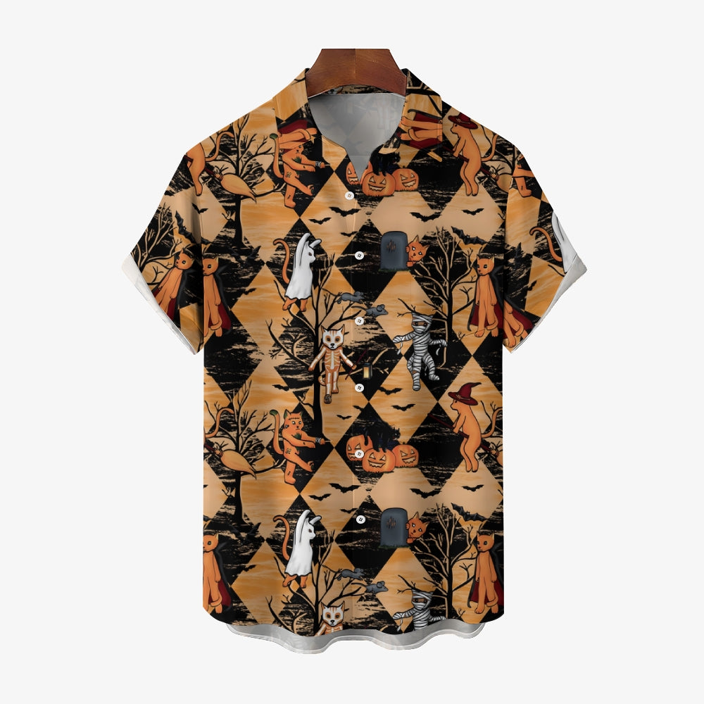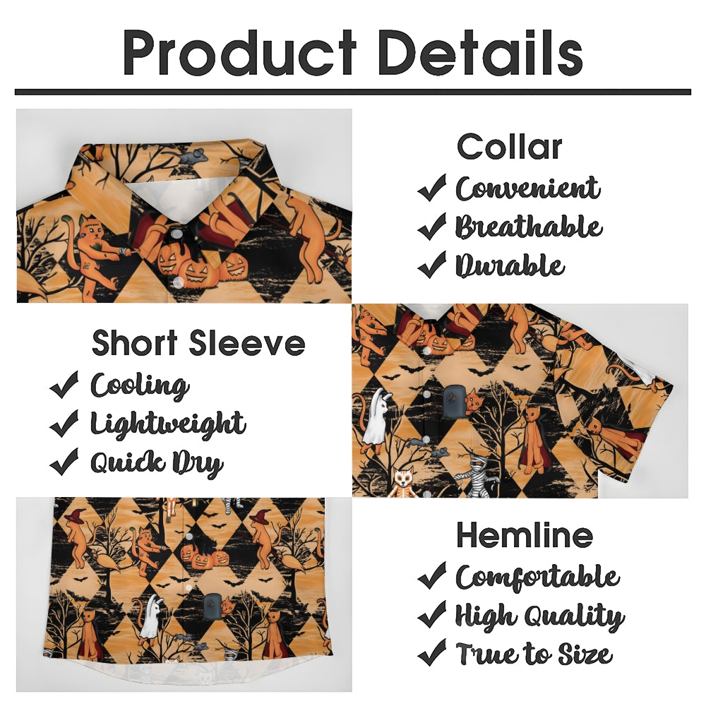 Black Cat Halloween Oversized Short Sleeve Shirt 2407004499