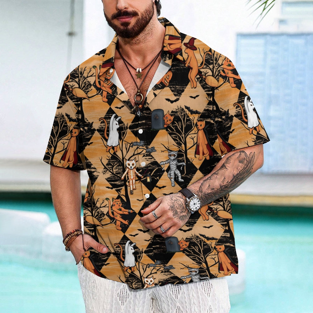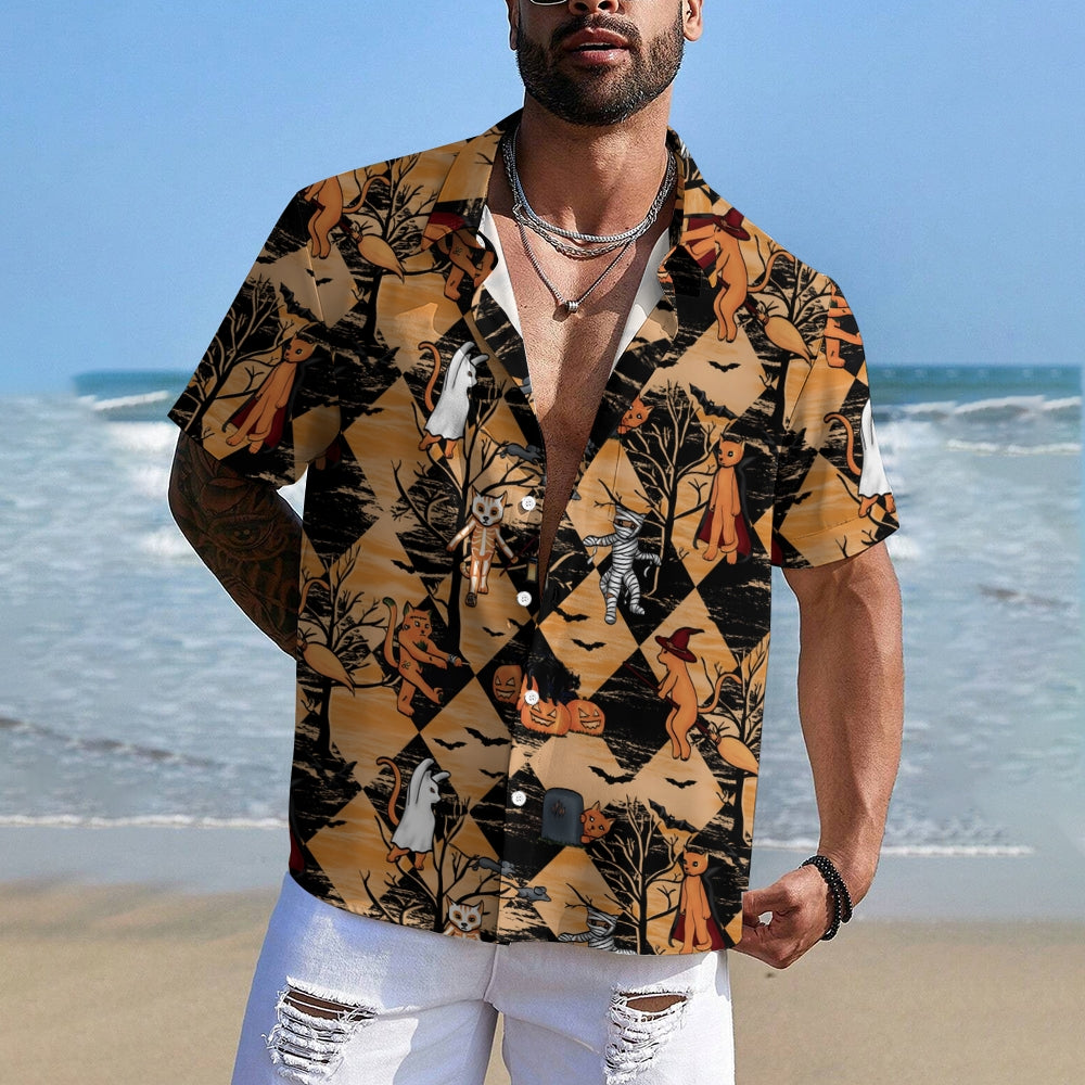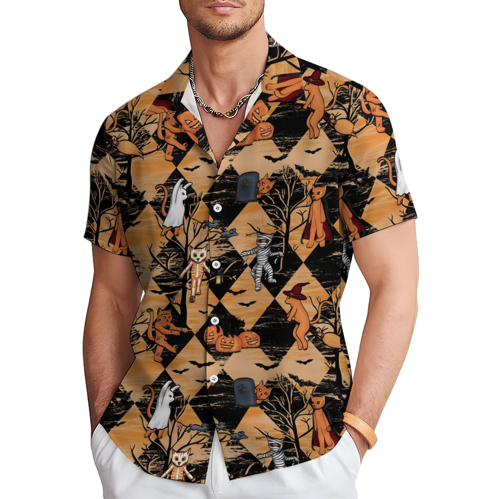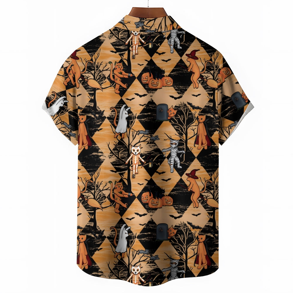 Black Cat Halloween Oversized Short Sleeve Shirt 2407004499