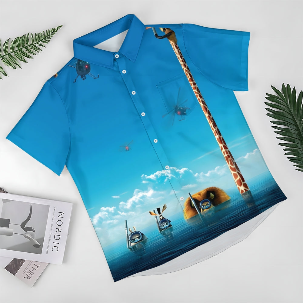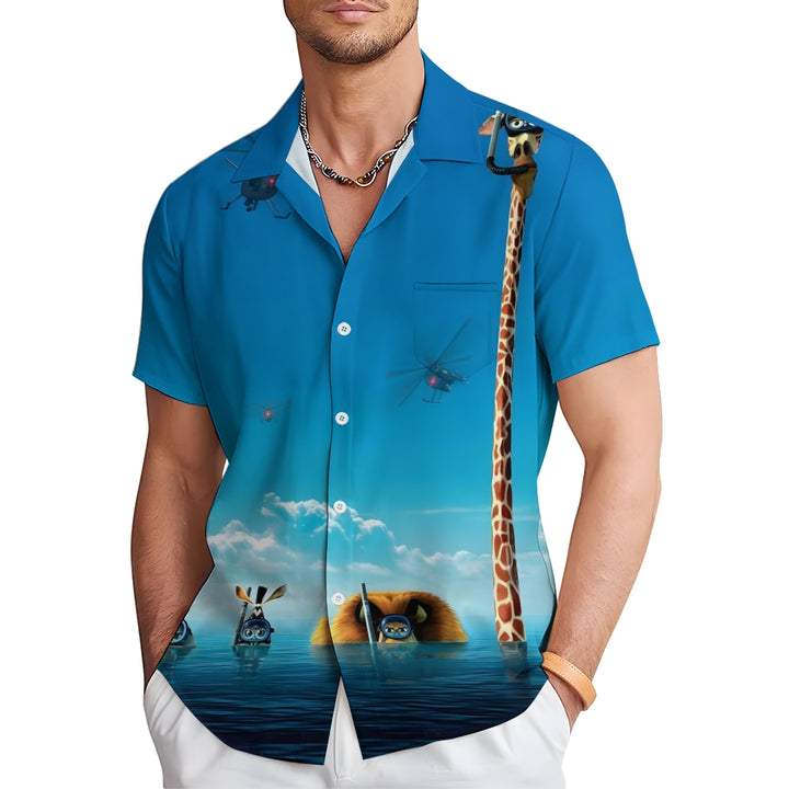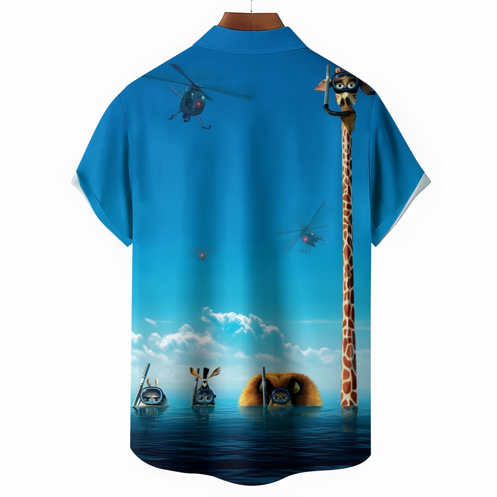 Cartoon Animal Diving Print Casual Short Sleeve Shirt 2410002367