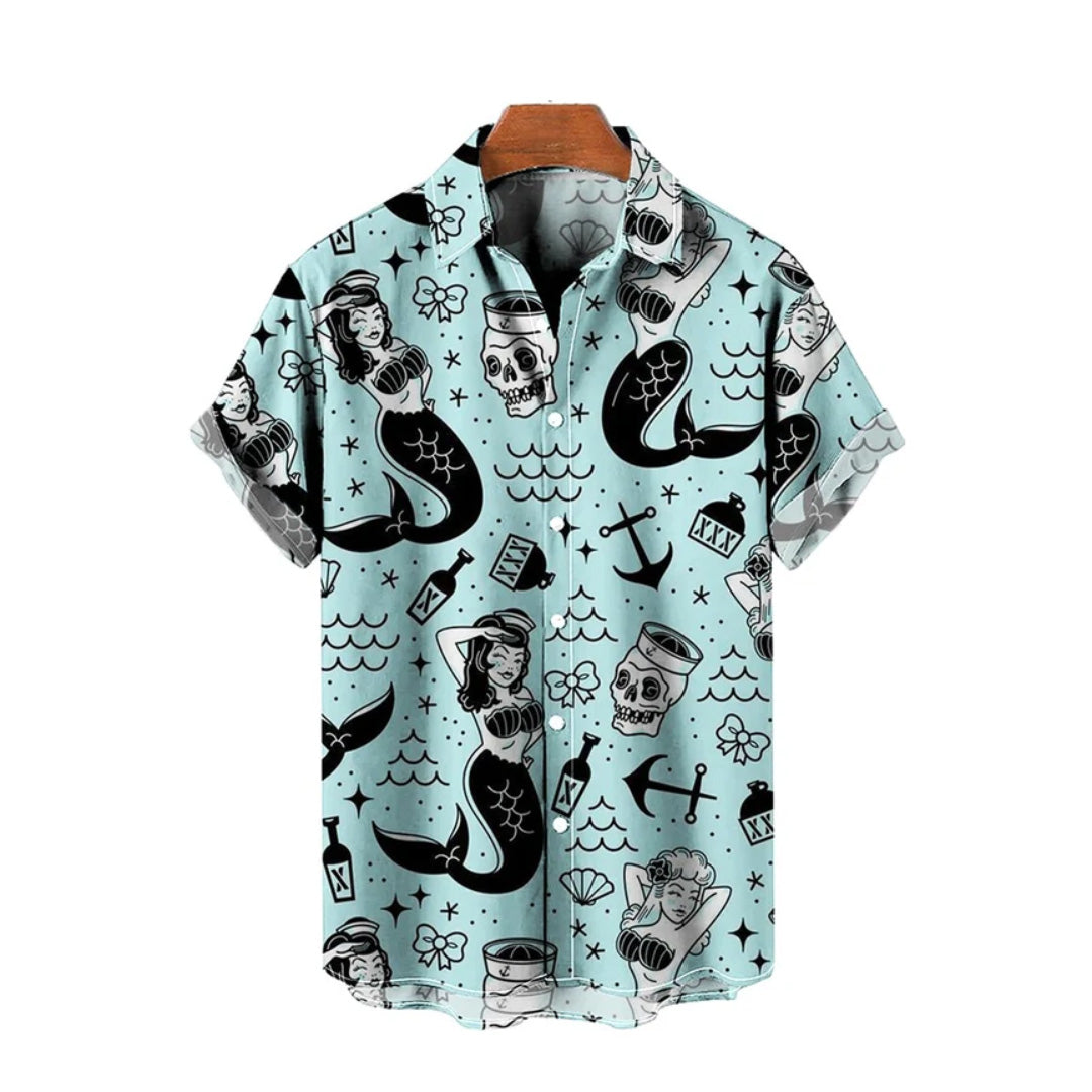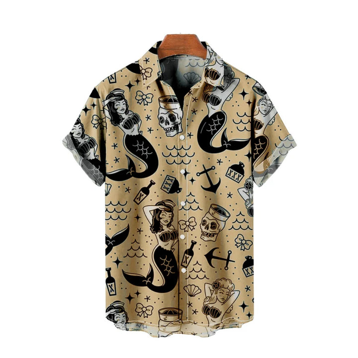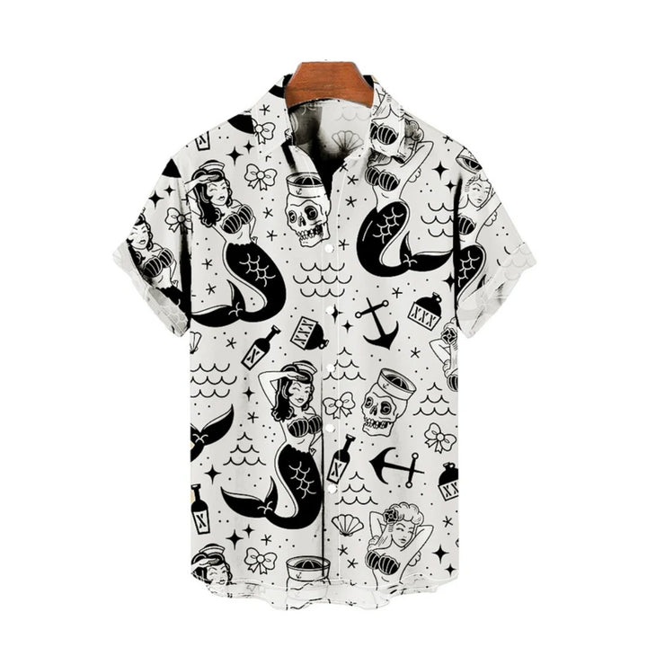 Casual Vacation Retro Mermaid Pattern Printed Short-Sleeved Shirt