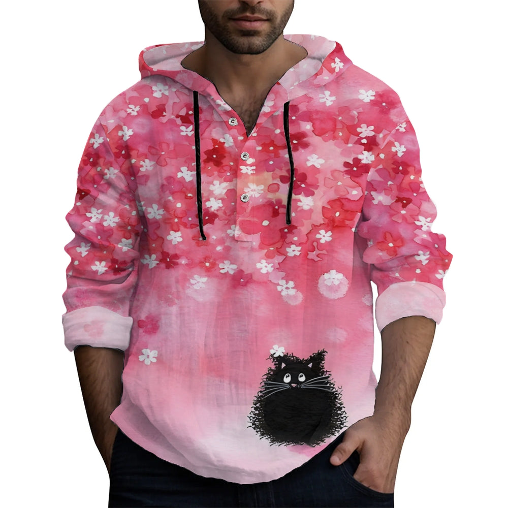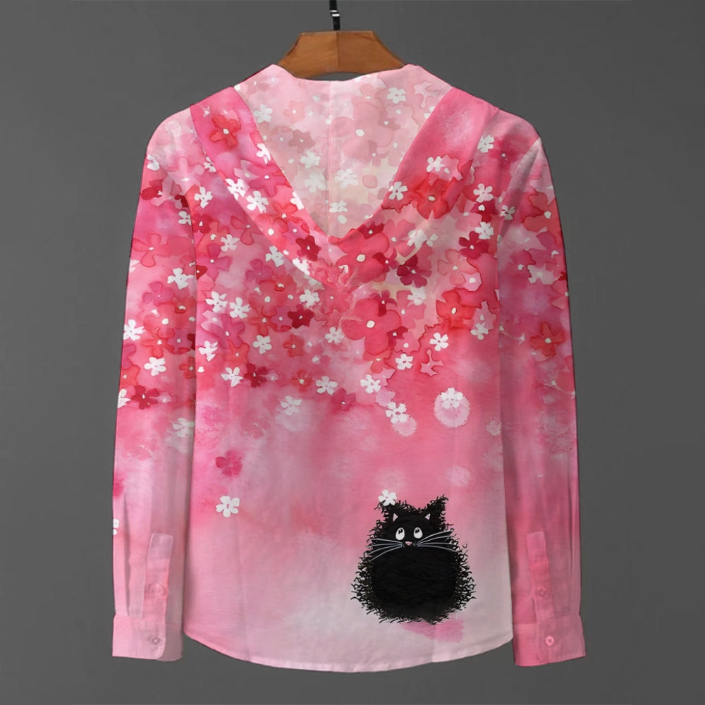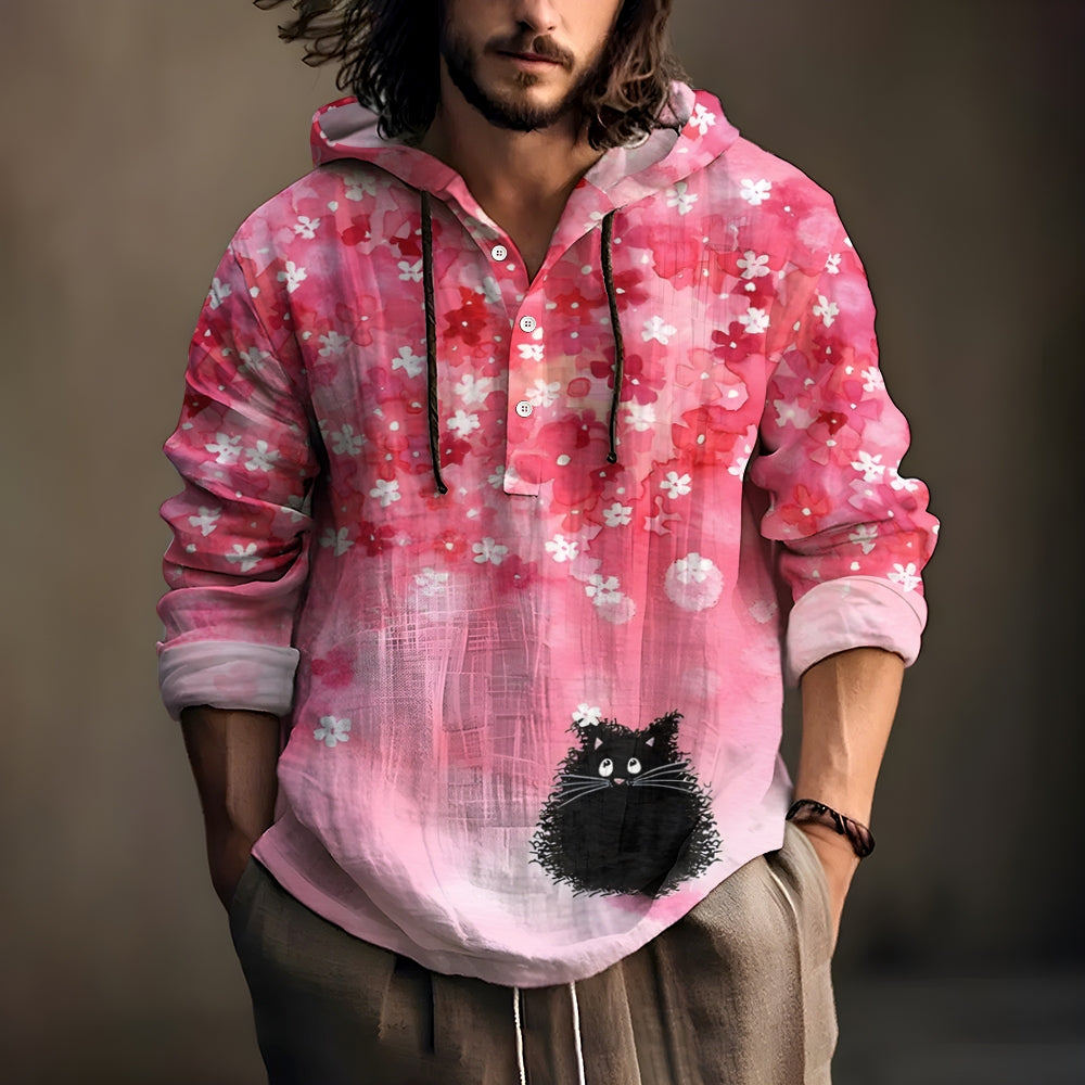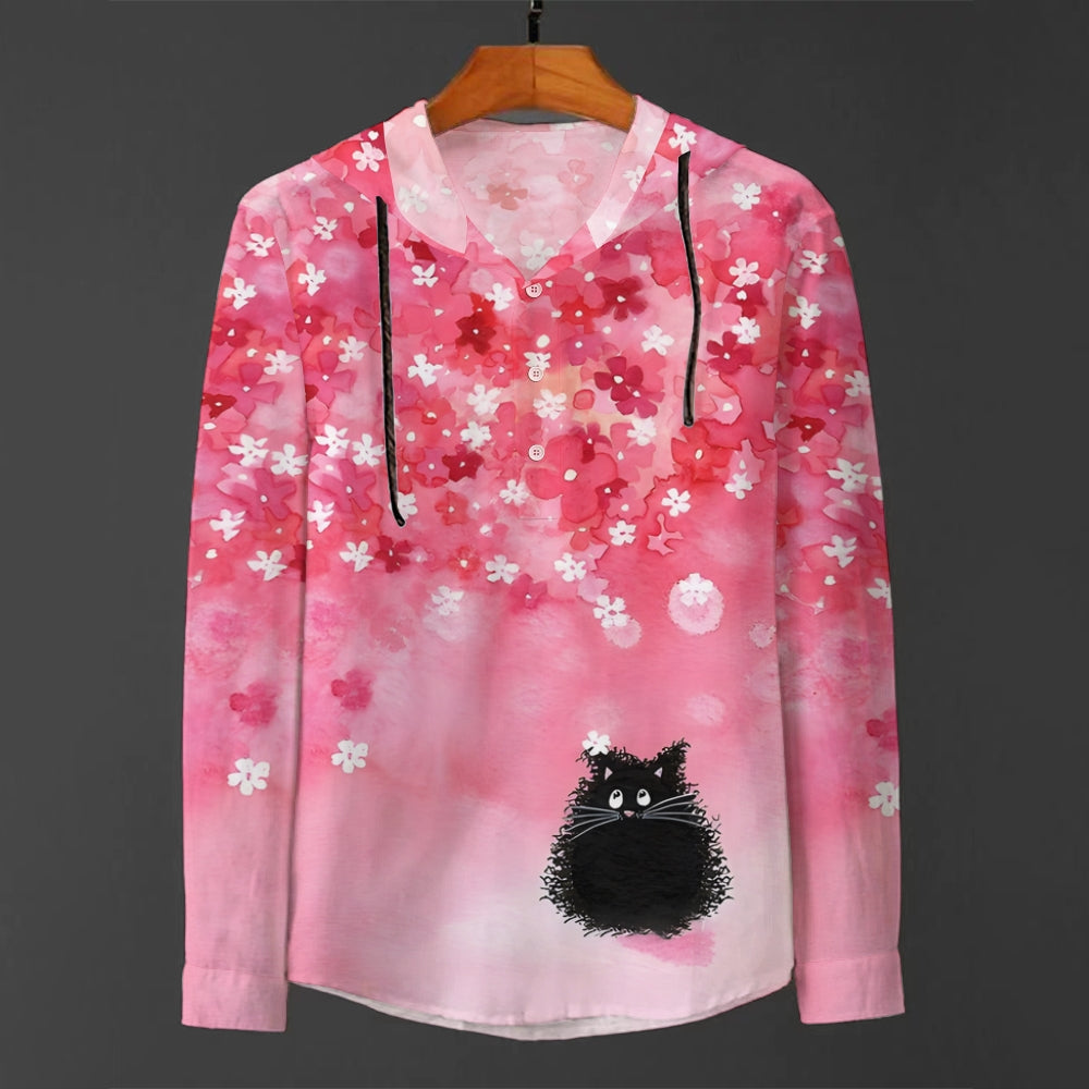 Cherry Blossom Black Cat Art Linen Blend Hoodie 2411008469