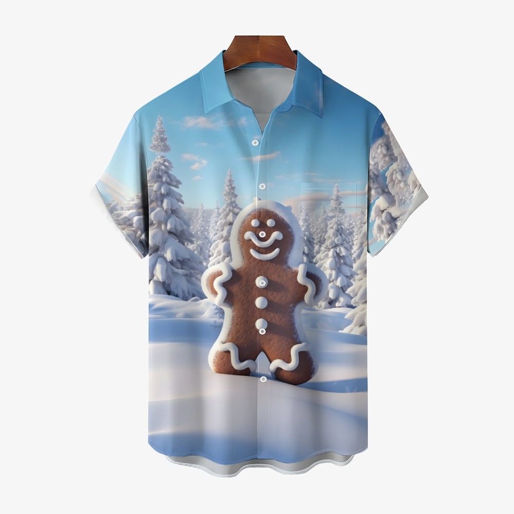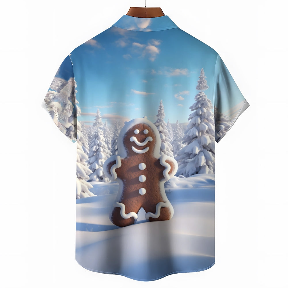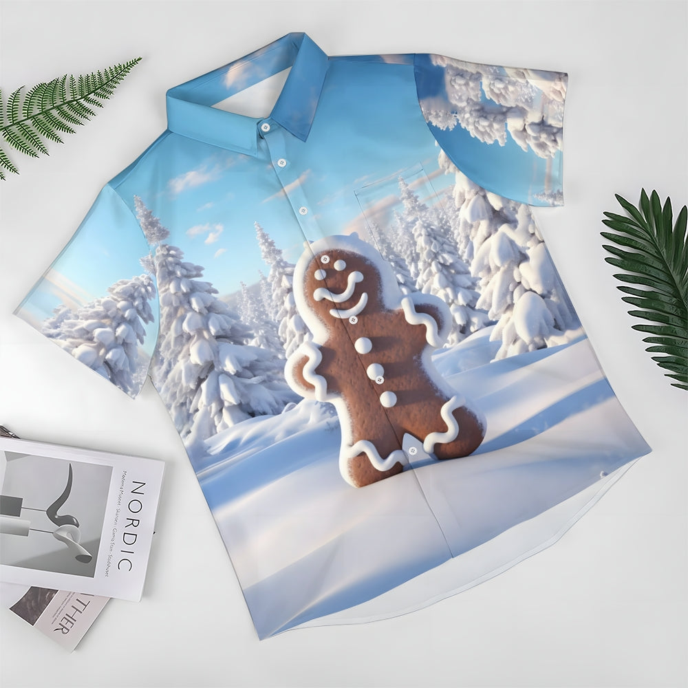 Christmas Gingerbread Man Casual Short Sleeve Shirt 2409006232