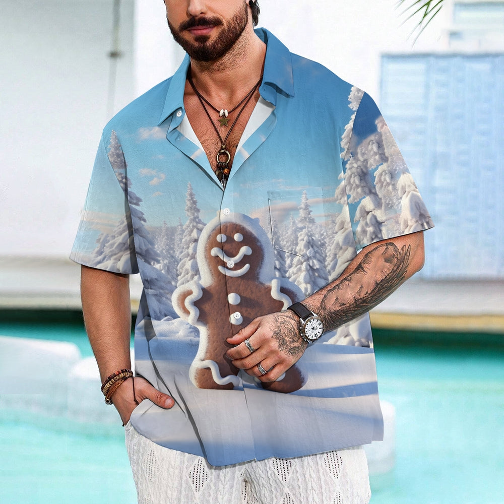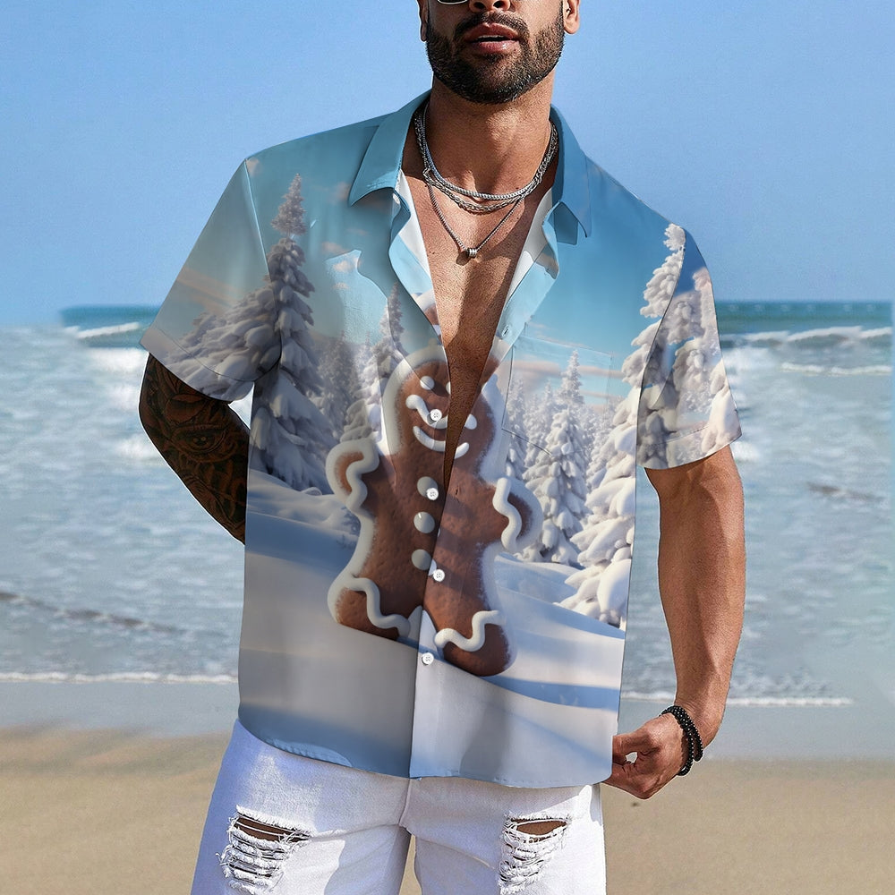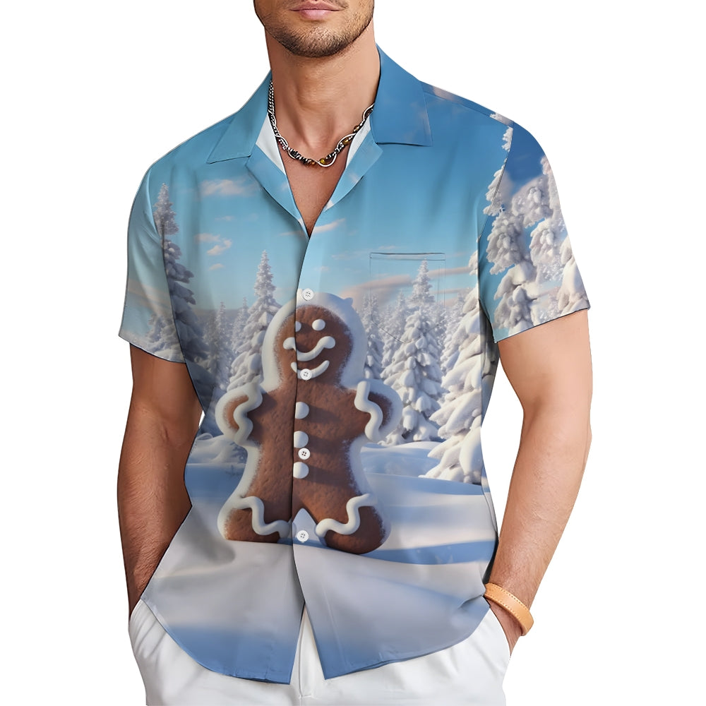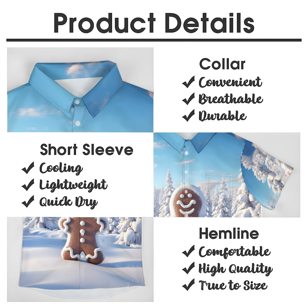 Christmas Gingerbread Man Casual Short Sleeve Shirt 2409006232