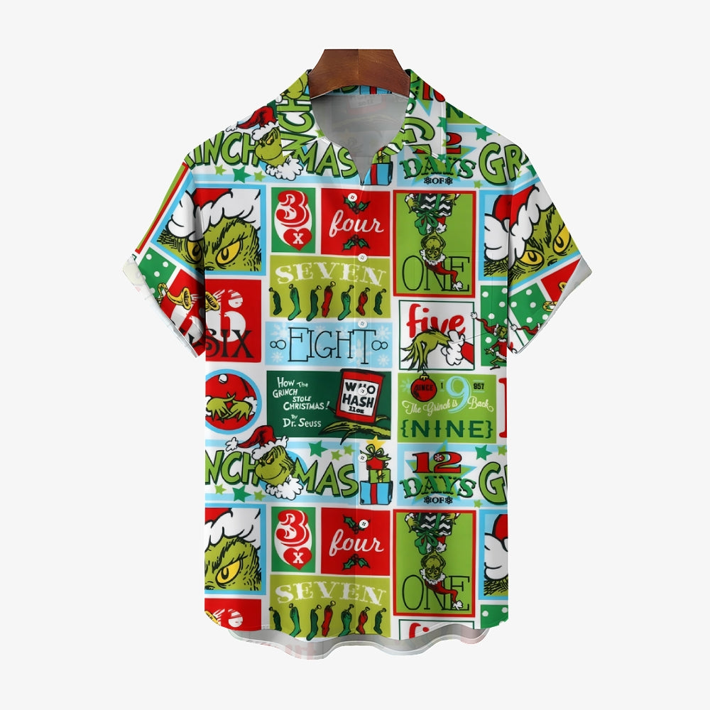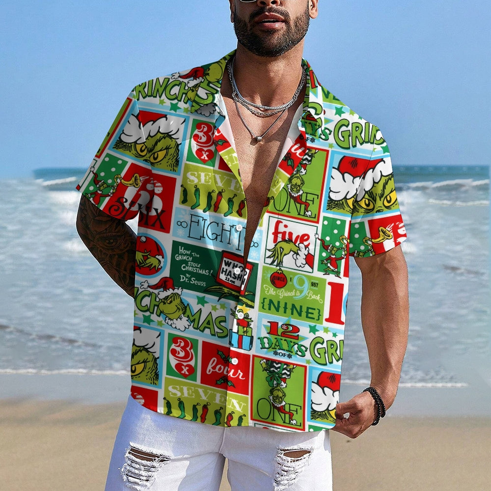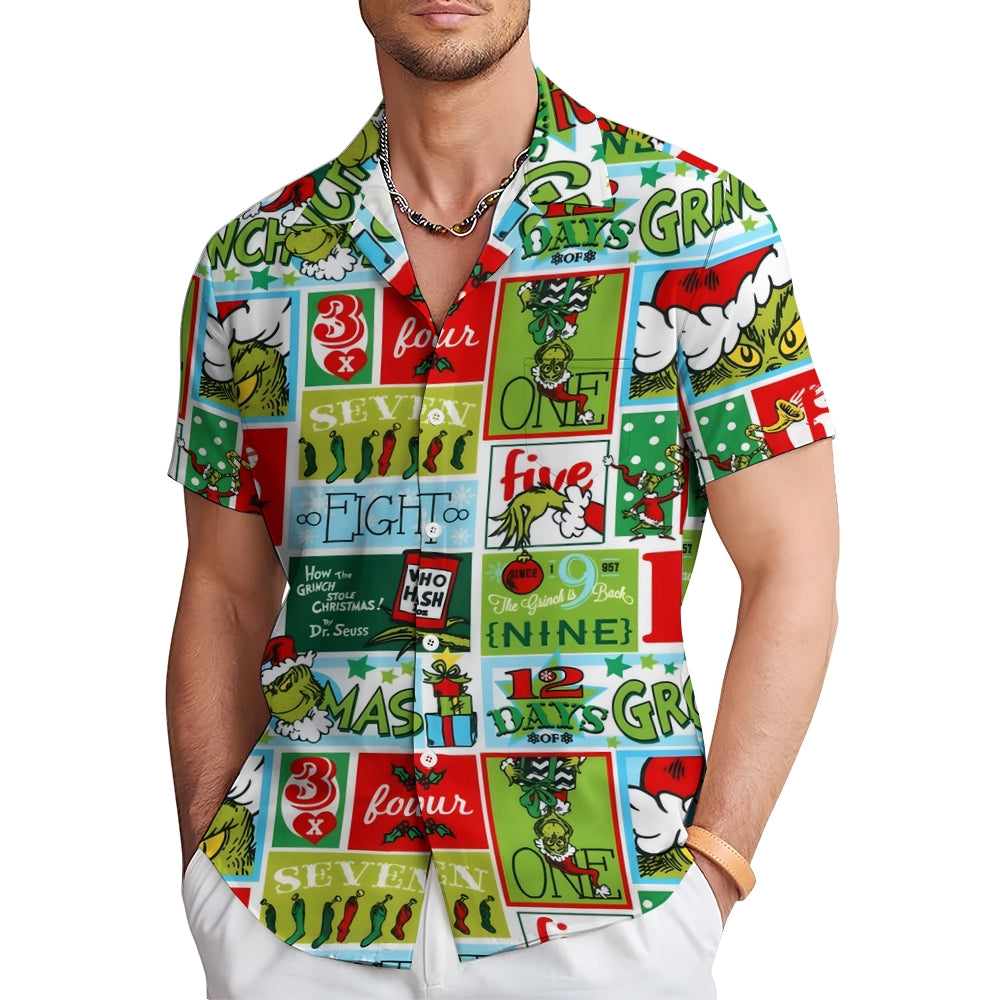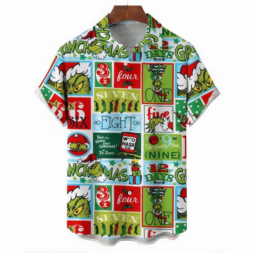 Christmas Green Monster Cartoon Casual Large Size Short Sleeve Shirt 2407004219