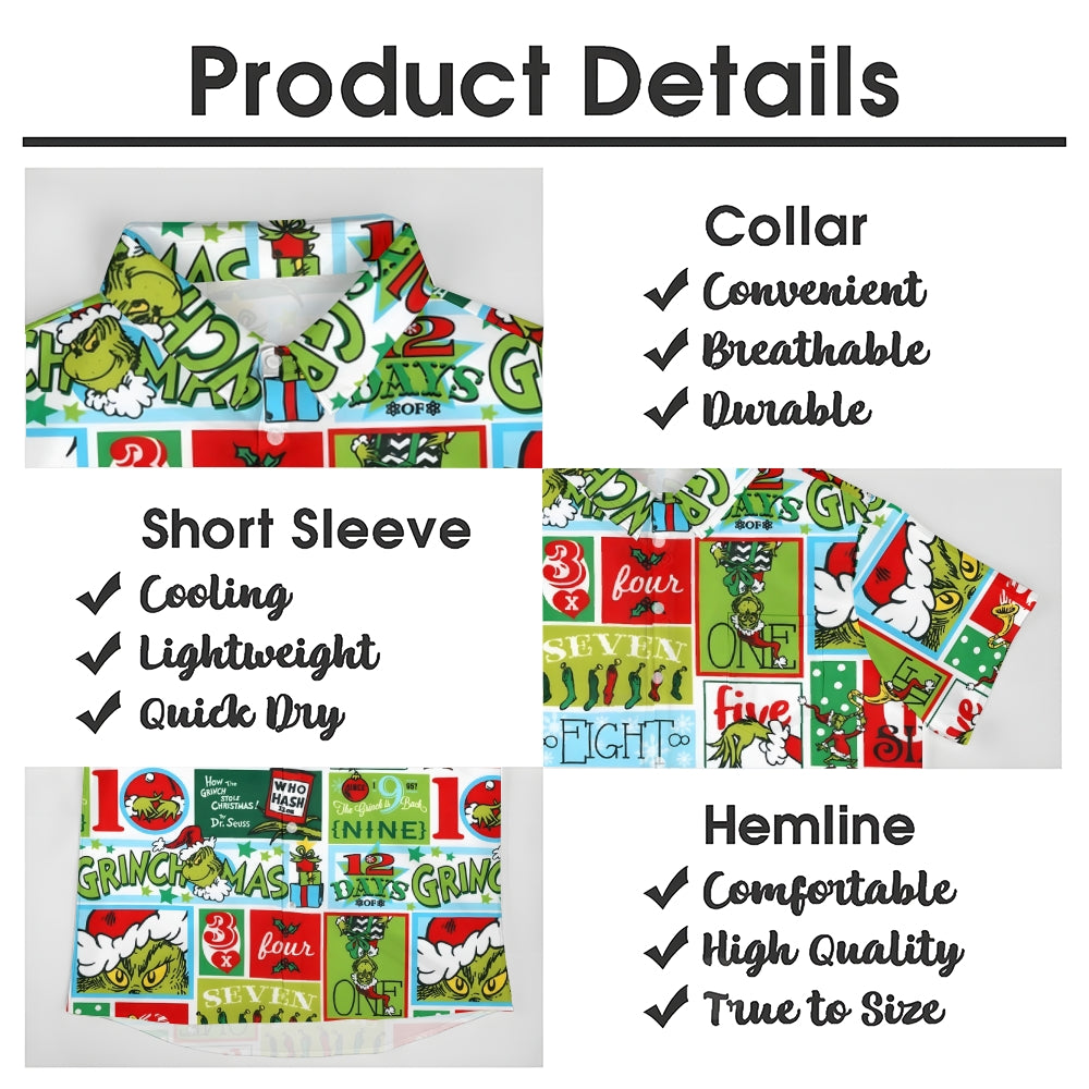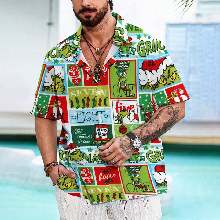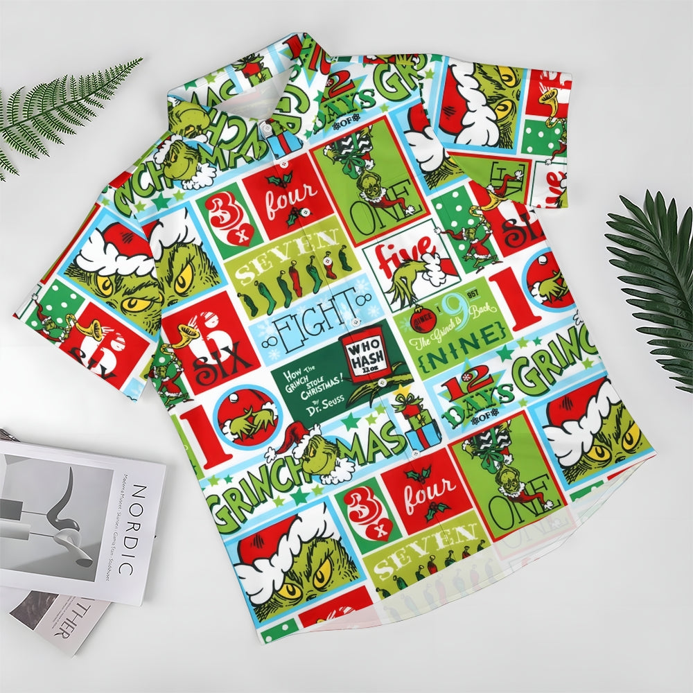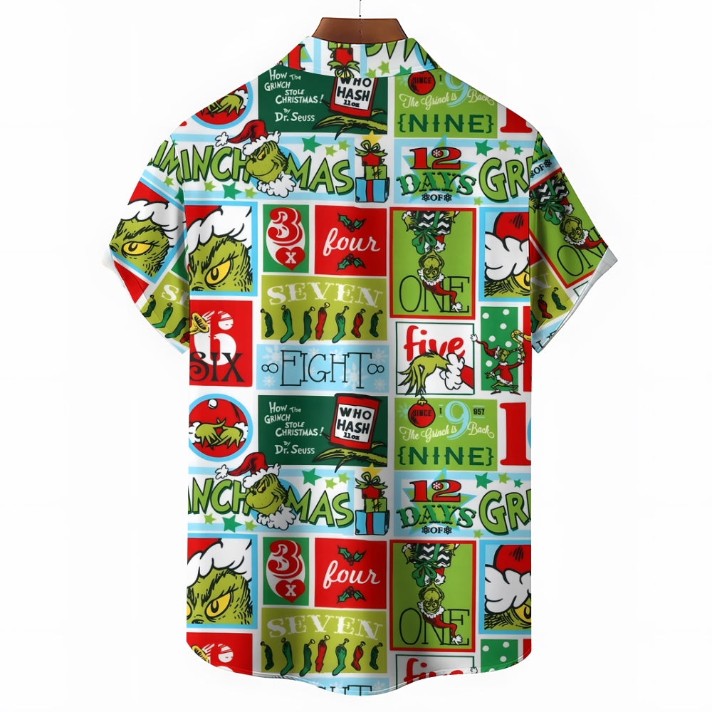 Christmas Green Monster Cartoon Casual Large Size Short Sleeve Shirt 2407004219