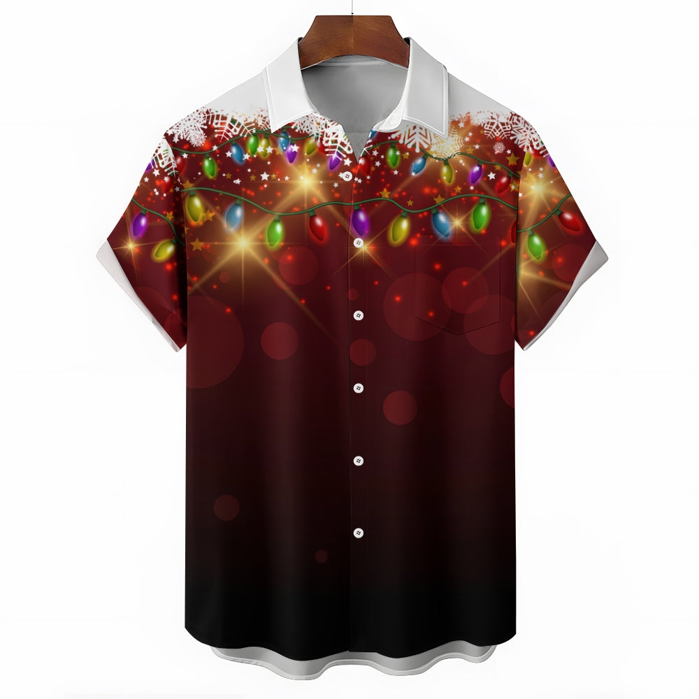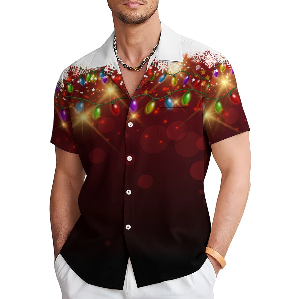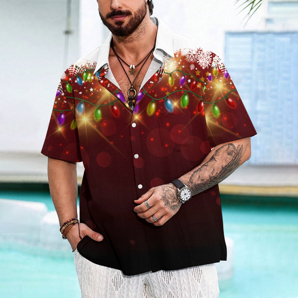 Christmas Lights PrintMen's Pocket Short Sleeve Shirts 2409006774