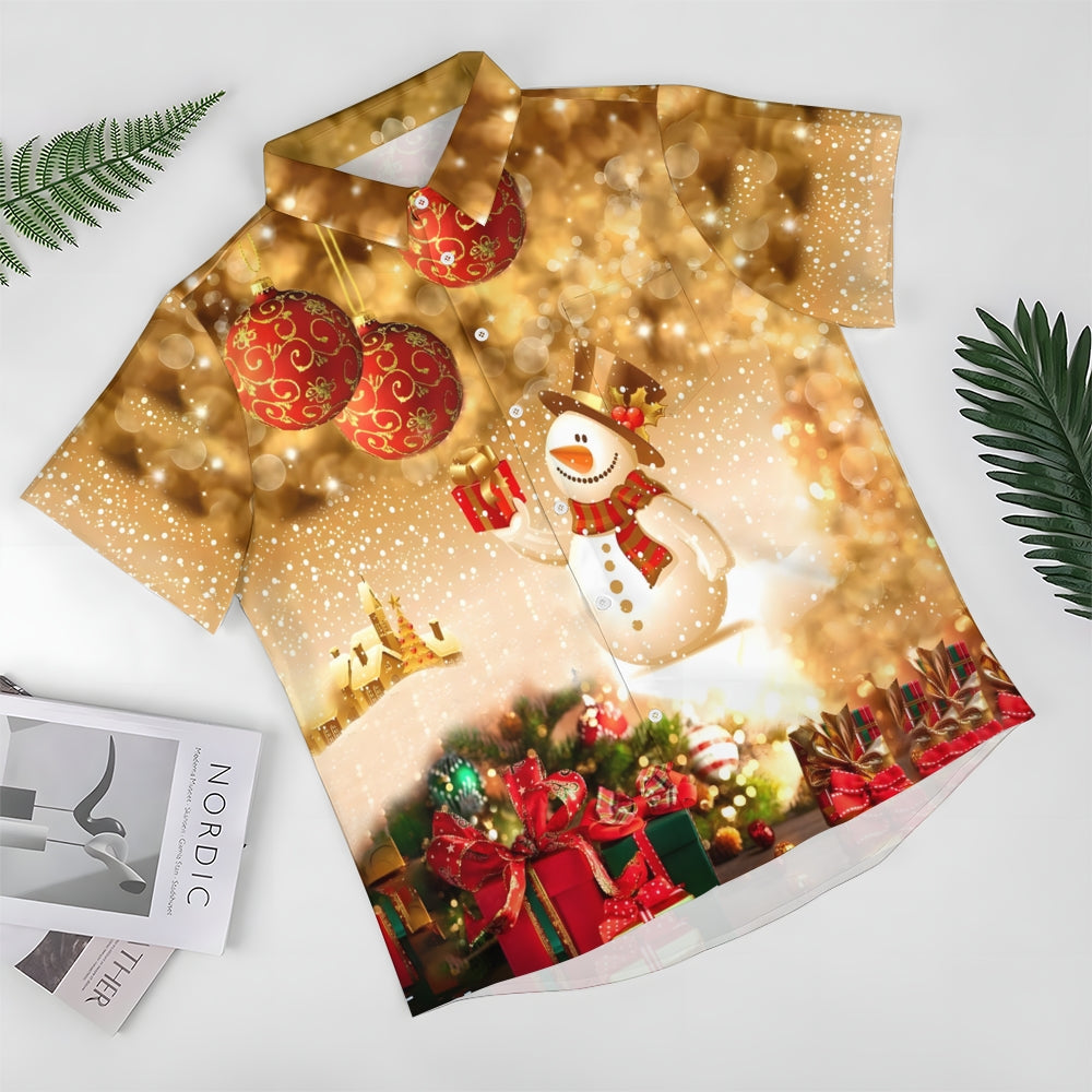 Christmas Snowman Gift Chest Pocket Short Sleeve Shirt 2411005870