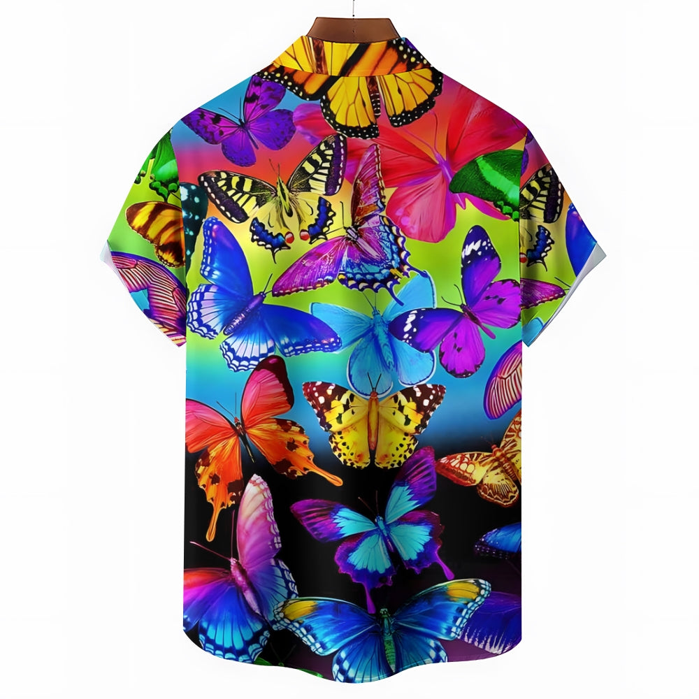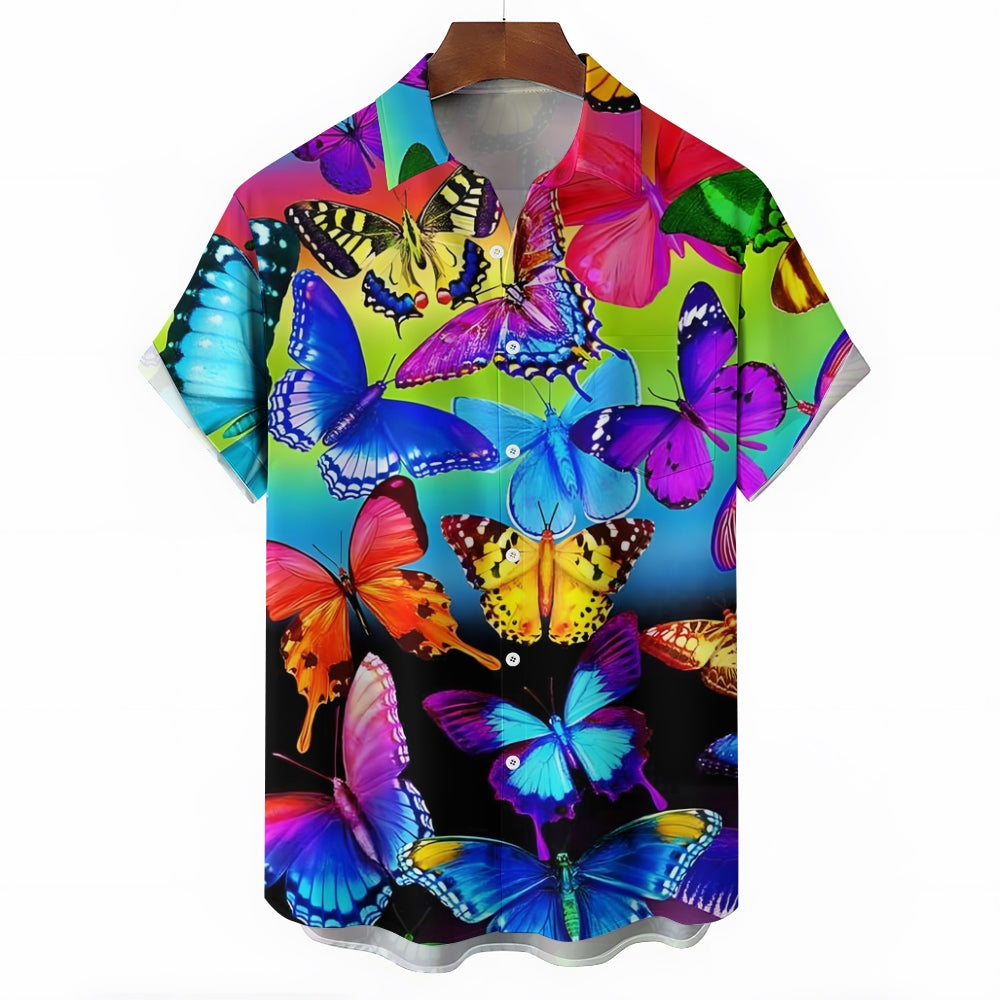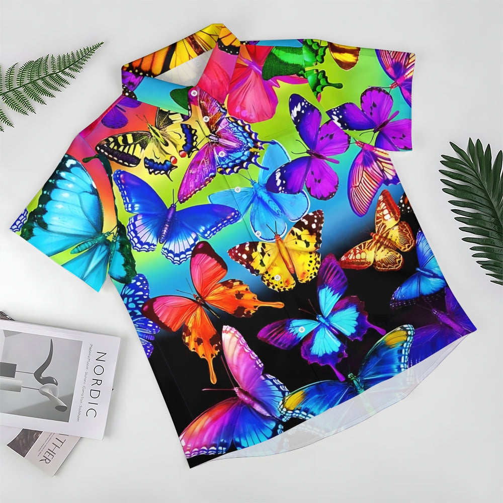 Colorful Butterfly Print Casual Oversized Short Sleeve Shirt 2407005199