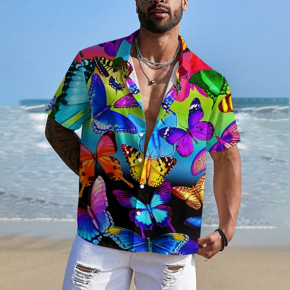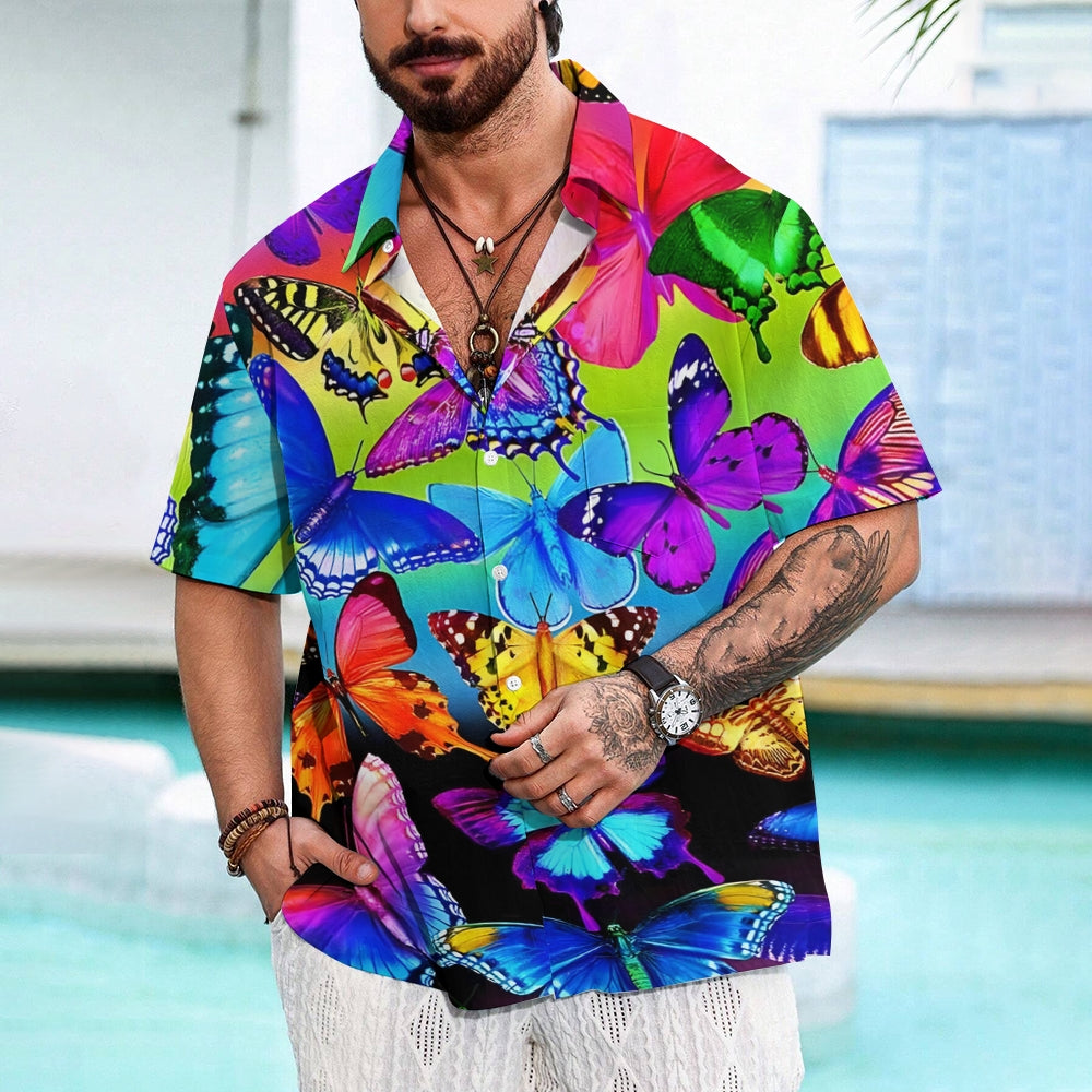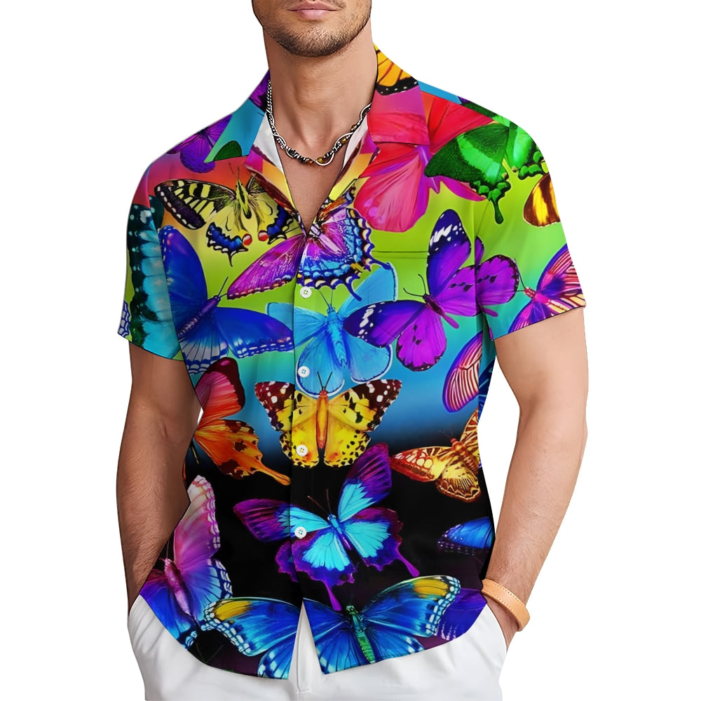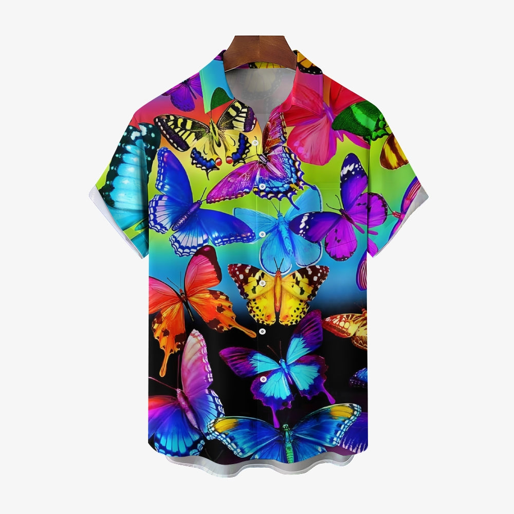 Colorful Butterfly Print Casual Oversized Short Sleeve Shirt 2407005199