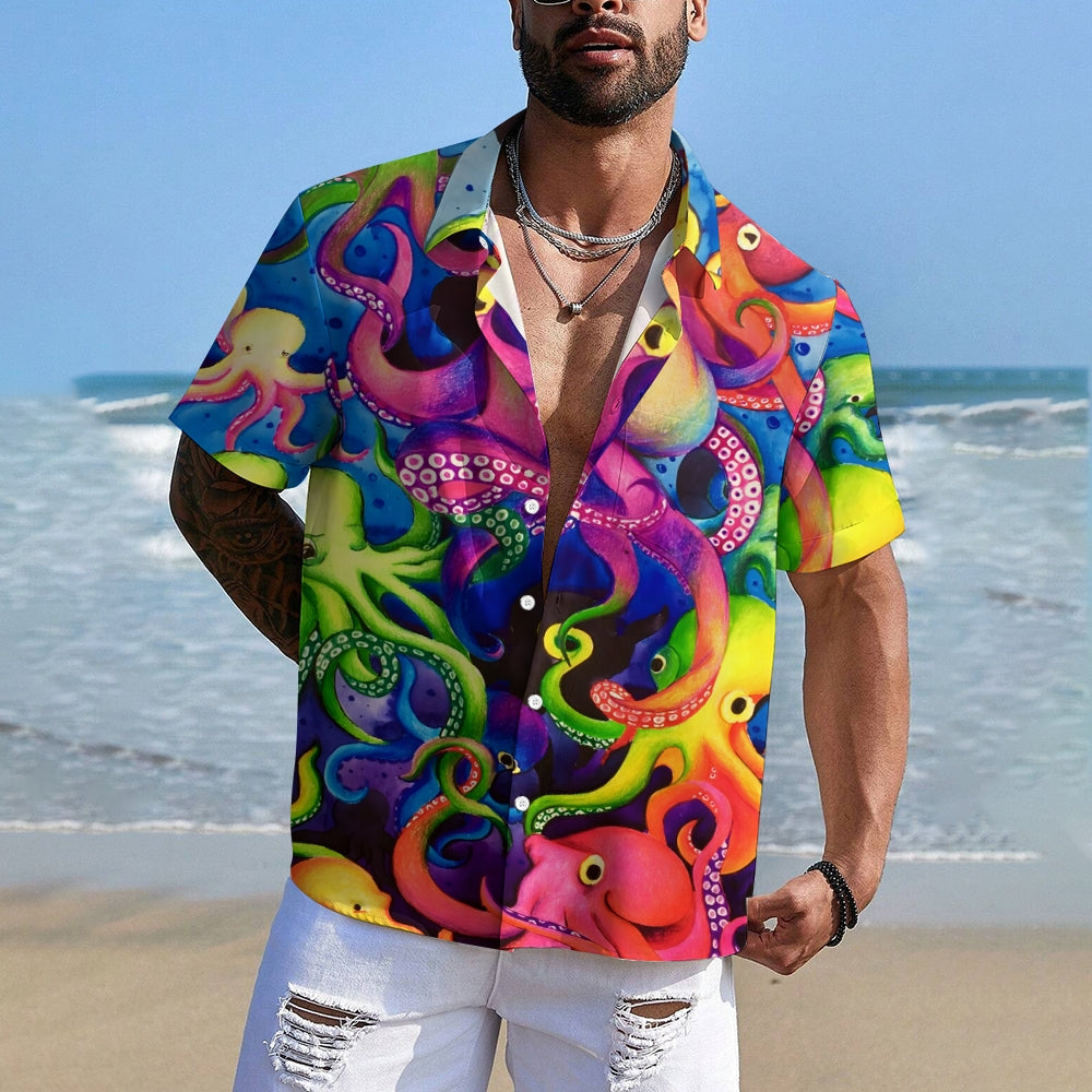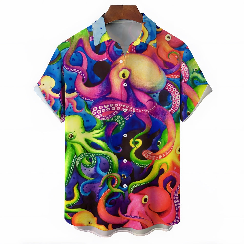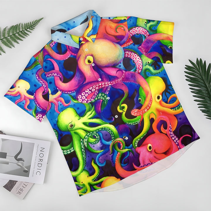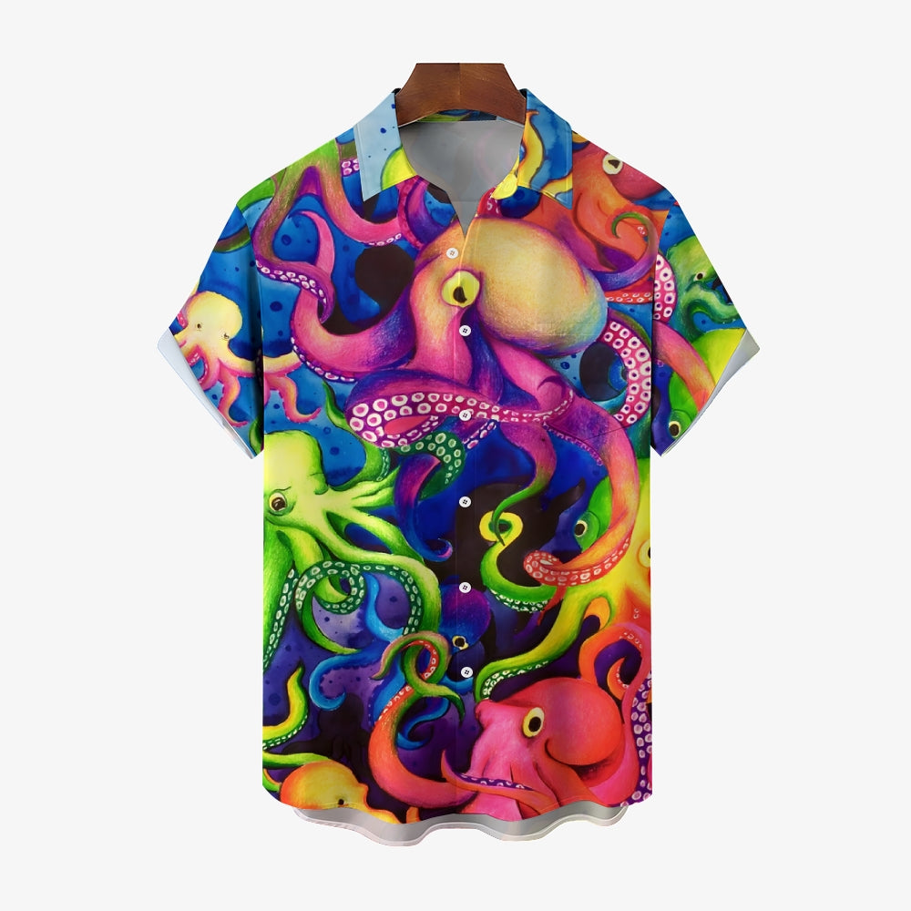 Colorful Octopus Print Casual Oversized Short-Sleeved Shirt 2407001283
