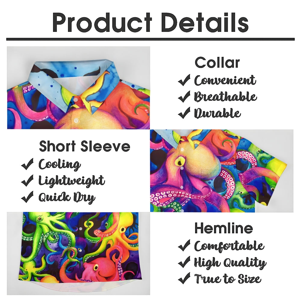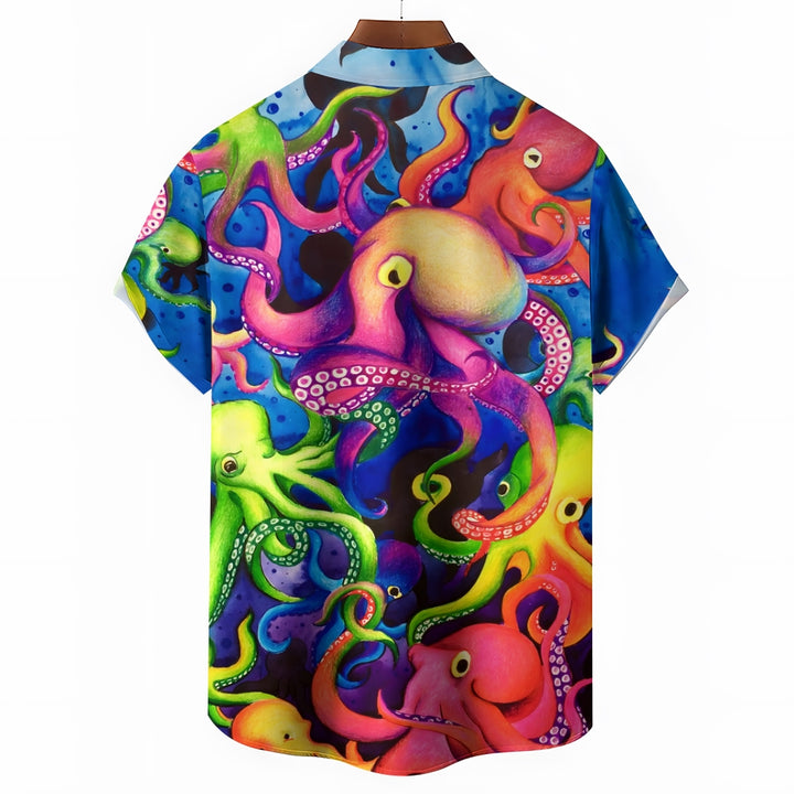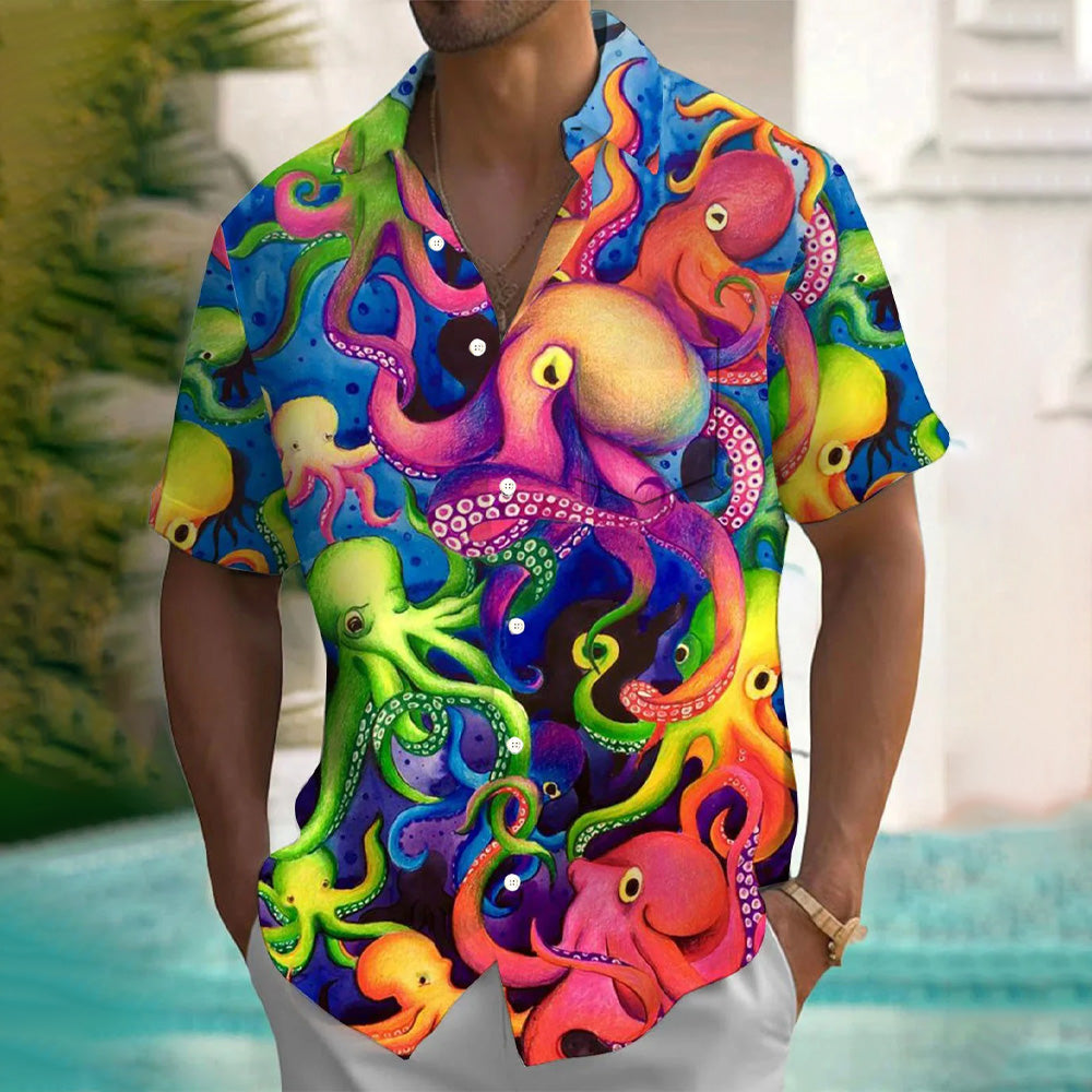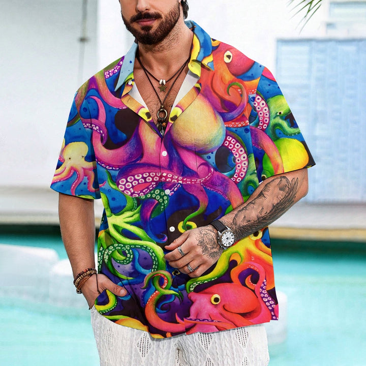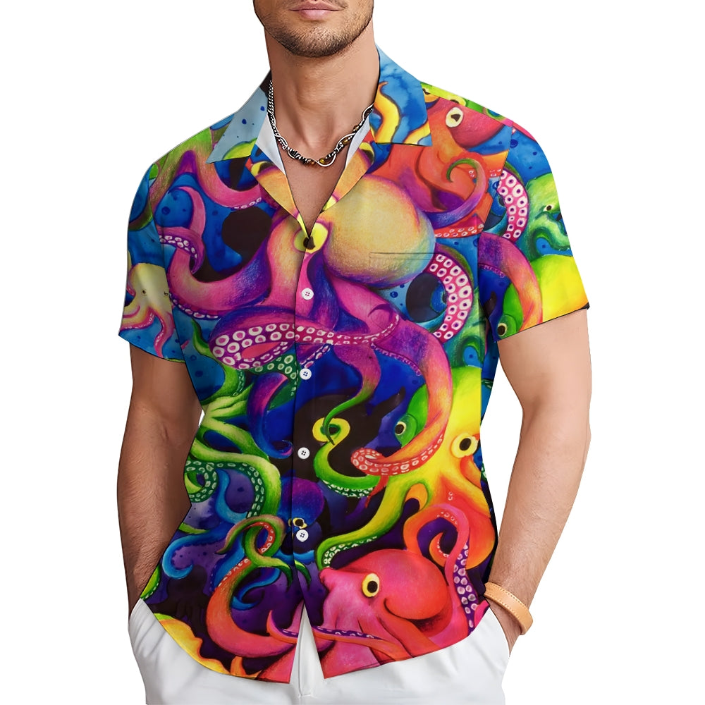 Colorful Octopus Print Casual Oversized Short-Sleeved Shirt 2407001283