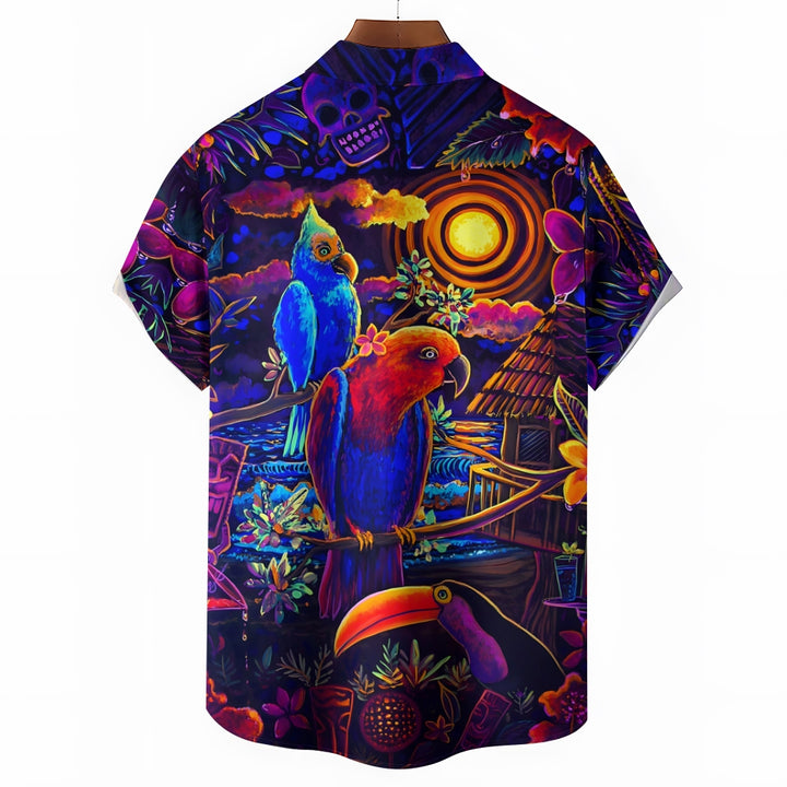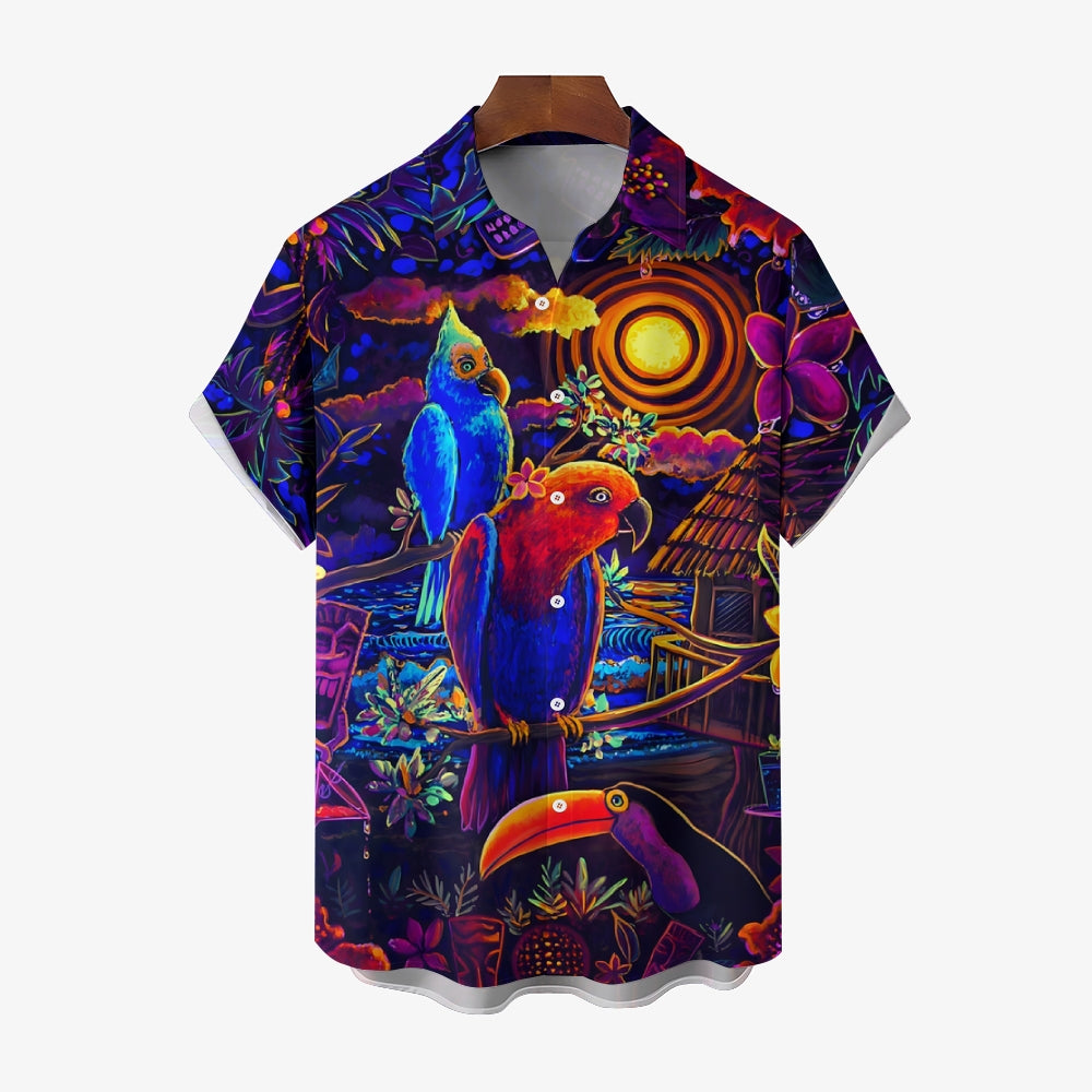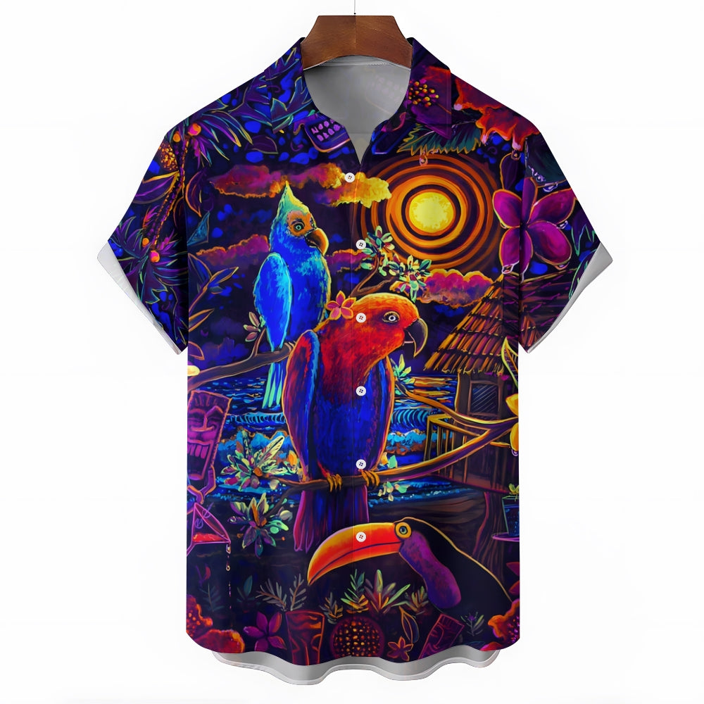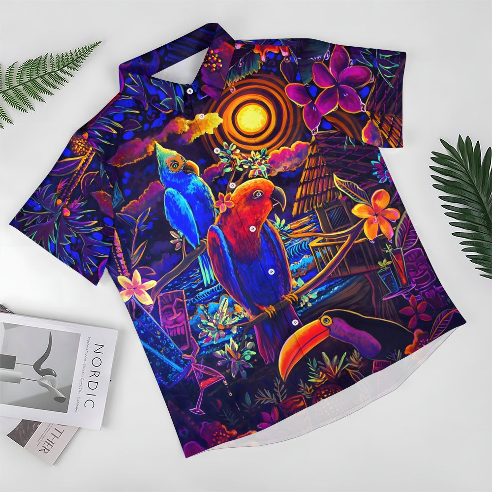 Colorful Parrot Tiki Art Print Casual Large Size Short-Sleeved Shirt 2407000557