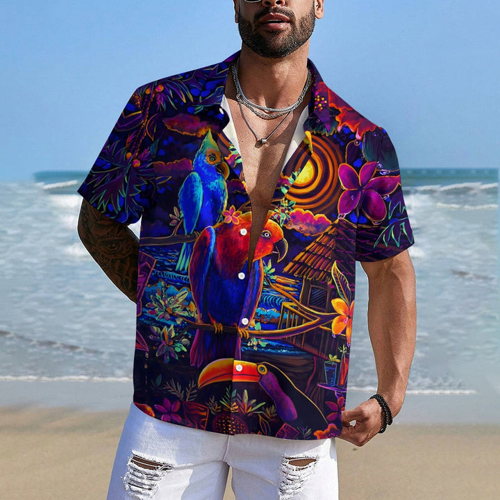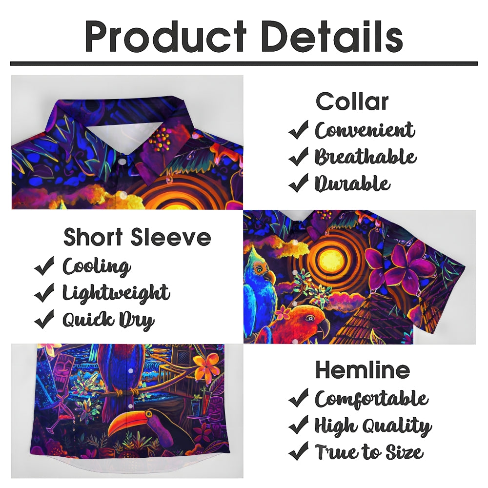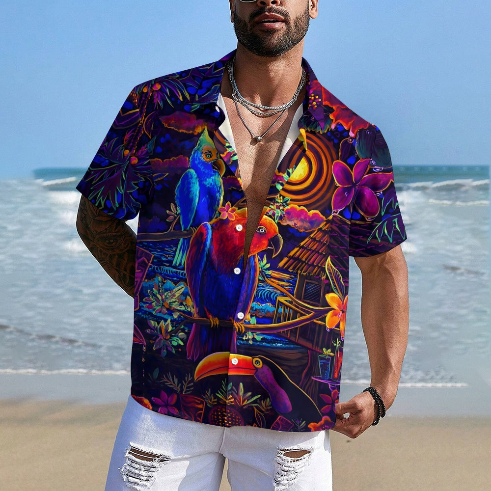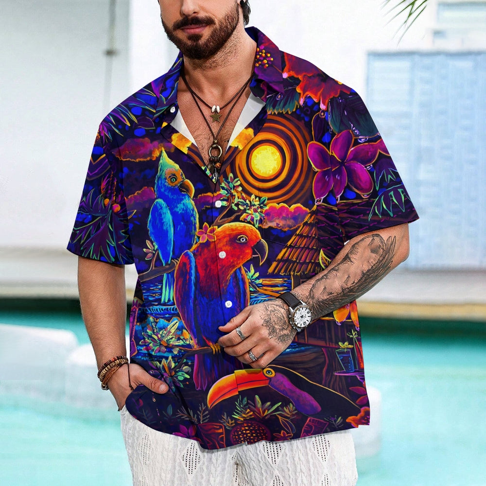 Colorful Parrot Tiki Art Print Casual Large Size Short-Sleeved Shirt 2407000557