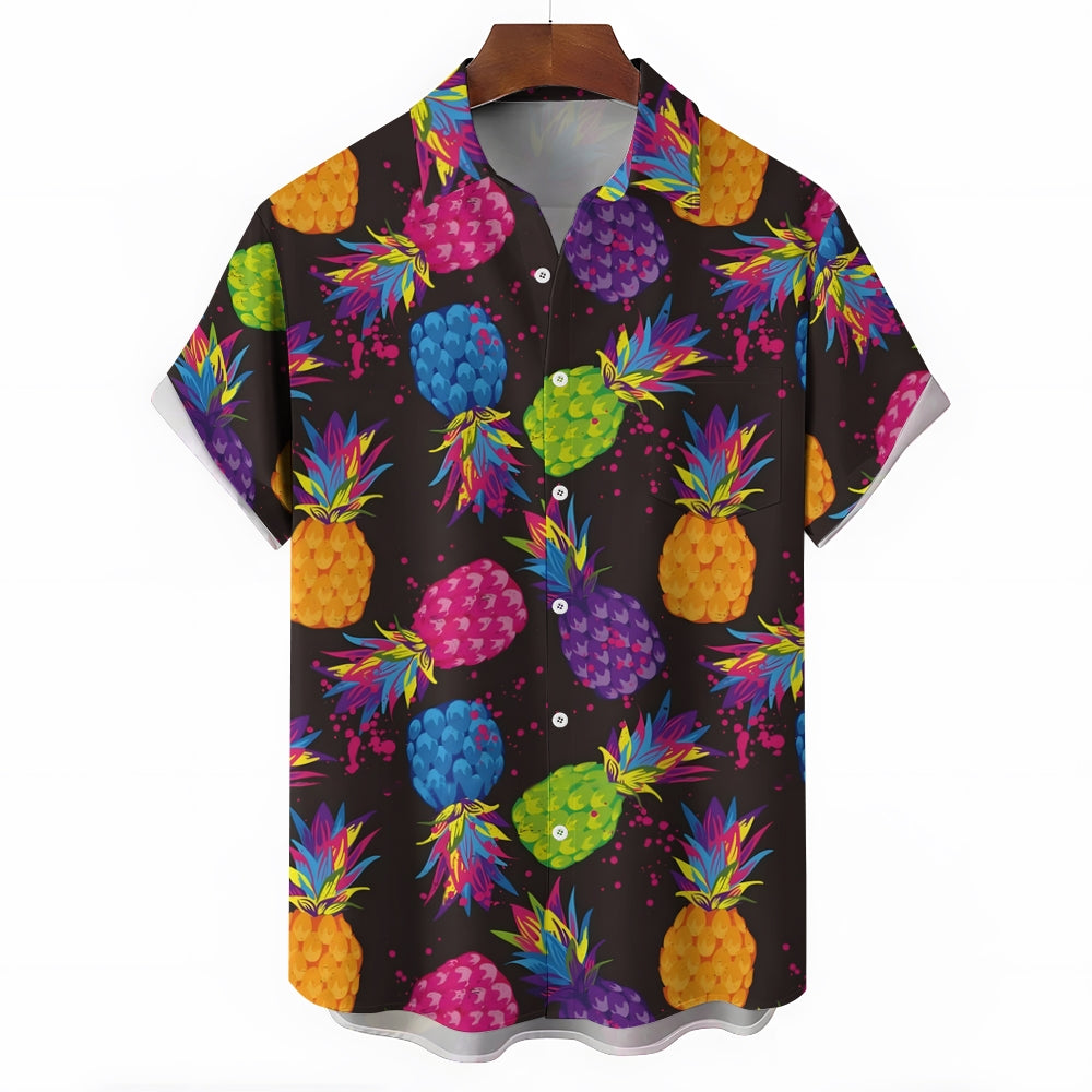 Colorful Pineapple Hawaiian Casual Short Sleeve Shirt 2404001790