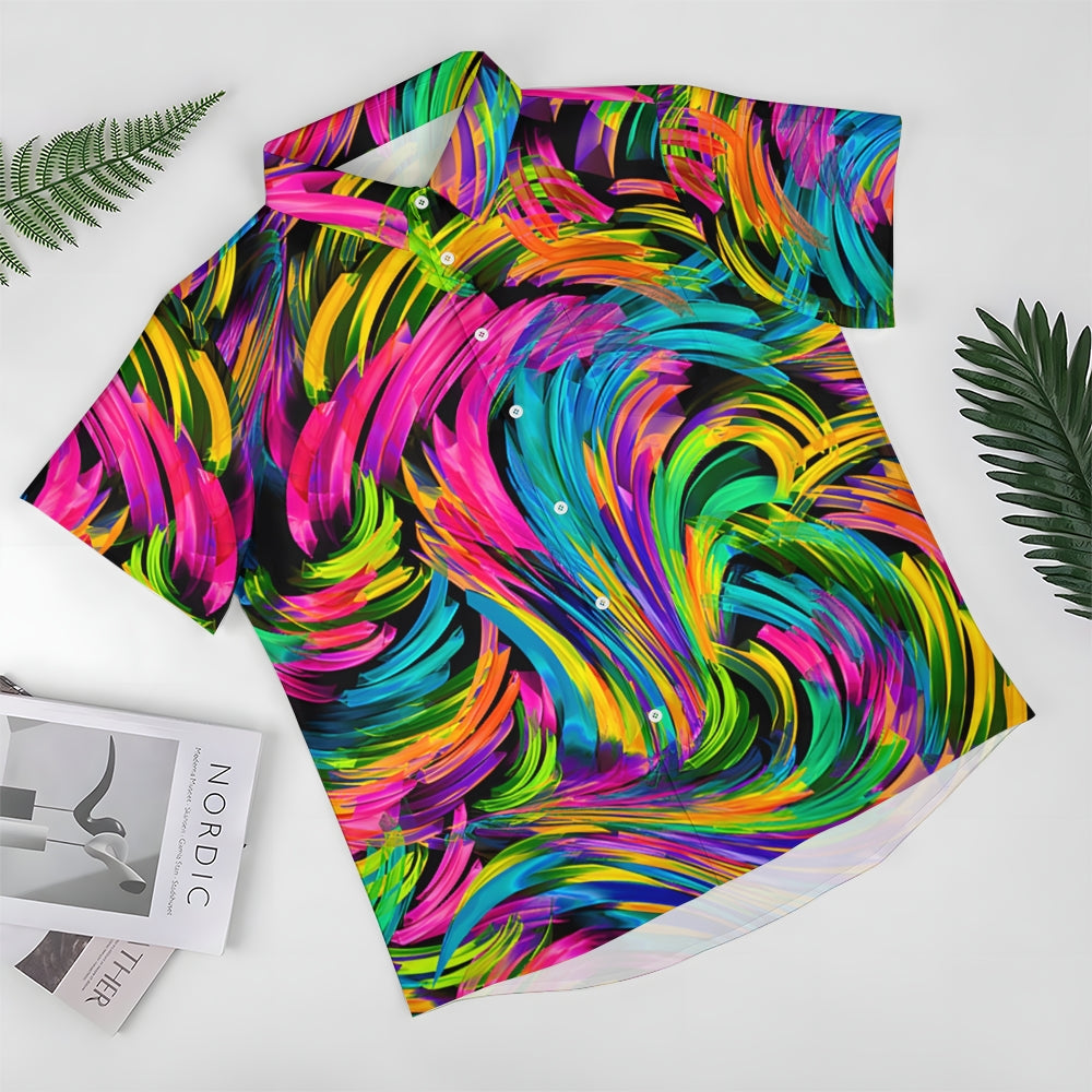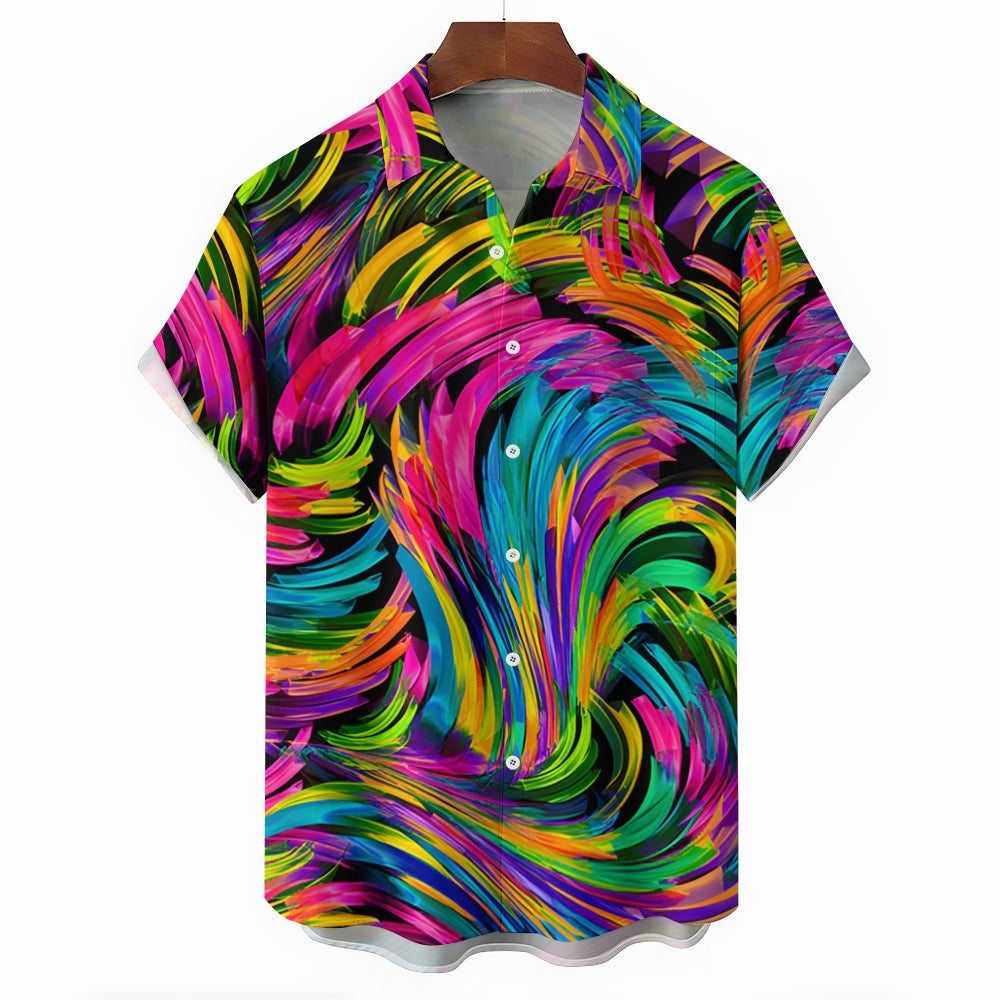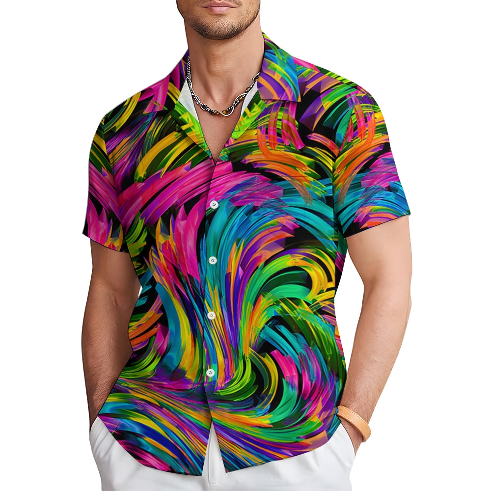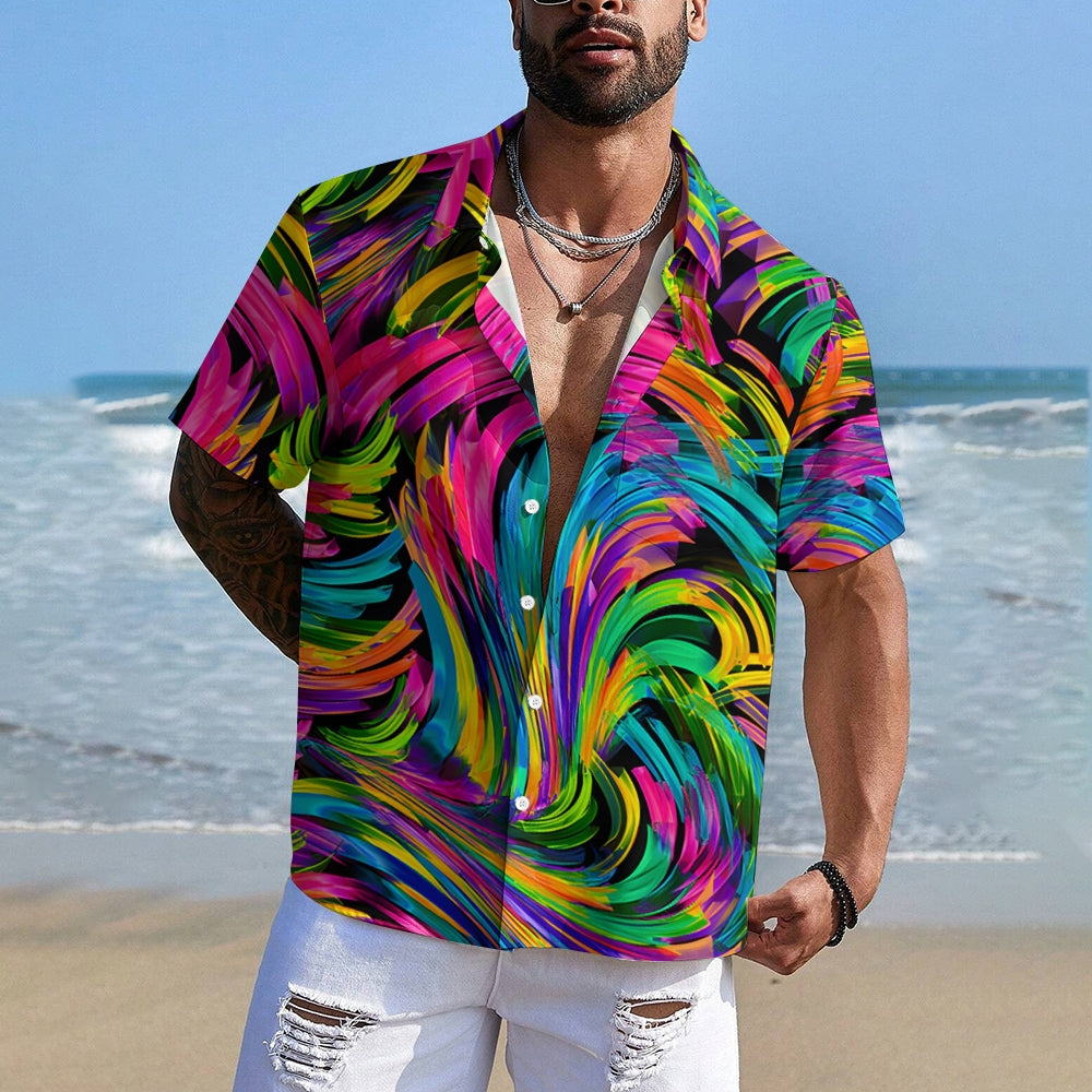 Colorful Texture Spiral Print Casual Large Size Short-Sleeved Shirt 2407001294
