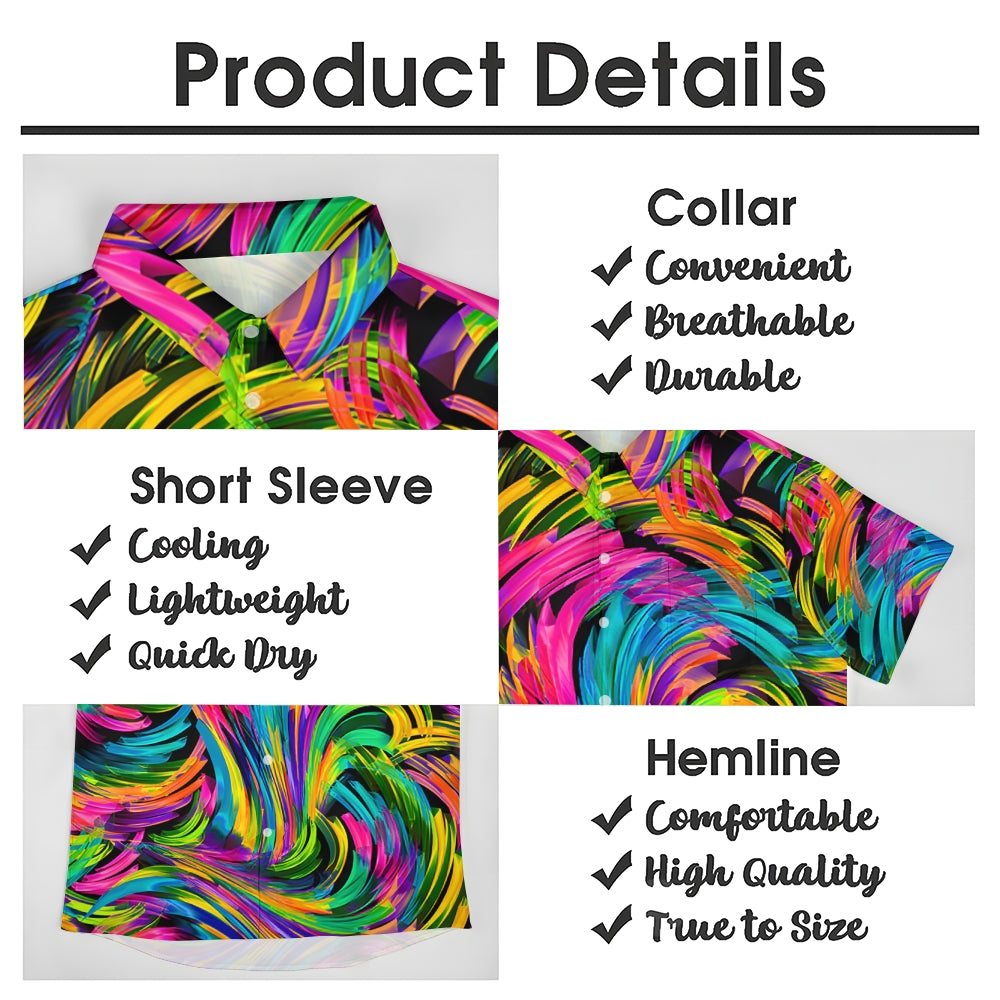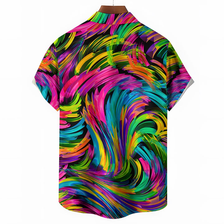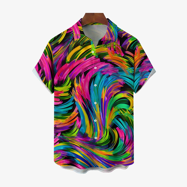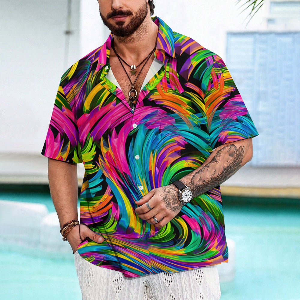 Colorful Texture Spiral Print Casual Large Size Short-Sleeved Shirt 2407001294