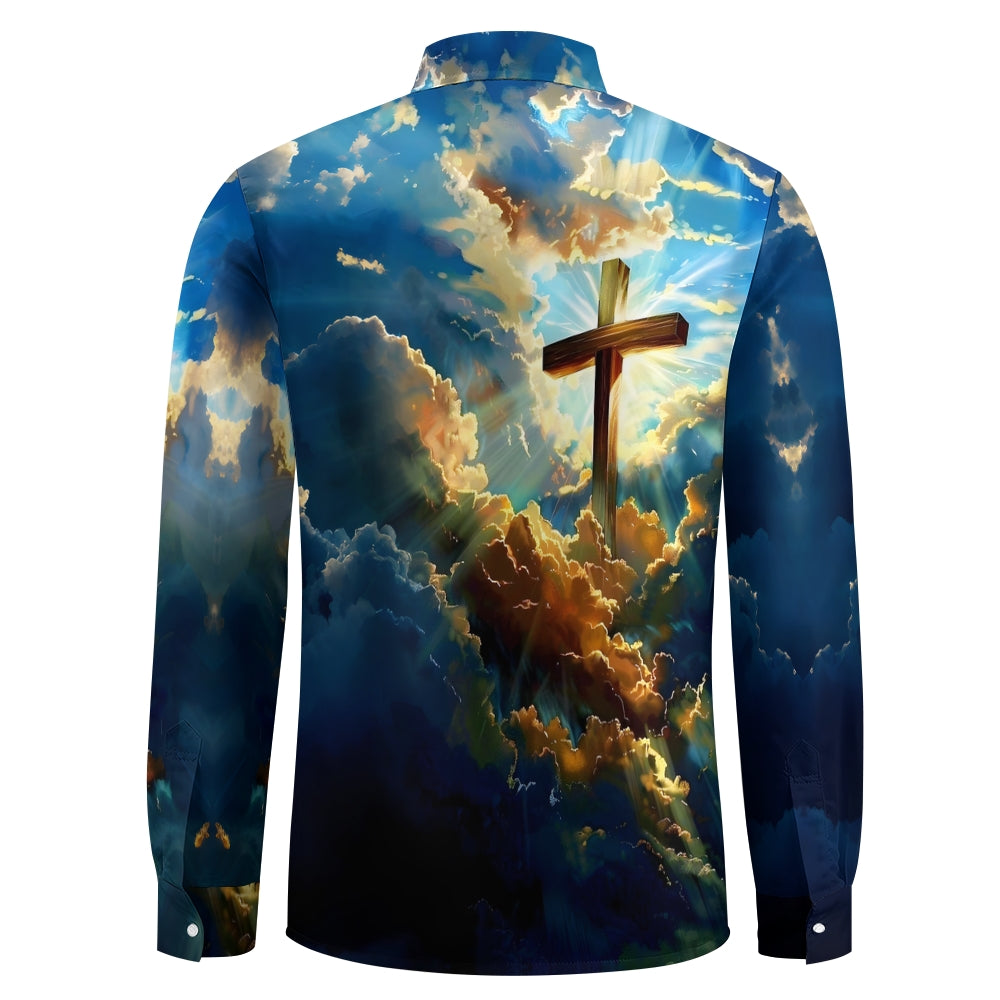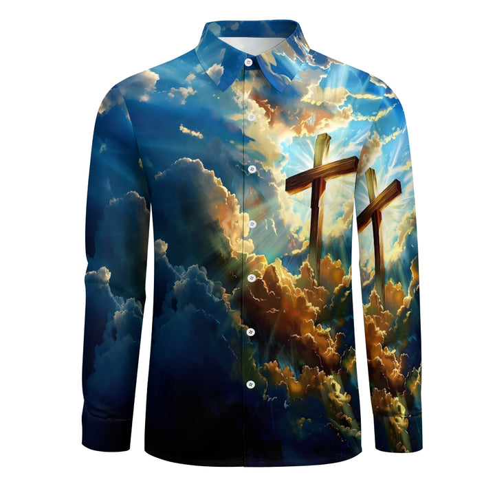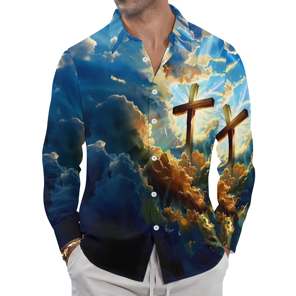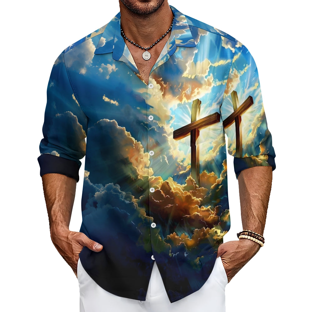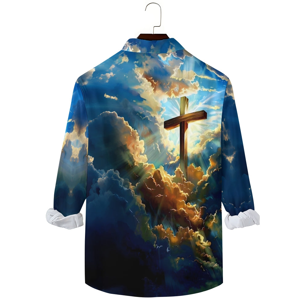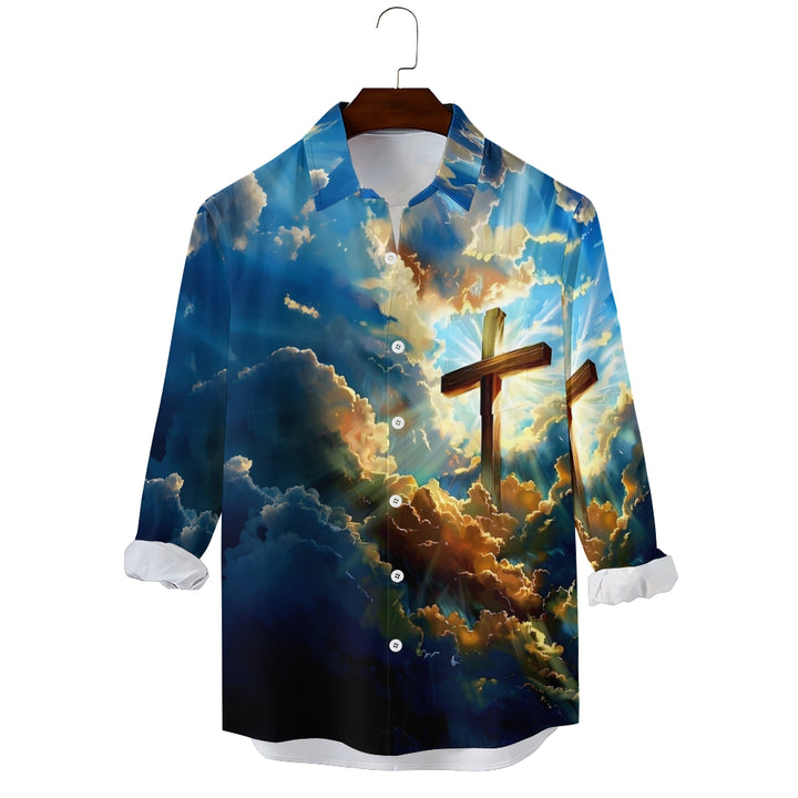 Cross Print In The Clouds Casual Easter Long Sleeve Shirt 2501001610