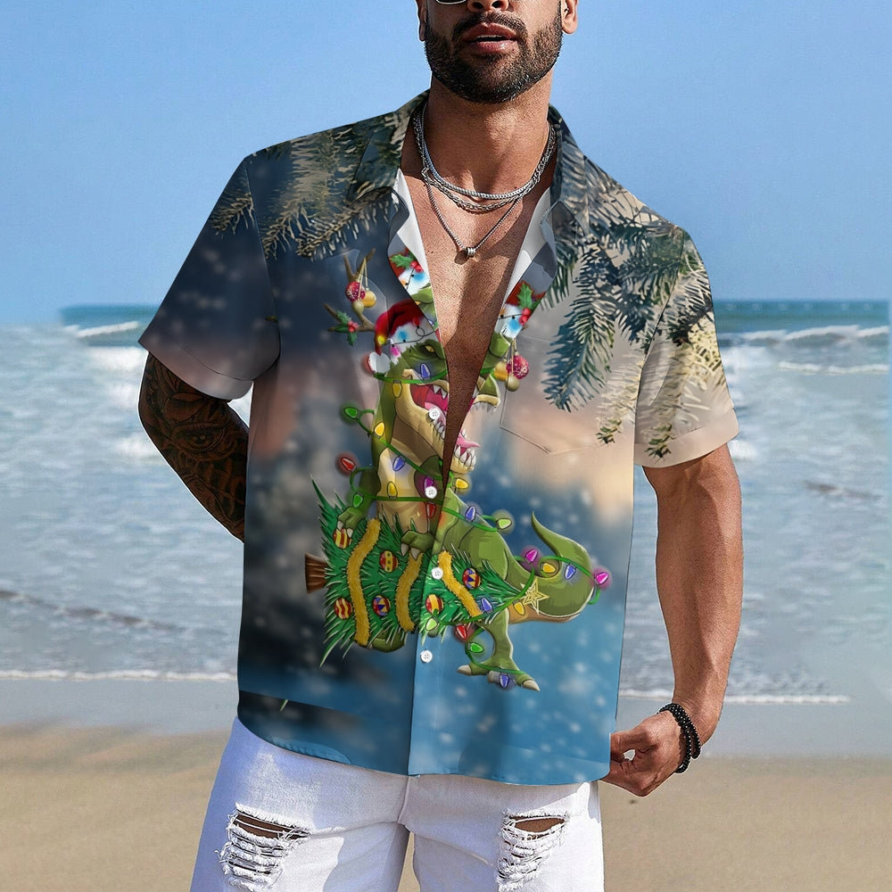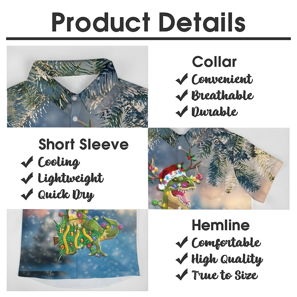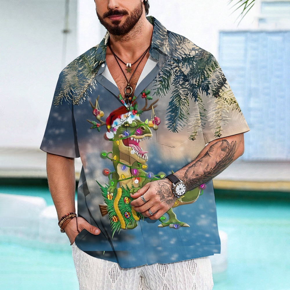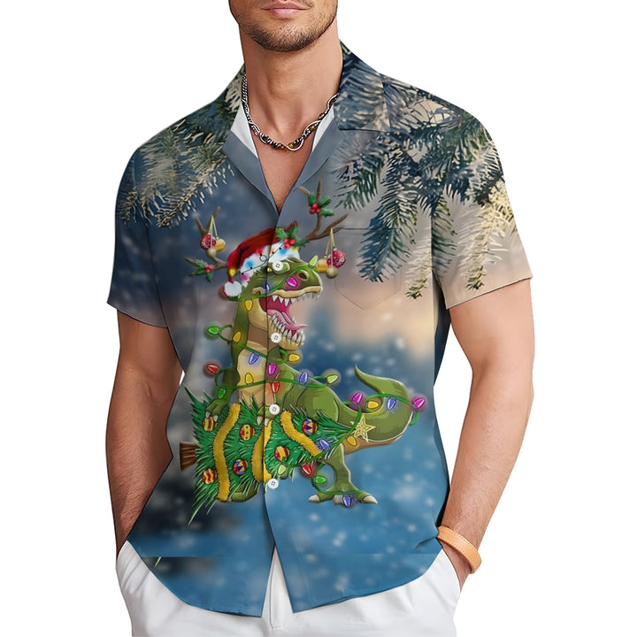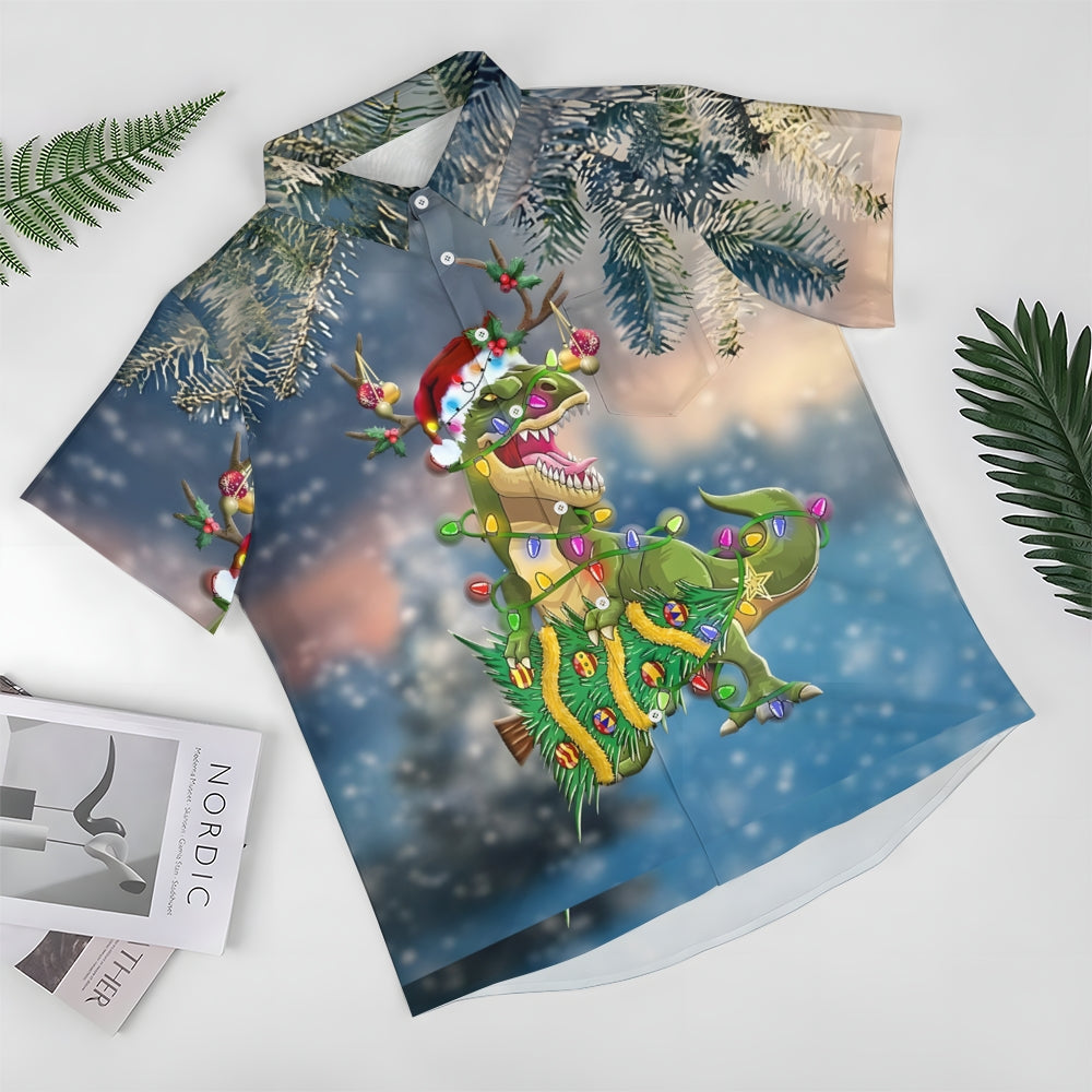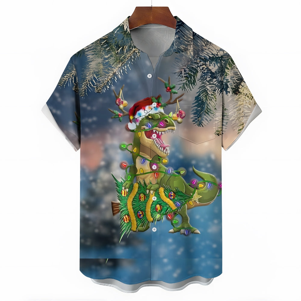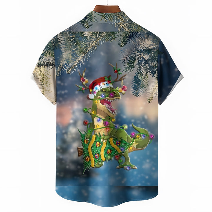 Dinosaur Christmas Colored Lights Casual Short Sleeve Shirt 2408007697
