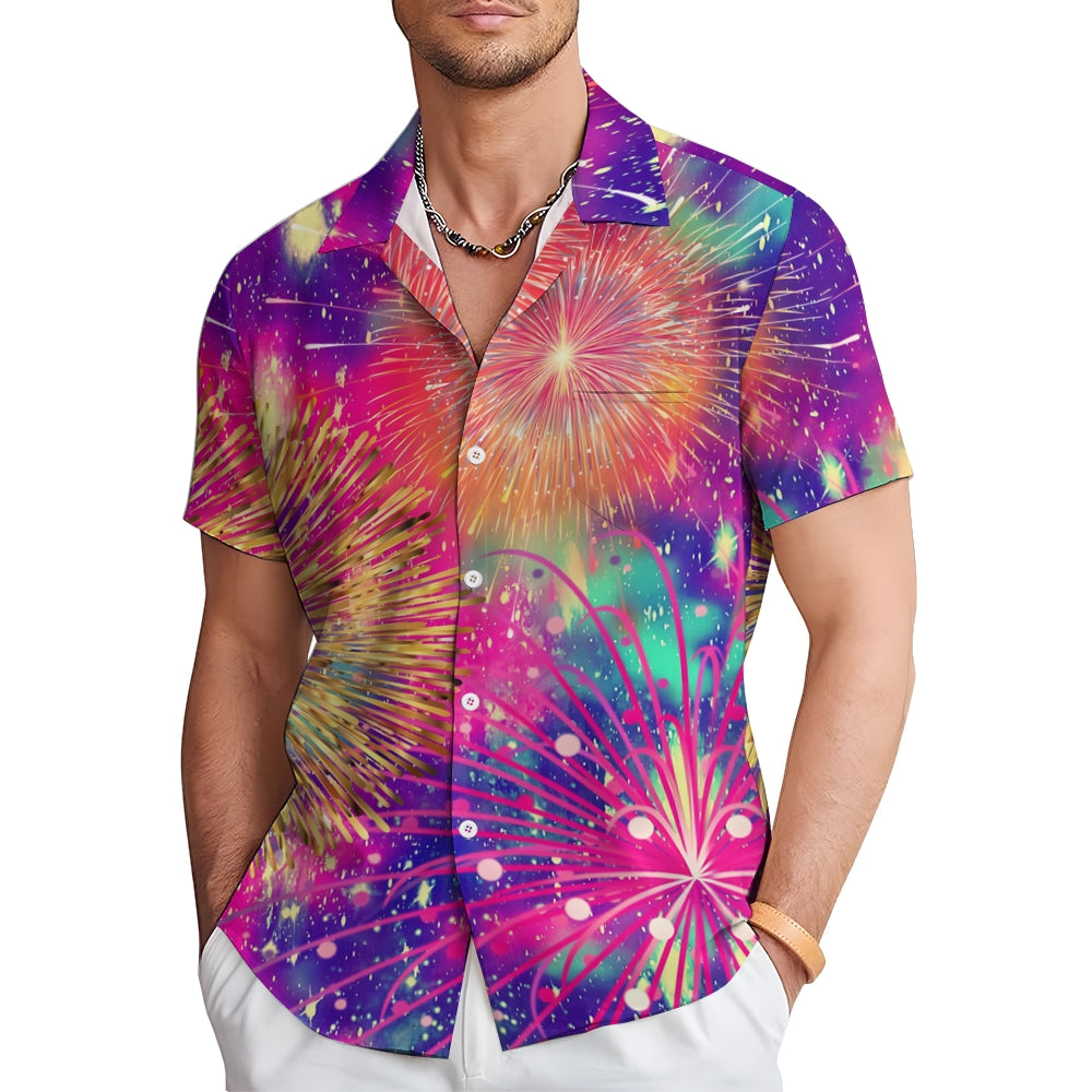 Festive Fireworks Casual Short Sleeve Shirt 2408004501