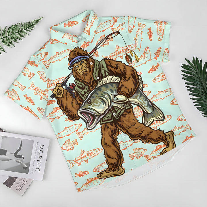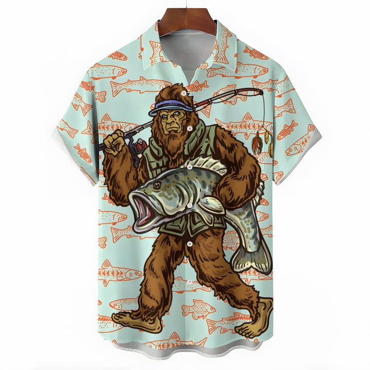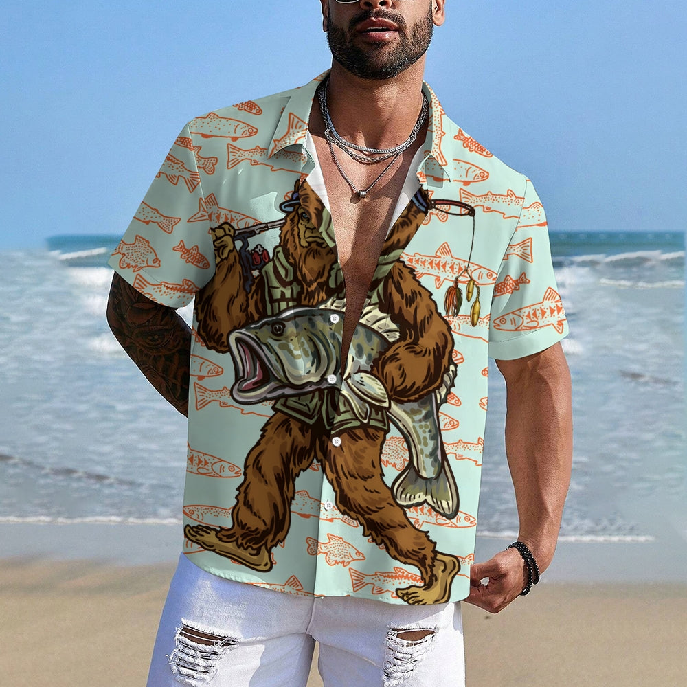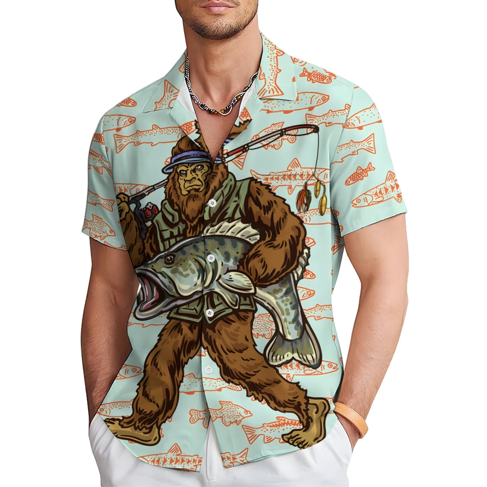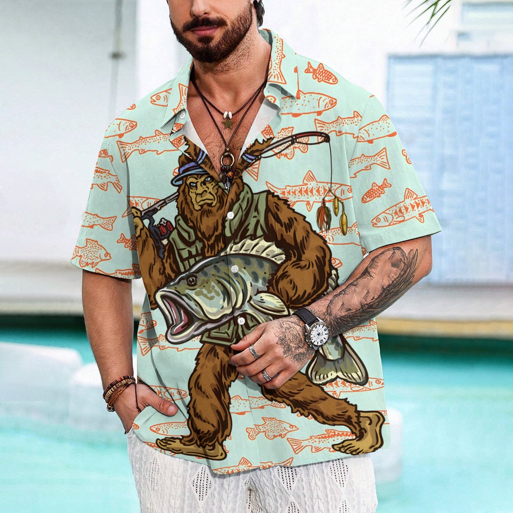 Fishing Bigfoot Breathable Linen Short Sleeve Shirt 2412002646