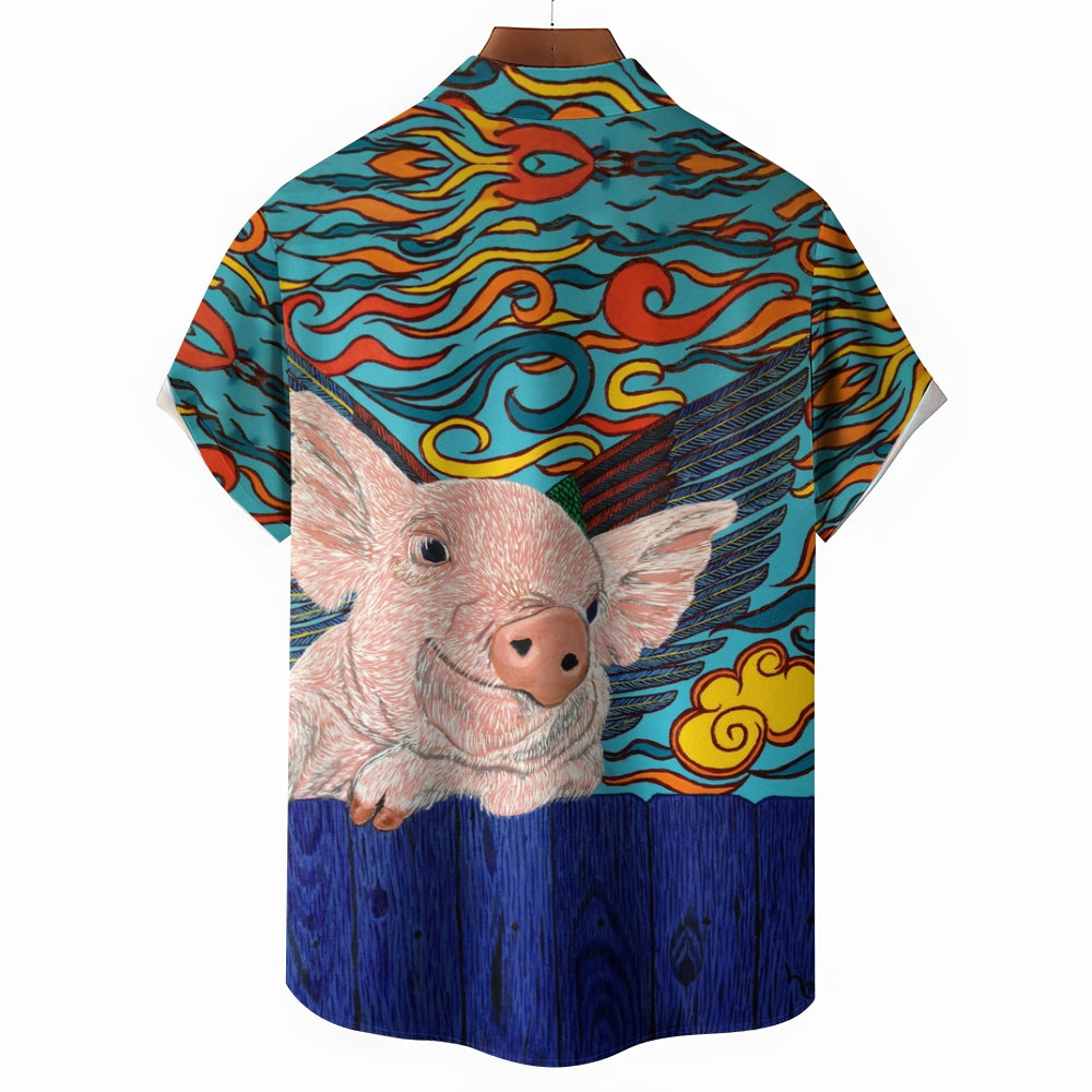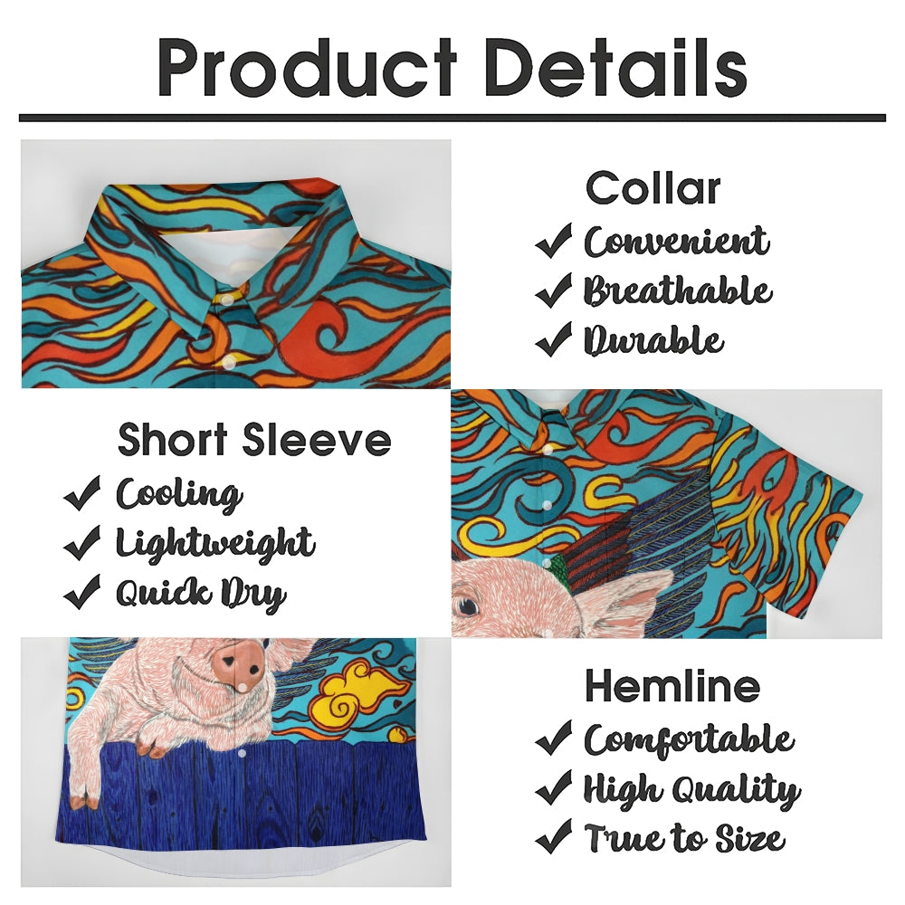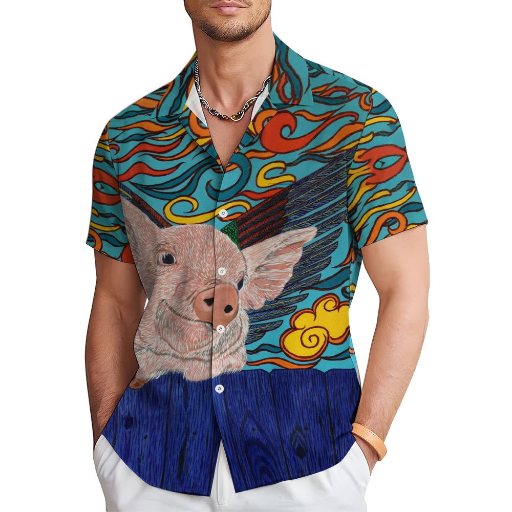 Flying Pig Cartoon Print Casual Large Size Short Sleeve Shirt 2407005325