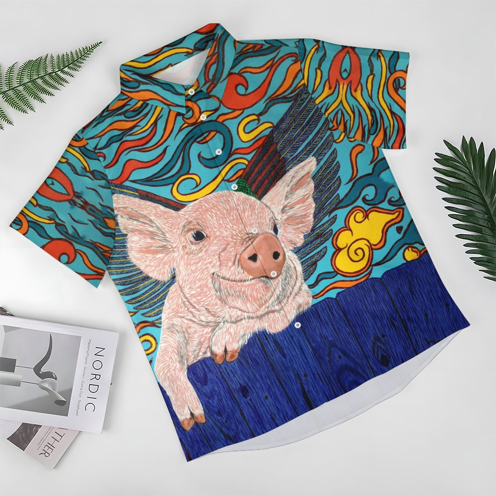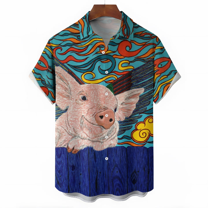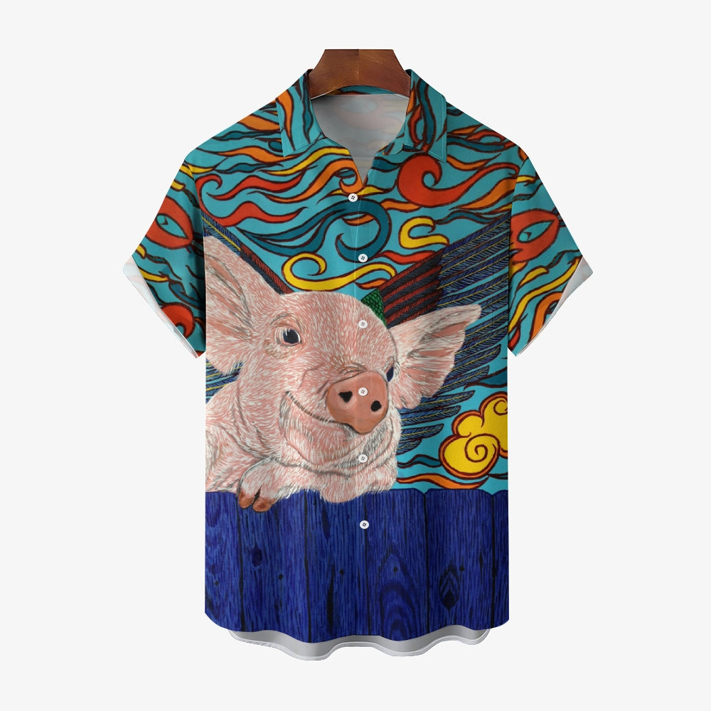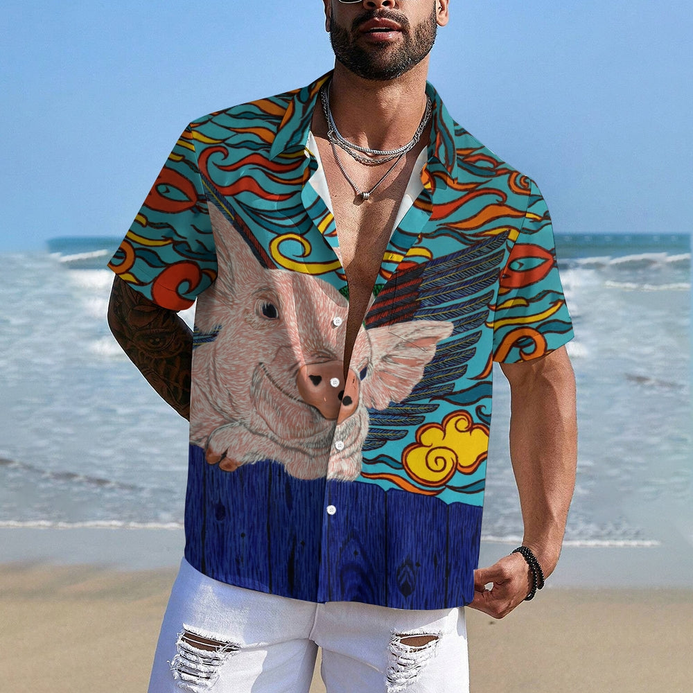 Flying Pig Cartoon Print Casual Large Size Short Sleeve Shirt 2407005325
