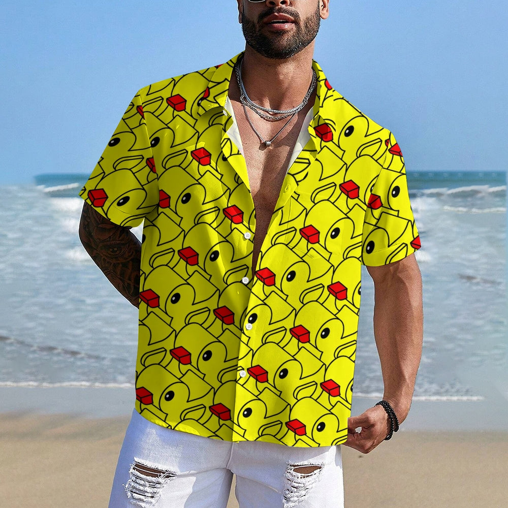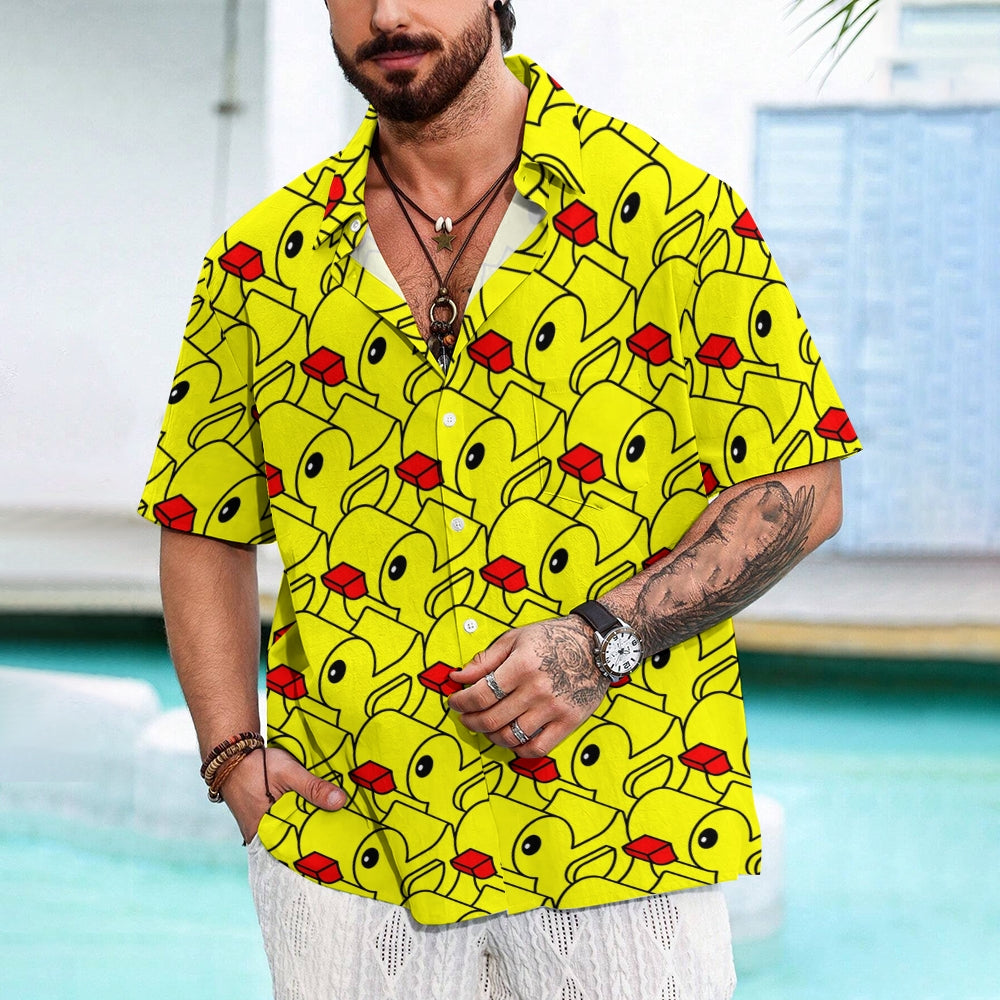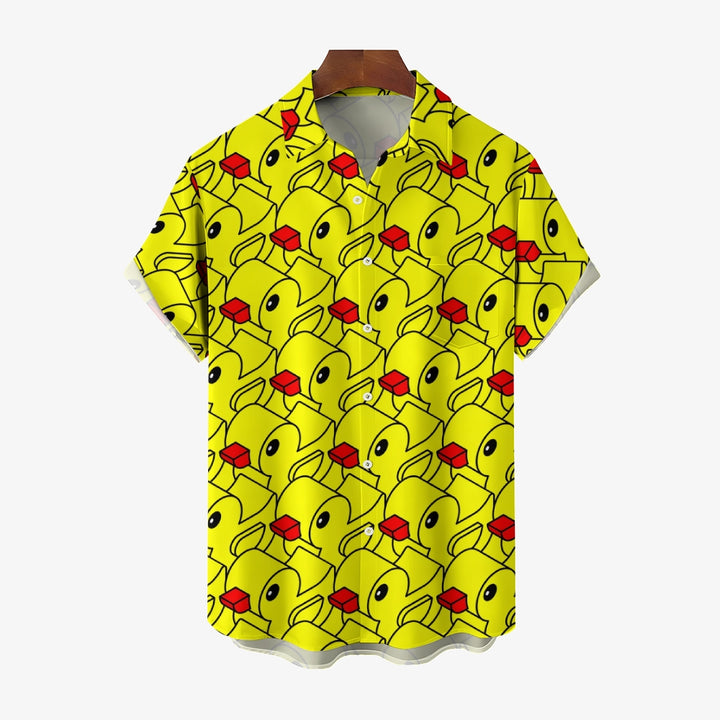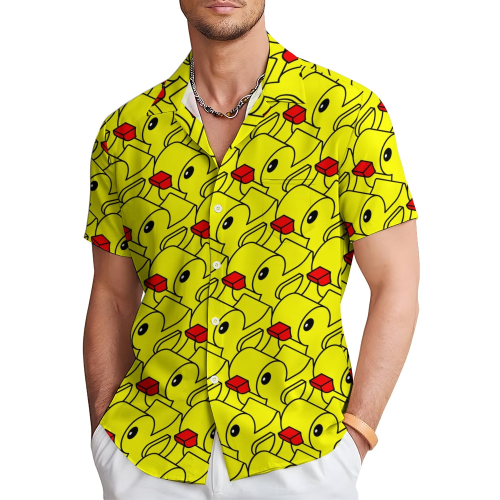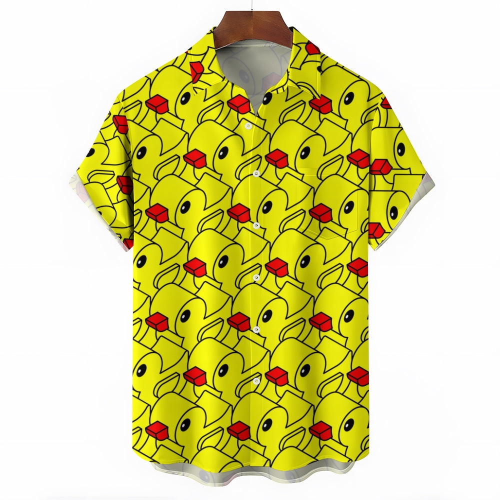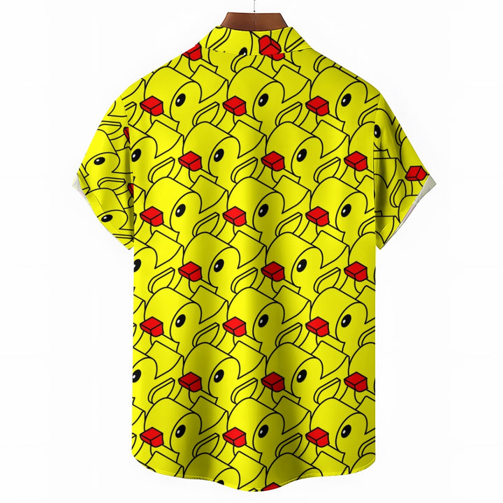 Geometric Little Yellow Duck Casual Short Sleeve Shirt 2403000380