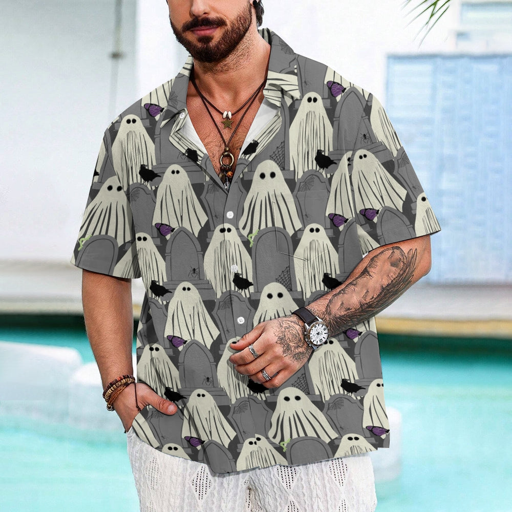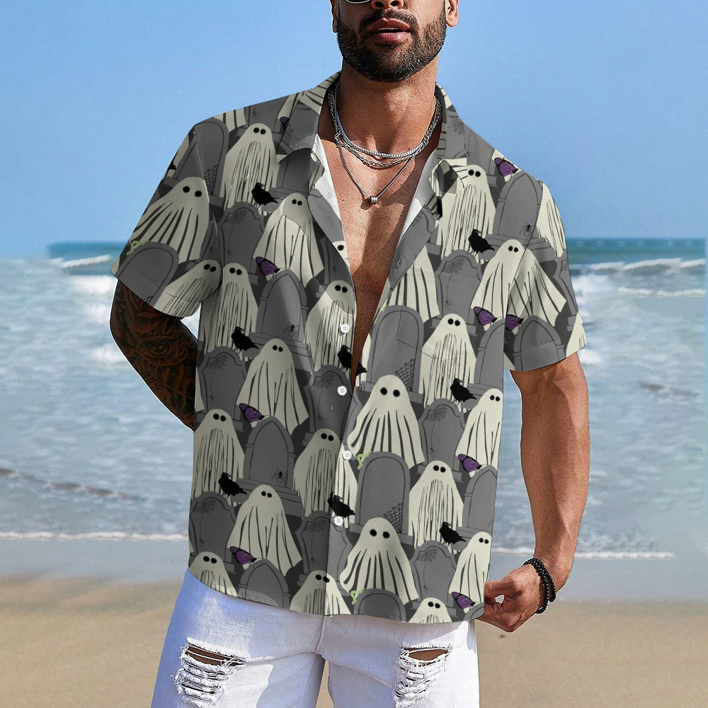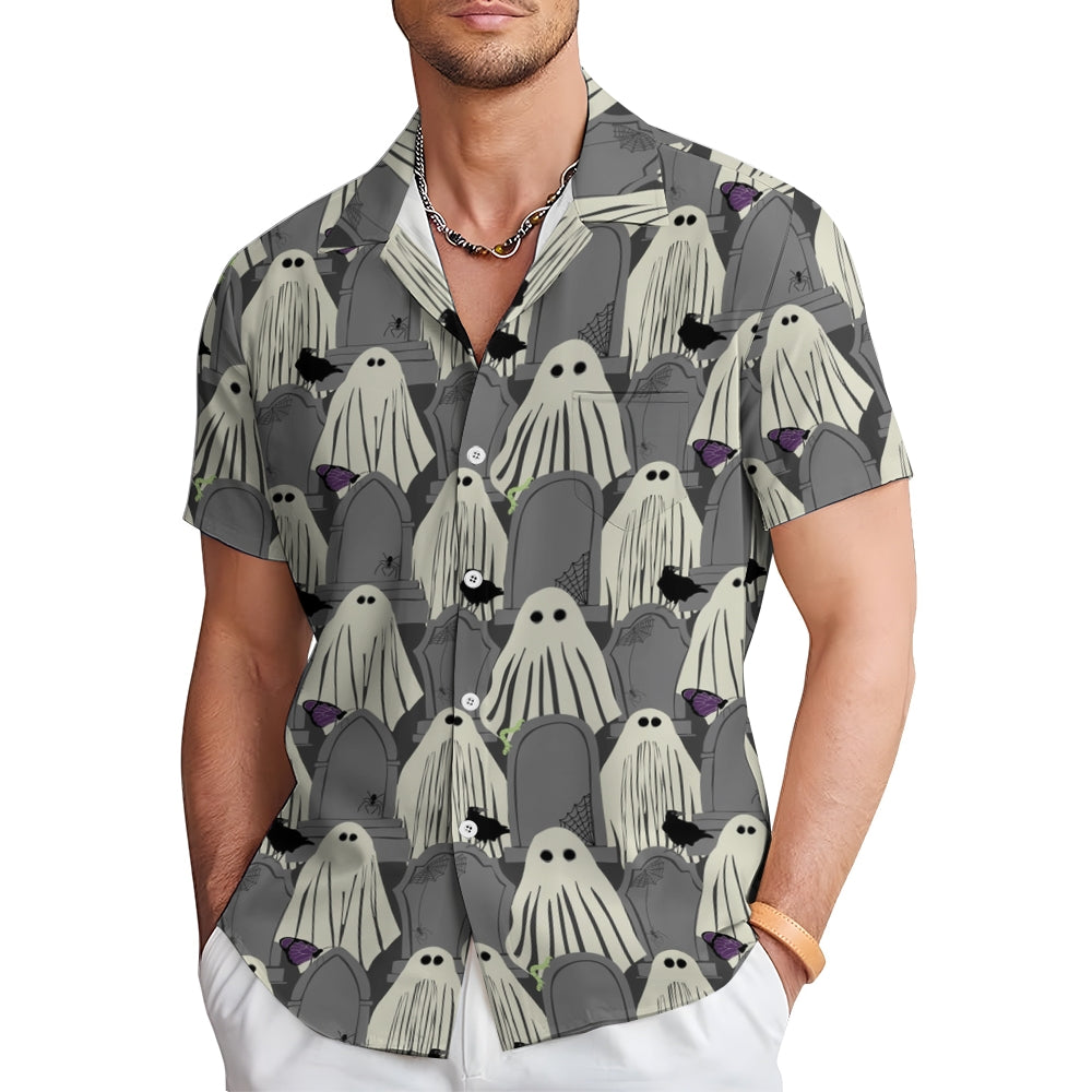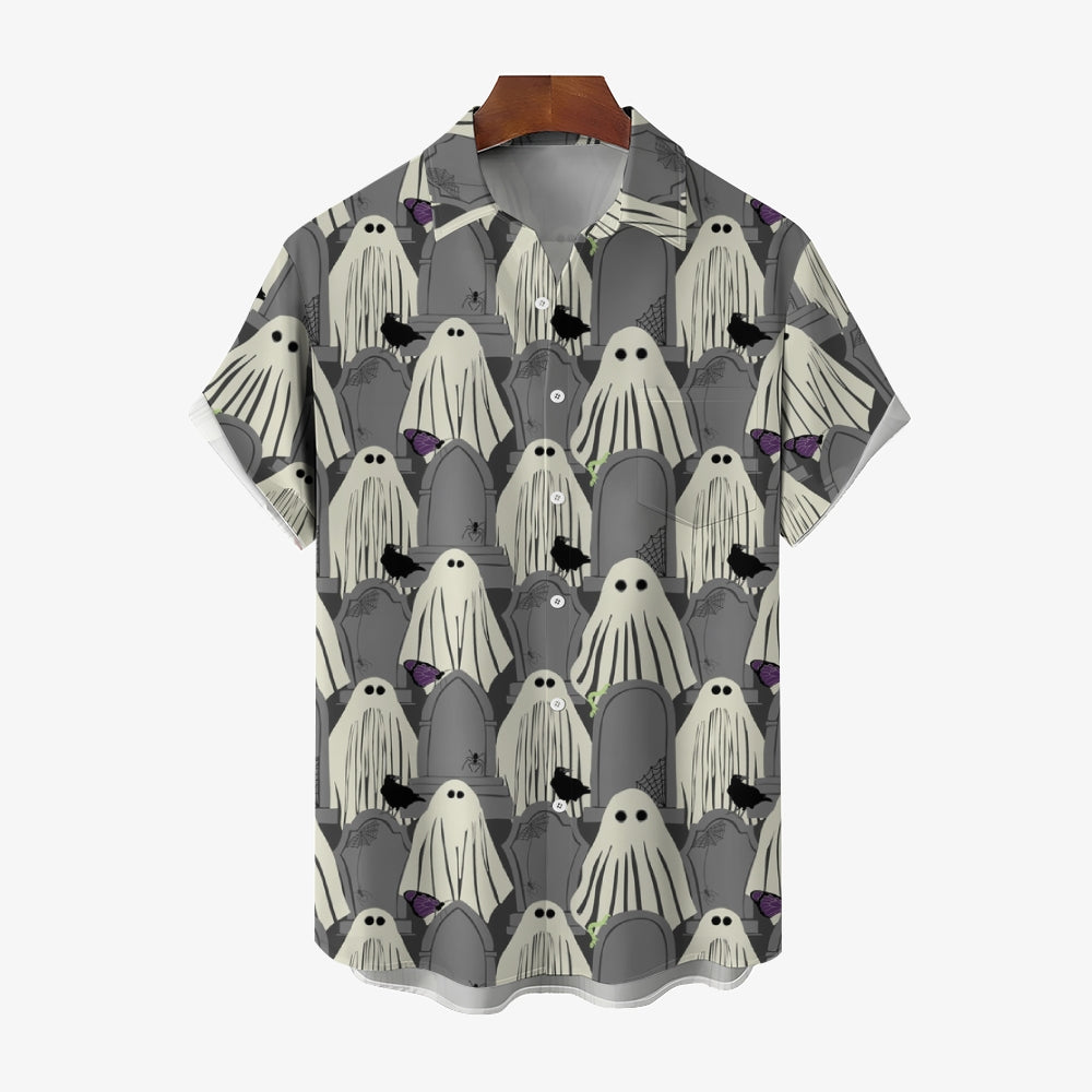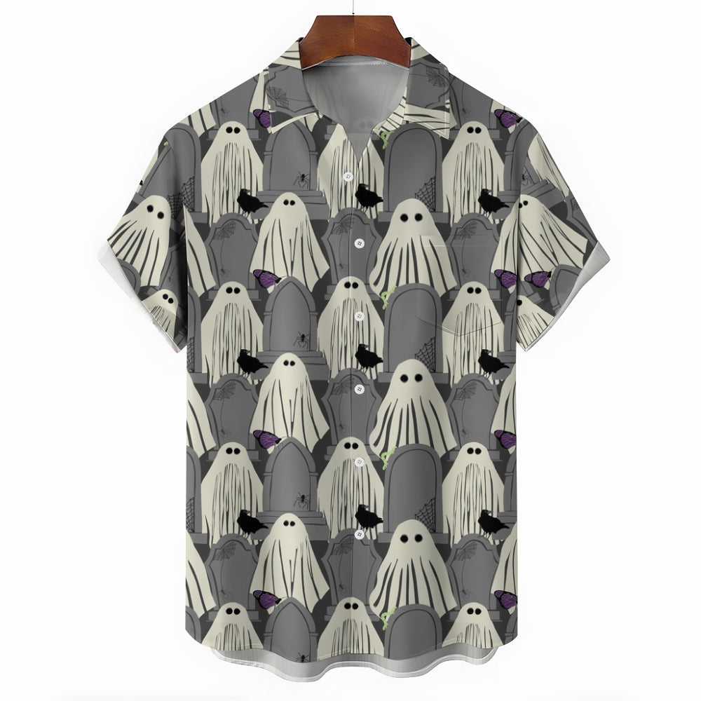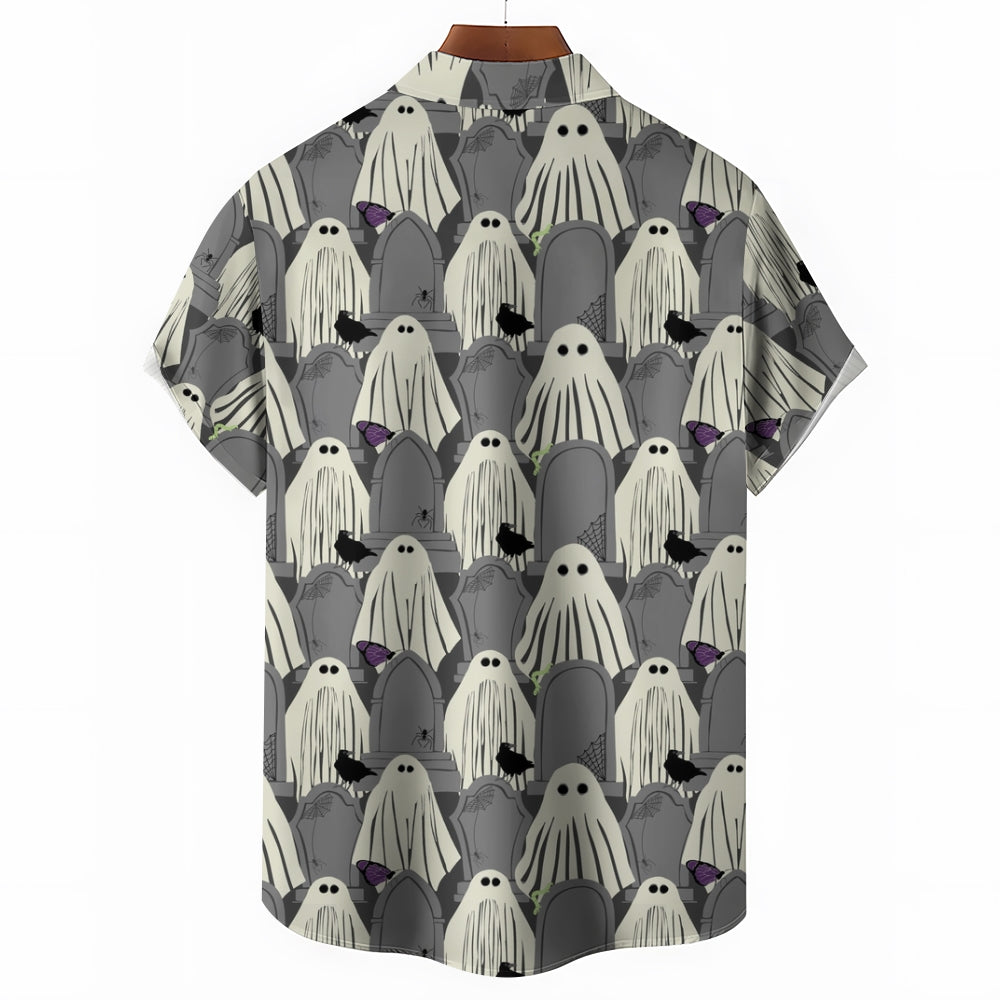 Ghost Halloween Casual Large Size Short Sleeve Shirt 2407004393