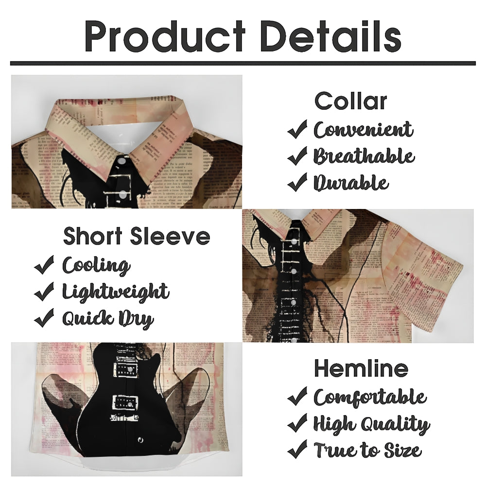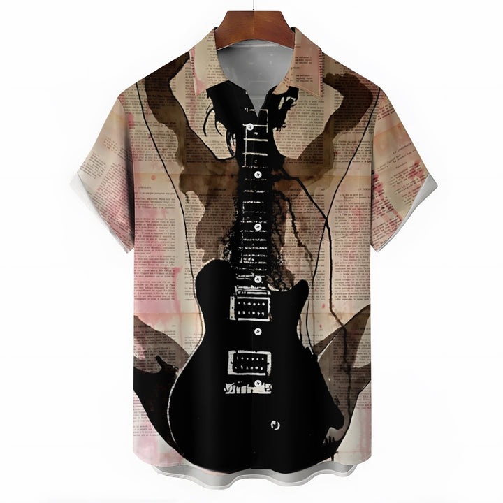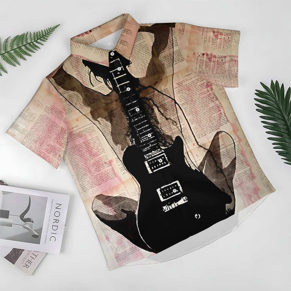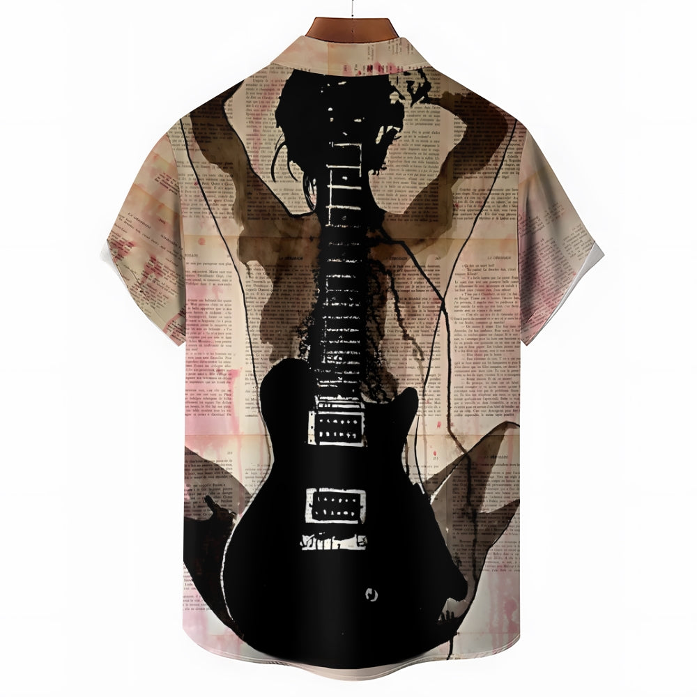 Guitar Girl Art Print Casual Large Size Short Sleeve Shirt 2407001176