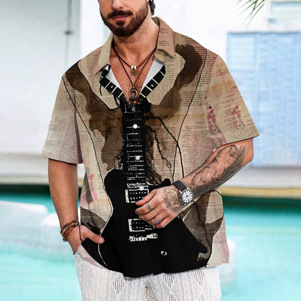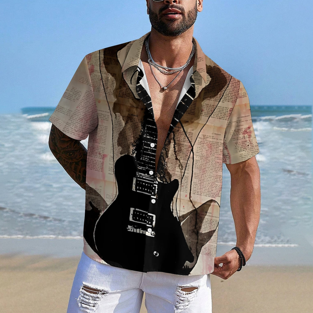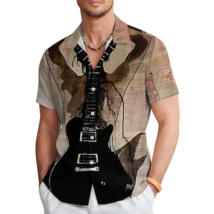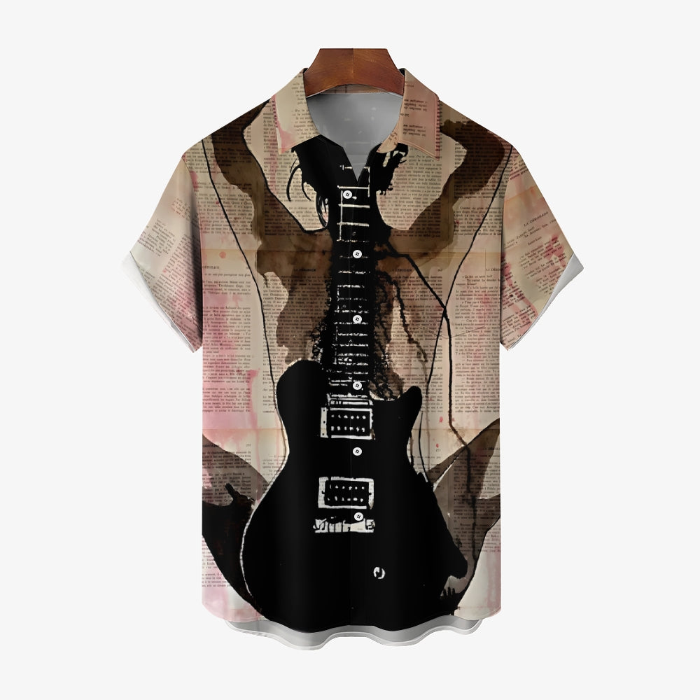 Guitar Girl Art Print Casual Large Size Short Sleeve Shirt 2407001176