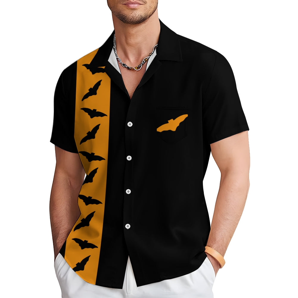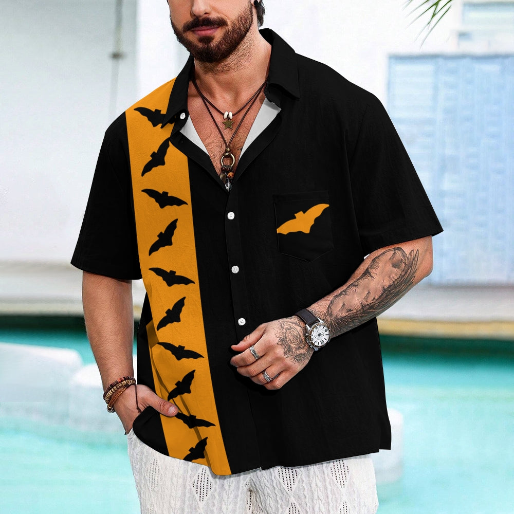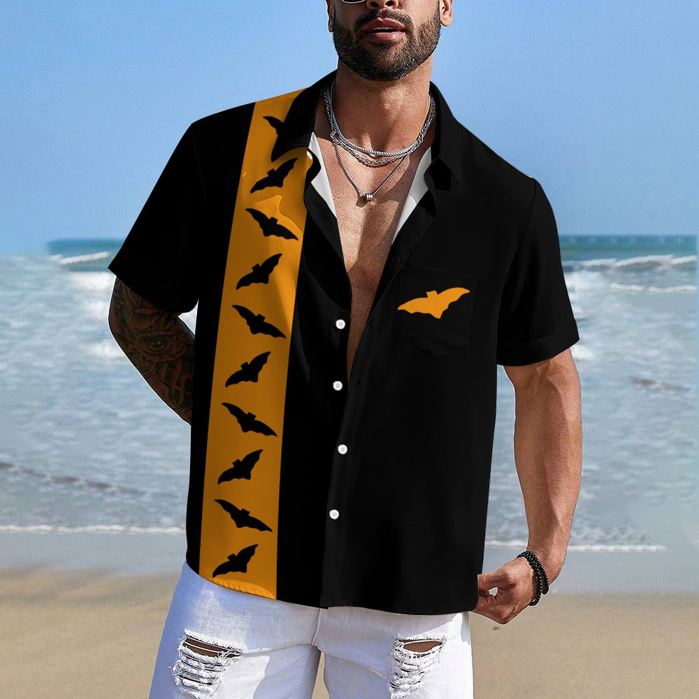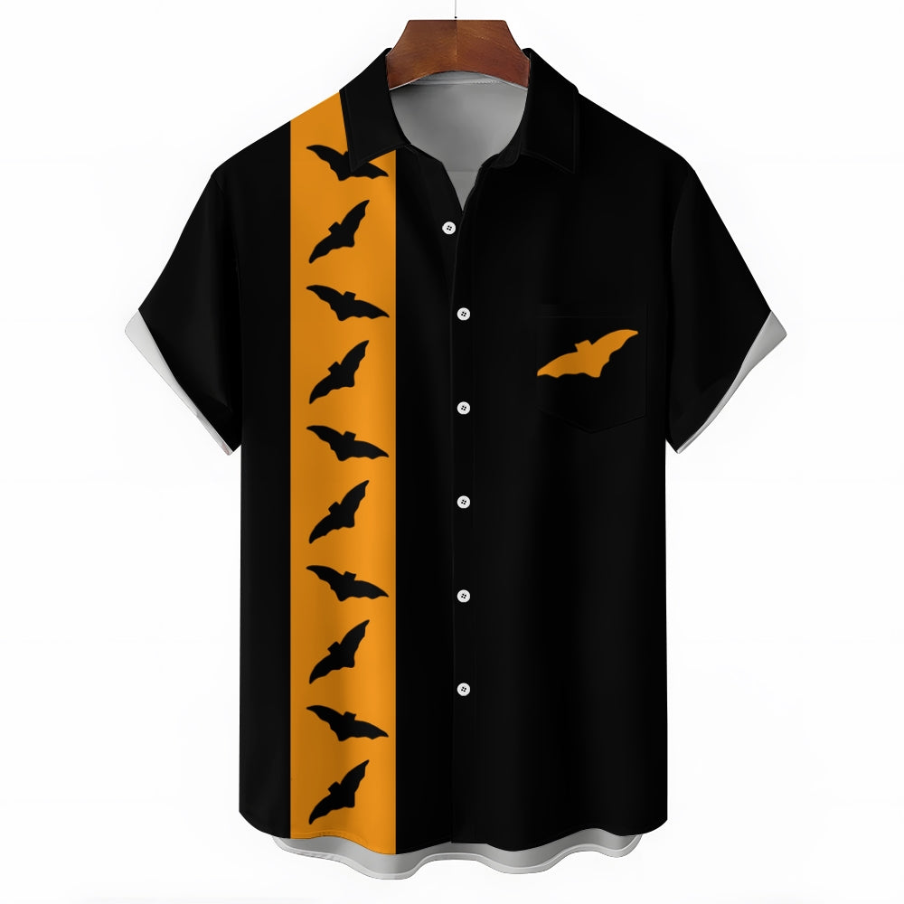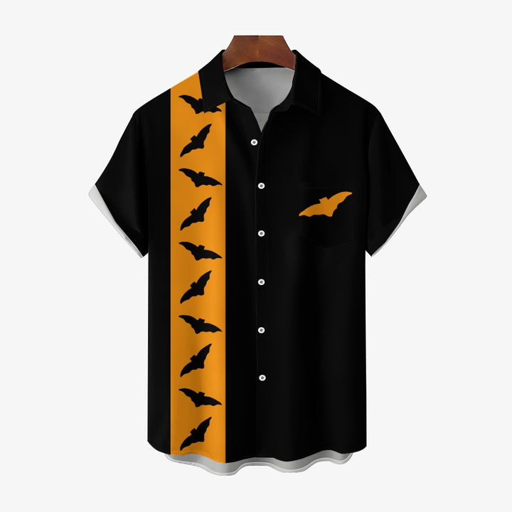 Halloween Bat Casual Large Size Short Sleeve Shirt 2408002088