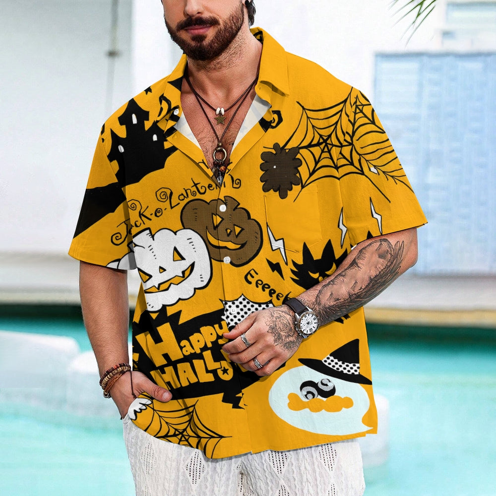 Halloween Ghost Pumpkin Casual Large Size Short Sleeve Shirt 2408000388