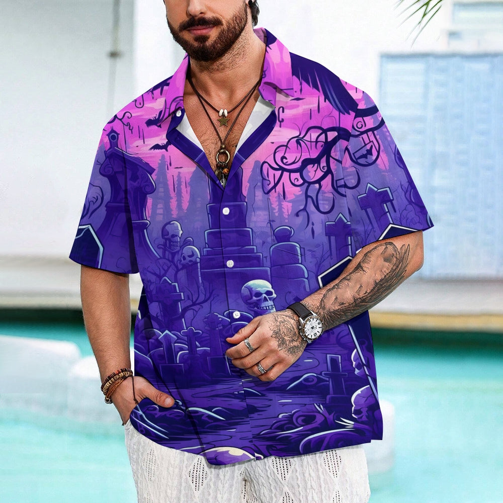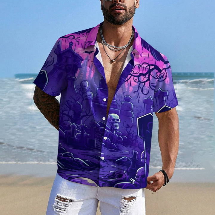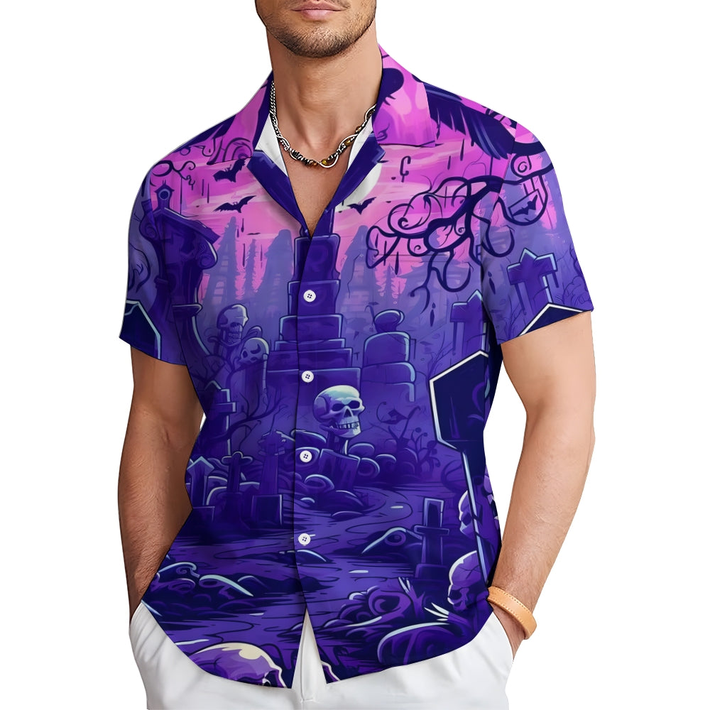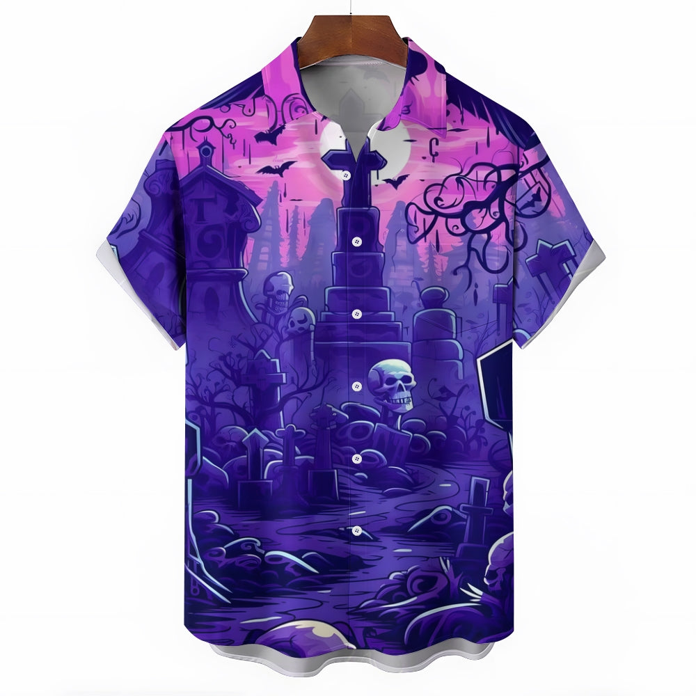 Halloween Grave Skull Short Sleeve Shirt 2408008233