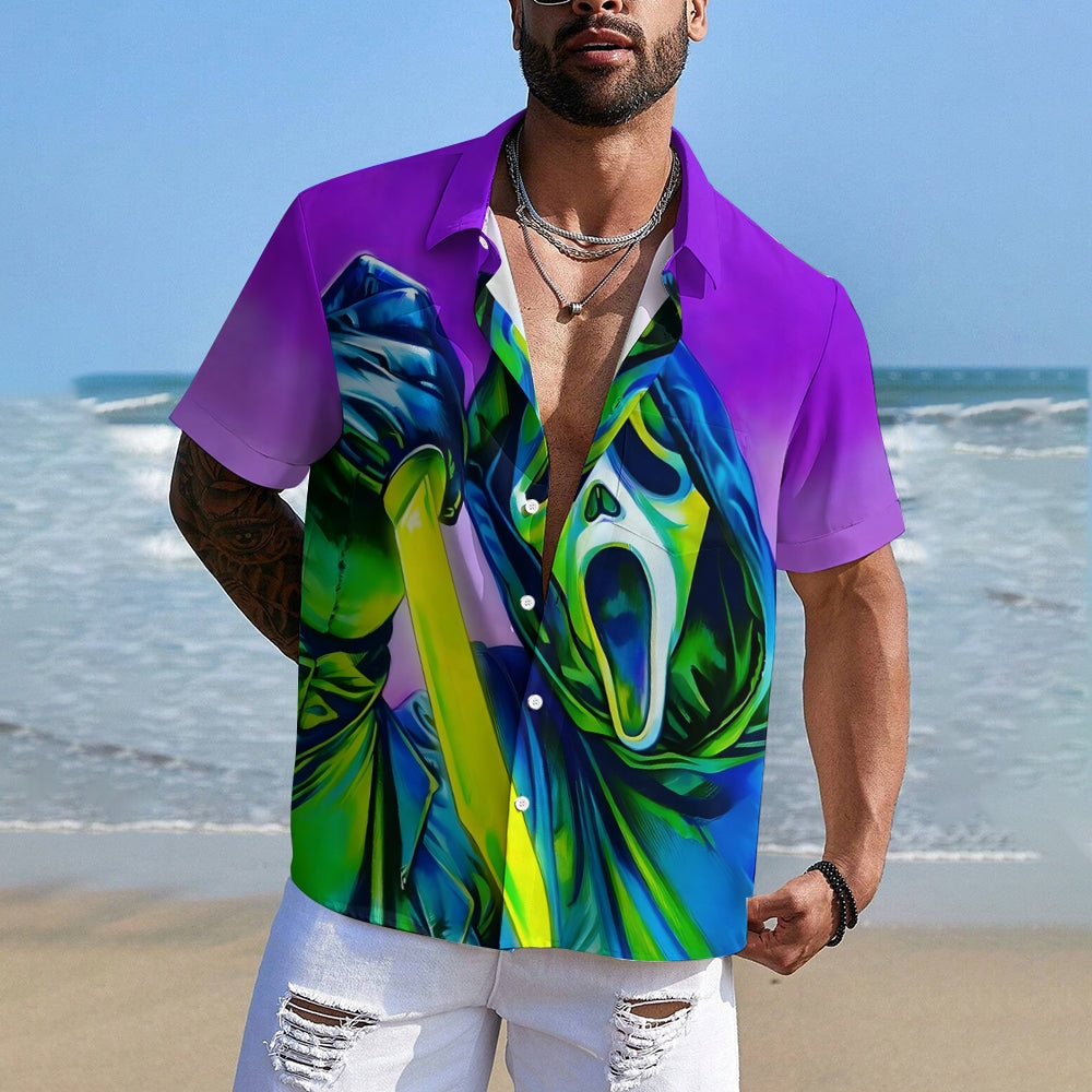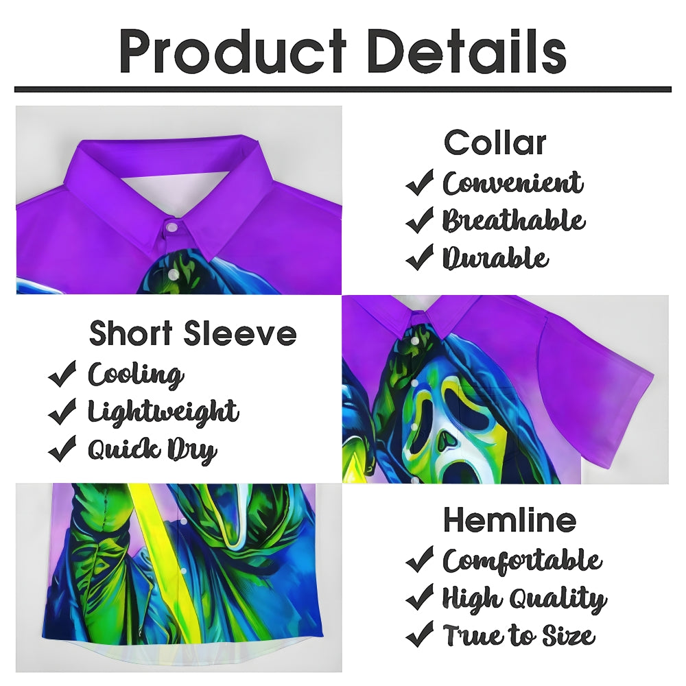 Halloween Grim Reaper Horror Casual Short Sleeve Shirt 2408004498