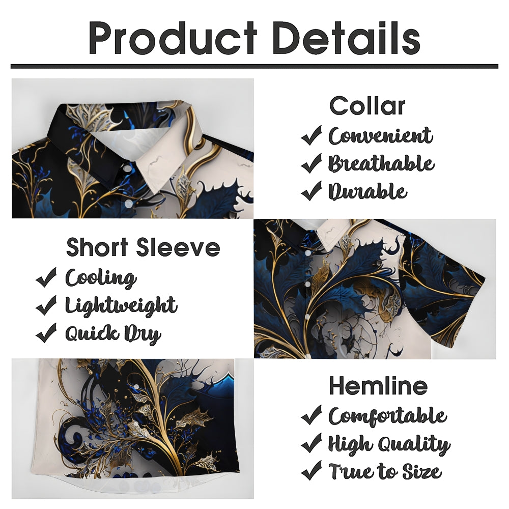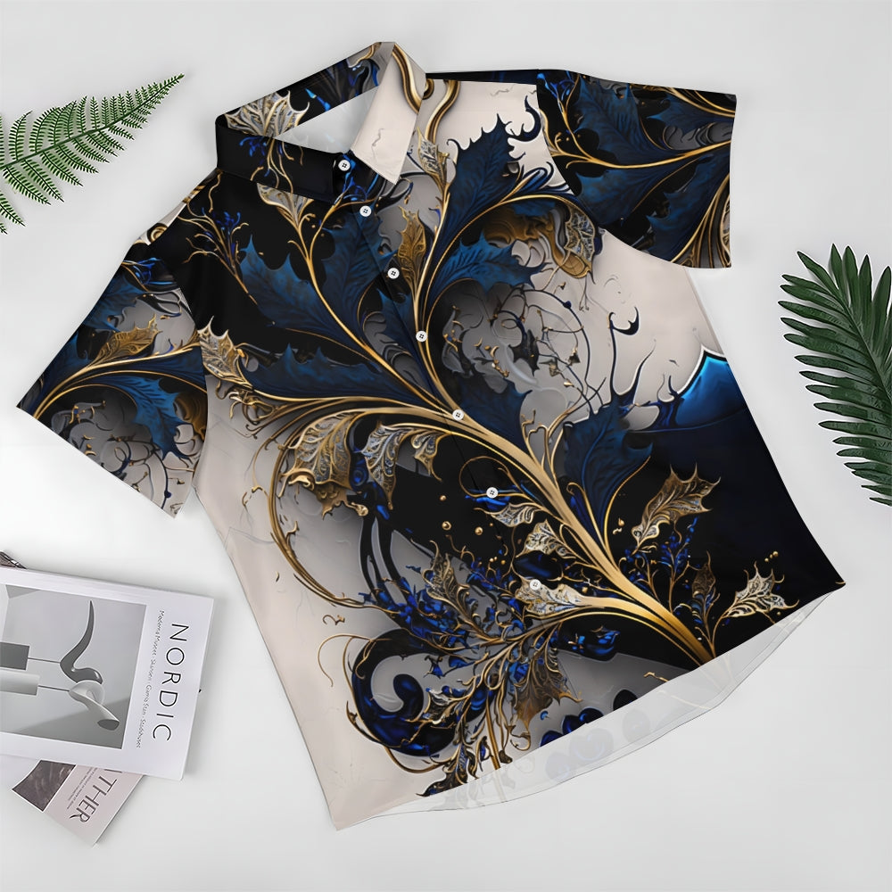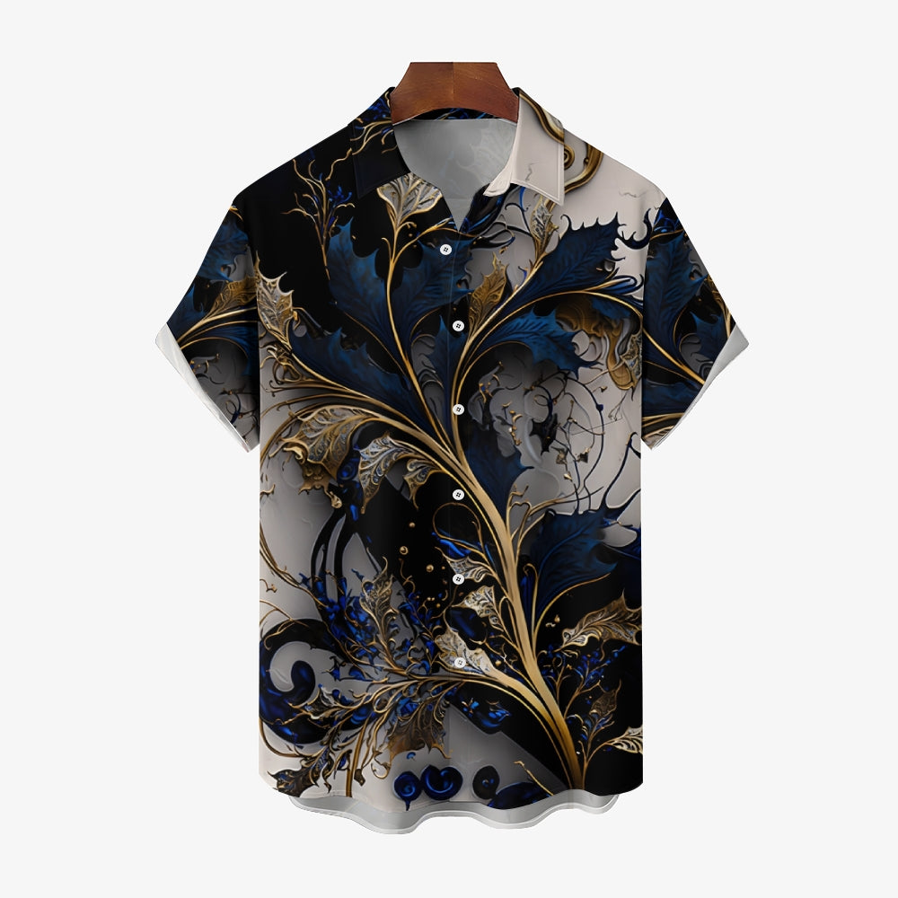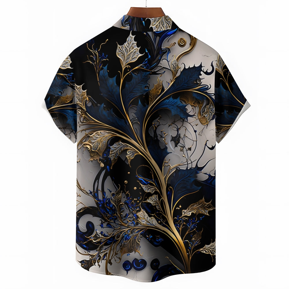 Hawaiian Gilded Art Floral Print Men's Button Pocket Short Sleeve Shirt 2405000204